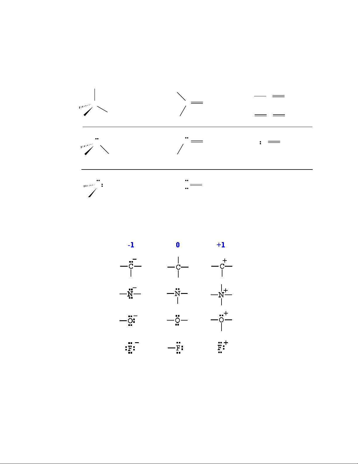Common bonding for carbon, nitrogen and oxygen sp3 sp2 sp C C C C N N N O O tetrahedral geometry trigonal planar linear Common anionic, neutral and cationic forms Formal Charge = [Group#] – [# bonds] – [nonbonding e-]