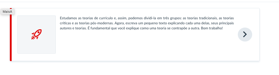 MaisA Estudamos as teorias de currículo e, assim, podemos dividi-la em três grupos: as teorias tradicionais, as teorias criticas e as teorias pós-modernas. Agora, escreva um pequeno texto explicando cada uma delas, seus principais autores e teorias. É fundamental que você explique como uma teoria se contrapõe a outra. Bom trabalho!