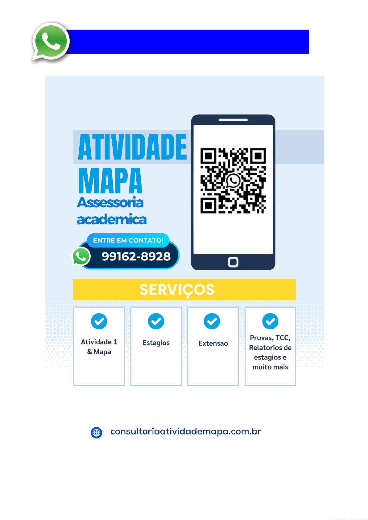 RESPOSTA- (44) 99162-8928 RESPOSTA- (44) 99162-8928 MAPA - FAR - BIOESTATÍSTICA E EPIDEMIOLOGIA - 54_2025 CARO(A) ALUNO(A), seja bem-vindo(a) à atividade MAPA (Material de Avaliação Prática de Aprendizagem) da disciplina de Bioestatística e Epidemiologia. Instruções iniciais: Utilize o modelo de MAPA padrão, disponibilizado em "Material da Disciplina", para realizar esta atividade. Siga todas as instruções constantes neste modelo. Assista ao vídeo com as instruções para a realização do MAPA que está na "Sala do Café". CONTEXTUALIZAÇÃO Considere hipoteticamente que você, futuro profissional da área da saúde, decida participar de um processo seletivo para o quadro de funcionários de uma multinacional. Esse processo seletivo será dividido em duas etapas, sendo a primeira com a resolução de uma prova escrita, de questões envolvendo bioestatística e epidemiologia e, a segunda etapa será entrevista com os gestores da multinacional, que foram aprovados na primeira fase. DESENVOLVENDO O TRABALHO Imagine que você está fazendo hoje a primeira etapa do processo seletivo. Com isso, responda às questões abaixo: ETAPA 1 Prova sobre os conhecimentos básicos de bioestatística e epidemiologia Questão 01 O tromboembolismo venoso acontece quando um coágulo se forma na circulação sanguínea, prejudicando o fluxo de sangue nas veias pelo organismo. Essa doença é muito comum e, quando não tratada corretamente, pode se agravar e até levar a morte. Ela atinge uma pessoa a cada mil por ano e é uma das principais causas de óbitos no mundo. Quando o paciente já está internado, a prevenção é realizada com medicamentos anticoagulantes. Fonte: . Acesso: 13 mar 2025. (com adaptações) Um estudo hipotético de 2024 com 600 mulheres usuárias de anticoagulante oral avaliou a associação entre tromboembolismo e tipo sanguíneo. Entre as participantes, 165 tiveram tromboembolismo. O tipo A foi o mais comum (249 pacientes), seguido dos tipos O (237) e B (81). Entre as pacientes sem tromboembolismo, 210 eram do tipo O, 153 do tipo A e 57 do tipo B. RESPOSTA- (44) 99162-8928 Com base nas informações fornecidas, COMPLETE os números faltantes da tabela abaixo: Tabela - presença de tromboembolismo e grupo sanguíneo em estudo de 2024. Questão 02 A dieta cetogênica — caracterizada pelo baixo consumo de carboidratos e alto teor de proteínas e gorduras — pode contribuir para a perda de peso. No entanto, pode também elevar os níveis de colesterol ruim e reduzir a quantidade de bactérias intestinais benéficas à saúde. Essas conclusões foram obtidas em um estudo conduzido por pesquisadores da Universidade de Bath, no Reino Unido, e publicado na revista Cell Reports Medicine. Essa dieta é definida pela ingestão reduzida de carboidratos, sendo, portanto, um tipo de dieta low carb. O consumo desse macronutriente — presente em alimentos como batata, arroz, mandioca e massas — é limitado a 20% da alimentação diária. Os outros 80% devem ser compostos por proteínas e gorduras saudáveis, como peixe, frango, ovos, óleo de coco, castanhas, azeite e abacate. Fonte: disponível em . Acesso: 20 mar. 2025 (com adaptações) Para avaliar os efeitos da dieta cetogênica na saúde, pesquisadores do Centro de Nutrição, Exercício e Metabolismo de uma universidade acompanharam 48 adultos saudáveis durante 12 semanas. O quadro abaixo apresenta os resultados da redução de massa corporal (em kg) desses participantes. Quadro 1 – Informações de perda de massa (em kg), de pacientes em dieta cetogênica*. RESPOSTA- (44) 99162-8928 *Dados fictícios. Elaborado pelo professor, 2025. a) Para esse conjunto de dados, DETERMINE a média, a moda, a mediana, o desvio-padrão e o coeficiente de variação para cada sexo. Sabendo que a variância para os homens foi de 43,8244kg2 e para as mulheres de 13,4689 kg2. b) COMPARE os resultados das estatísticas descritivas entre os grupos. Questão 03 Um estudo de coorte prospectivo, realizado por um grupo de pesquisadores, avaliou a ligação entre asma e risco de apneia obstrutiva do sono (AOS) em adultos. Os participantes, formado por indivíduos que preenchem os critérios de inclusão e aceitam participar do estudo, foram recrutados aleatoriamente a partir do quadro de funcionários de uma rede de hospitais e foram acompanhados por quatro anos. Ao final desse estudo, em um congresso, um dos pesquisadores fez a seguinte fala: “Em nosso estudo, foi recrutado uma amostra aleatória de funcionários da nossa rede de hospitais (população de origem), e que 20 estavam aptos a participar do estudo e aceitaram fazê-lo (população de estudo). No relatório final relatamos que a asma aumenta o risco de desenvolvimento de AOS na população de estudo, pois a média do Risco Relativo (RR) foi igual a 1,50. Além disso, para se levar em conta o erro amostral em virtude do recrutamento de apenas um subgrupo da população de interesse, calculamos o intervalo de confiança de 95% (em torno da estimativa) que vocês poderão consultar no trabalho escrito." Considerando as informações contidas na fala do pesquisador e assumindo que os dados seguem distribuição normal, construa, com 95% de confiança, o intervalo de confiança que contenha o valor médio de RR populacional. Considere a variância amostral de 0,09 e considere o t crítico para 0,05 igual a 2,0930. Apresente os cálculos. Questão 04 O secretário de saúde da sua cidade pediu que você avaliasse duas comunidades com epidemia de dengue. No Bairro A, a maioria das ruas não é pavimentada, o saneamento básico é precário, e as moradias são simples, muitas delas de madeira. Além disso, a população apresenta baixo nível de instrução e resiste às recomendações da vigilância epidemiológica. No Bairro B, a maioria vive em casas de alvenaria de médio e alto padrão. Há muitos terrenos vazios e difícil acesso para buscar focos do Aedes aegypti. RESPOSTA- (44) 9916