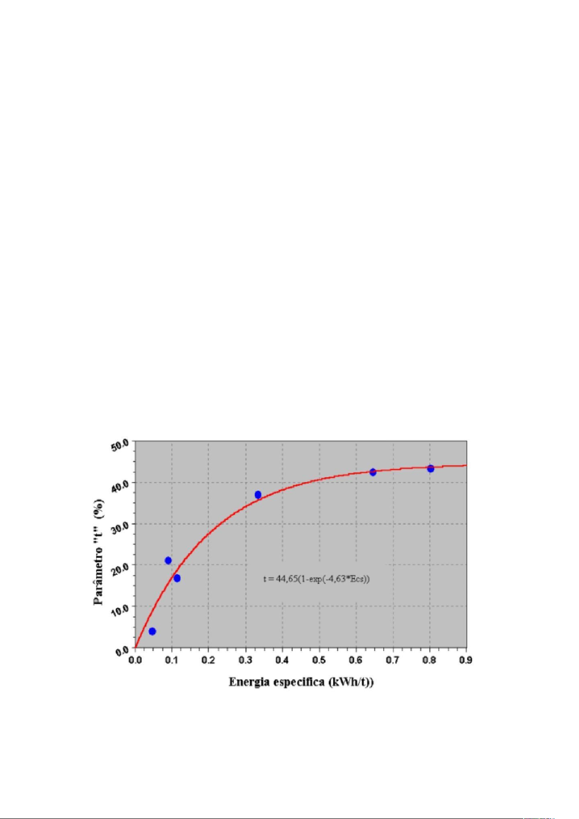 Análise Granulométrica Escolhe 1 (uma) tabela para fazer a Análise Granulométrica, plotar os gráficos de Gaudin Schuhmann, Rosin Rammler Bennet, Curva granulométrica, especificando quando o melhor gráfico. Calcular o P80 e P20. Calcular os parâmetros t2, t4, t10, t25, t50 e t75 Y é o tamanho máximo da partícula fragmentada T é a percentagem acumulada passante em y/n P80 é o tamanho que deixa passar 80% do material cominuído. Calcule a distribuição granulométrica resultante da fragmentação do minério que foi realizado as análises granulométricas dados, a um nível de energia específica de cominuição de 0,5 Kwh/t. Utilize a família de curvas dada abaixo e sua família de curvas determinada pelos resultados das análises granulométricas dados. image1.jpeg image2.png