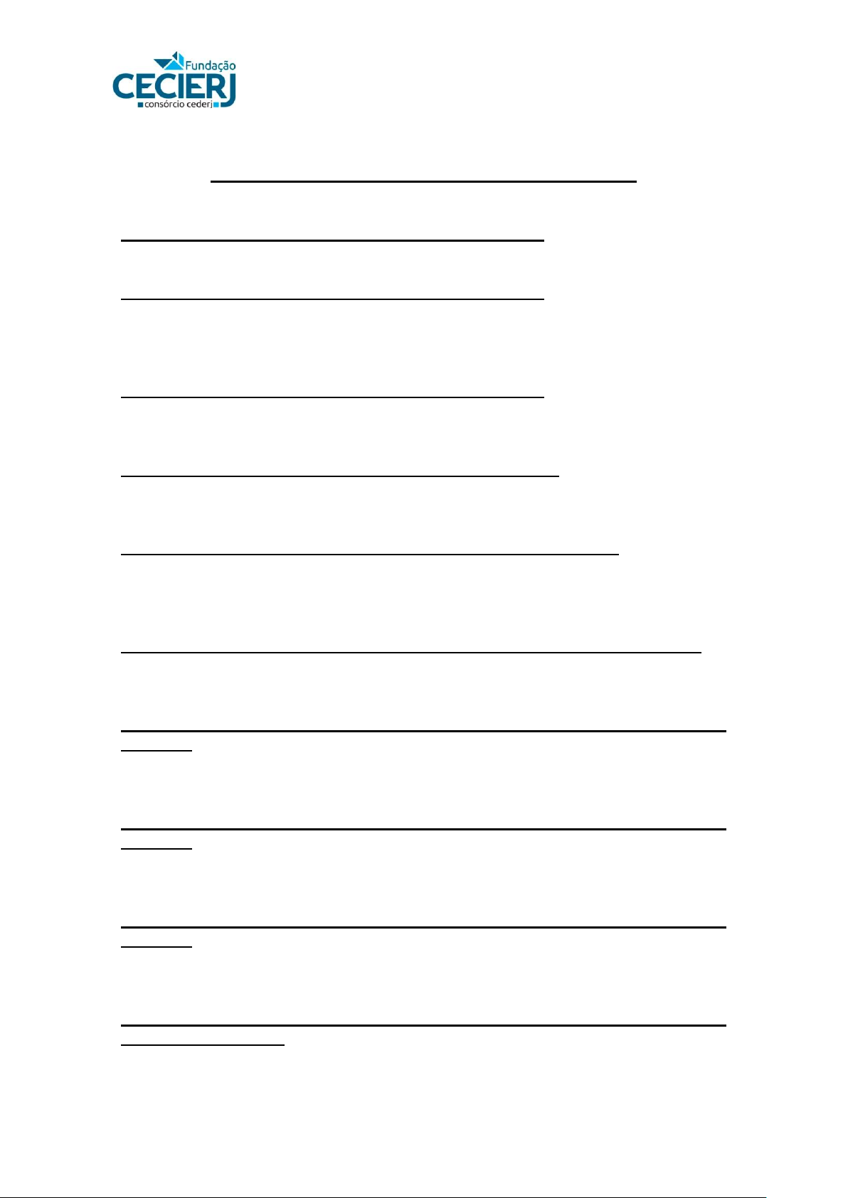 Fundação Centro de Ciências e Educação a Distância do Estado do Rio de Janeiro Centro de Educação Superior a Distância do Estado do Rio de Janeiro Curso de Administração - UFRRJ /CEDERJ Disciplina Administração Brasileira Prof.a Dra. Michelle Muniz Bronstein GABARITO - AVALIAÇÃO PRESENCIAL 2025.2 – AP1 QUESTÃO 1 - Finanças no Brasil, (VALOR 1,0 PONTO). RESPOSTA: F, F QUESTÃO 2 - Finanças no Brasil, (VALOR 1,0 PONTO). RESPOSTA: A QUESTÃO 3 - Finanças no Brasil, (VALOR 1,0 PONTO). RESPOSTA: V;V. QUESTÃO 4 – Marketing no Brasil, (VALOR 1,0 PONTO). RESPOSTA: C QUESTÃO 5 - Recursos Humanos no Brasil, (VALOR 1,0 PONTO). RESPOSTA: A QUESTÃO 6 - Produção, material e Logística no Brasil, (VALOR 1,0 PONTO). RESPOSTA: V, V, F, V. QUESTÃO 7 - Responsabilidade social e planejamento ambiental, (VALOR 1,0 PONTO). RESPOSTA: C QUESTÃO 8 - Responsabilidade social e planejamento ambiental, (VALOR 1,0 PONTO). RESPOSTA: E QUESTÃO 9 - Desafios para a administração brasileira no século XXI (VALOR 1,0 PONTO). RESPOSTA –A; QUESTÃO 10 - O jeito brasileiro de administrar na visão dos antropólogos (VALOR 1,0 PONTO) RESPOSTA: D