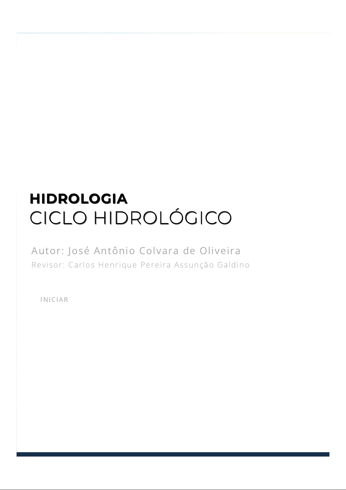 HIDROLOGIAHIDROLOGIA CICLO HIDROLÓGICOCICLO HIDROLÓGICO Autor: José Antônio Colvara de Oliveira Revisor : Car los Henr ique Pere ira Assunção Gald ino IN IC IAR