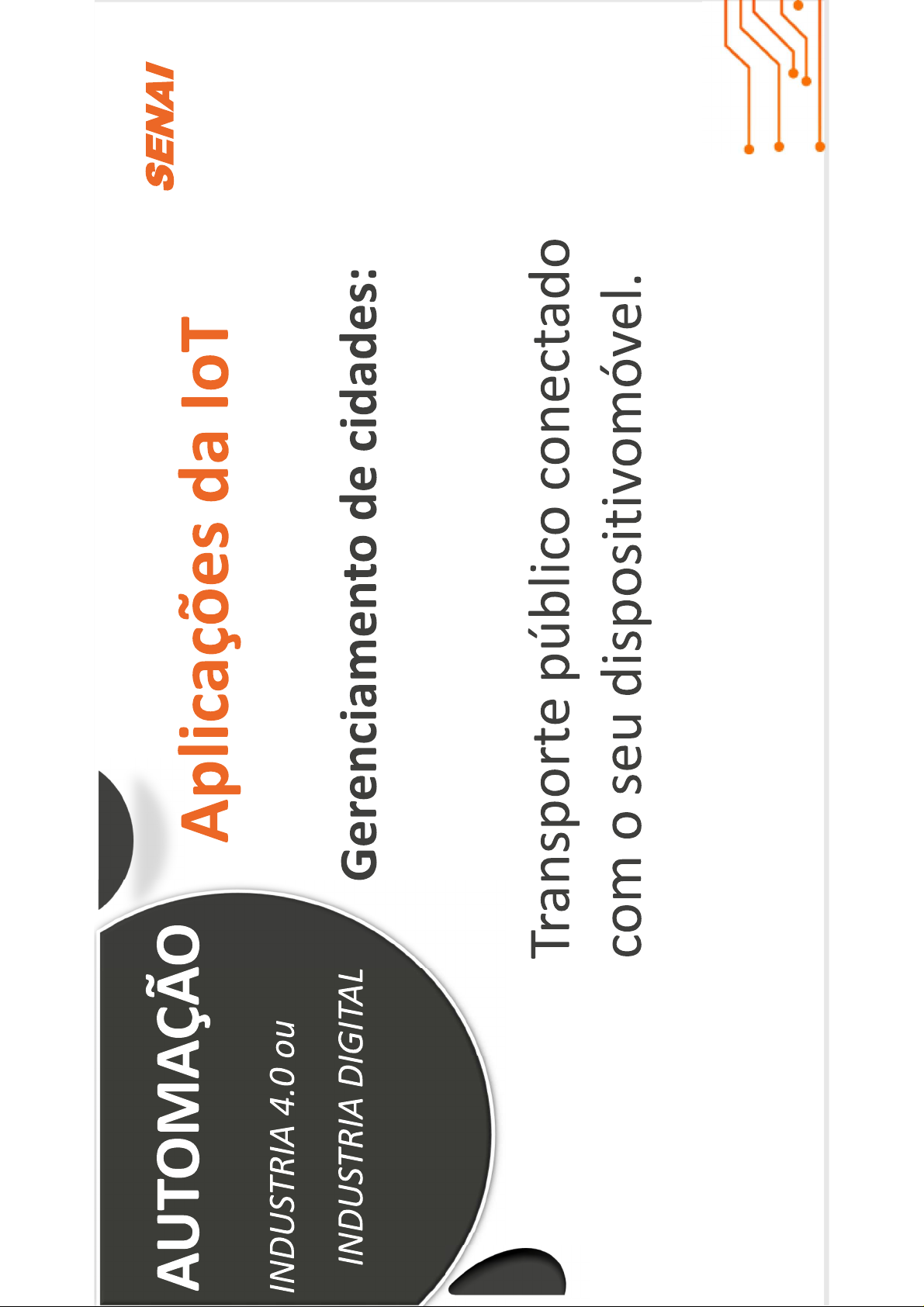 AUTOMAÇÃO SENAI Aplicações da loT INDUSTRIA 4.0 ou INDUSTRIA DIGITAL Gerenciamento de cidades: Transporte público conectado com seu dispositivomóvel.AUTOMAÇÃO SENAI Aplicações da loT INDUSTRIA 4.0 ou INDUSTRIA DIGITAL Saúde: Monitoramento do quadro clínico de um paciente online, etc.AUTOMAÇÃO SENAI Aplicações da loT INDUSTRIA 4.0 ou INDUSTRIA DIGITAL Manufatura: Produção feita sob encomenda, Monitoramento do estoque de produto, etc.AUTOMAÇÃO SENAI Robôs Autônomos INDUSTRIA 4.0 ou INDUSTRIA DIGITAL Robôs autónomos podem ser caracterizadas como máquinas inteligentes capazes de realizar tarefas em ambientes desestruturados sem explícita ou contínuo controle humano sobre seus movimentosSENAI Como você classifica impacto da automação na vida contemporânea?0000 INTRODUÇÃO A AUTOMAÇÃO Importância do Controle Automatizado em Processos Petrolíferos SENAIAUTOMAÇÃO SENAI aplicação de tecnologias e sistemas Automação Industrial automatizados para otimizar e controlar na Refinaria processos envolvidos na produção de derivados de petróleo. Objetivo - Aumentar a eficiência operacional; - Melhorar a segurança; - Reduzir custos; - Garantir a consistência na produção de combustíveis e produtos petroquímicos.AUTOMAÇÃO SENAI Em uma refinaria, a automação desempenha Automação Industrial um papel crucial na supervisão e controle de na Refinaria uma variedade de processos complexos, desde a recepção da matéria-prima (petróleo bruto) até a produção final dos produtos refinados. Isso envolve a integração de sistemas computacionais, sensores, instrumentação, atuadores e softwares especializados.AUTOMAÇÃO SENAI Automação Industrial automação industrial em refinarias abrange na Refinaria uma ampla gama de áreas, incluindo: - controle de processos; - monitoramento de variáveis críticas; - manuseio de materiais; - otimização de fluxo; - Segurança operacionalAUTOMAÇÃO Automação Industrial na Refinaria Manutenção Preditiva: Sistemas automatizados possibilitam a implementação de estratégias de manutenção preditiva, identificando problemas antes que causem falhas significativas.
