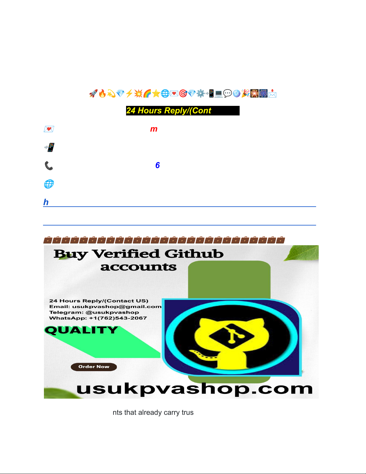 Buy Verified GitHub Account for Seamless Project Hosting Are you looking to boost your presence on GitHub quickly and effectively? Buying verified GitHub accounts can give you the edge you need to stand out. 🚀🔥💫💎⚡💥🌈⭐🌐💌🎯💎⚙📲💻💬🪩🎉🎇🎆📩 24 Hours Reply/(Contact US) 💌 Email: usukpvashop@gmail.com 📲Telegram: @usukpvashop 📞WhatsApp: +1(762)543-2067 🌐https://usukpvashop.com https://usukpvashop.com/product/buy-verified-github-accounts/ https://usukpvashop.com/product/buy-verified-github-accounts/ 💼💼💼💼💼💼💼💼💼💼💼💼💼💼💼💼💼💼💼💼💼💼💼💼💼💼💼 Imagine having accounts that already carry trust and credibility, saving you time and effort. You'll discover why verified accounts matter and how they can help you grow your https://usukpvashop.com/product/buy-verified-github-accounts/ https://usukpvashop.com/product/buy-verified-github-accounts/ projects and network faster. Keep reading to learn how to make the smartest choice for your GitHub success. Why Verified Github Accounts Matter Verified GitHub accounts hold a special place in the software development world. They show that the user is a real and trusted member of the community. This verification can make a big difference in how others see your work and skills. Having a verified account helps you stand out. It proves your identity and commitment to your projects. This trust is important for anyone who wants to grow in their tech career. Building Trust With Employers Employers want to hire developers they can trust. A verified GitHub account acts as proof of your genuine contributions. It shows you are serious about your coding skills. Employers often check GitHub profiles to see real work. Verification makes your profile more credible and reliable. Enhancing Project Visibility Projects from verified accounts get more attention. People feel safer using and sharing verified work. This leads to more stars, forks, and followers on your projects. Increased visibility helps you reach a wider audience. It opens doors for collaborations and feedback from experts. Networking Opportunities Verified accounts attract more connections. Other developers and professionals prefer to connect with verified users. This helps you build a strong network in the tech community. Networking can lead to job offers and partnerships. A verified status shows you belong to a trusted group. Risks Of Unverified Accounts Using unverified GitHub accounts brings many risks. These accounts often lack trust and protection. Developers and teams face problems that slow their work. Understanding these risks helps in making safer choices. Limited Access To Features https://usukpvashop.com/product/buy-verified-github-accounts/ https://github.com/ Unverified accounts miss many GitHub features. Some tools are locked behind verification. This limits project management and code review options. Users cannot join certain organizations or teams. It reduces the ability to use GitHub fully. Reduced Credibility Unverified accounts seem less reliable to others. Collaborators may doubt the identity of the user. This hurts chances of joining projects or teams. Trust is a key part of coding communities. Without verification, users struggle to build reputation. Challenges In Collaboration Working with unverified accounts creates communication issues. Team members hesitate to share code or ideas. It causes delays in project progress and feedback. Collaboration depends on trust and identity verification. Unverified accounts often fail to meet these needs. Benefits Of Buying Verified Accounts Buying verified GitHub accounts offers clear advantages for developers and businesses. These accounts come with established trust and recognition. They save time and effort in building a strong presence from scratch. The benefits impact how others see your projects and your professional image. Verified accounts help you stand out and gain acceptance faster. 🚀🔥💫💎⚡💥🌈⭐🌐💌🎯💎⚙📲💻💬🪩🎉🎇🎆📩 24 Hours Reply/(Contact US) 💌 Email: usukpvashop@gmail.com 📲Telegram: @usukpvashop 📞WhatsApp: +1(762)543-2067 🌐https://usukpvashop.com https://usukpvashop.com/product/buy-verified-github-accounts/ https://usukpvashop.com/product/buy-verified-github-accounts/ https://usukpvashop.com/product/buy-verified-github-accounts/ https://usukpvashop.com/product/buy-verified-github-accounts/ https://usukpvashop.com/product/buy-verified-github-accounts/ https://usukpvashop.com/product/buy-verified-github-accounts/ Instant Credibility Boost Verified accounts show you as a trusted user. This trust helps others believe in your skills and projects. It reduces doubts about your identity or experience. People often check verification before collaborating or hiring. A verified account creates a strong first impression. Faster Project Acceptance Projects linked to verified accounts get reviewed more quickly. Maintainers and clients prefer verified profiles. They expect fewer risks and smoother communication. Approval times shorten, letting you focus on development. Verified accounts open doors to more opportunities. Improved Professional Image A verified GitHub account looks polished and serious. It shows you care about your online presence. Others see you as reliable and active in the community. This image helps build stronger networks and partnerships. Verified accounts improve your chances in job applications too. How To Choose A Reliable Seller Choosing a reliable seller is important when buying verified GitHub accounts. A trustworthy seller ensures you get genuine accounts without risks. This guide helps you find the right seller with simple steps. Follow these tips to avoid scams and protect your investment. Checking Seller Reputation Start by checking the seller’s reputation. Look for reviews and ratings on trusted platforms. Positive feedback from many buyer