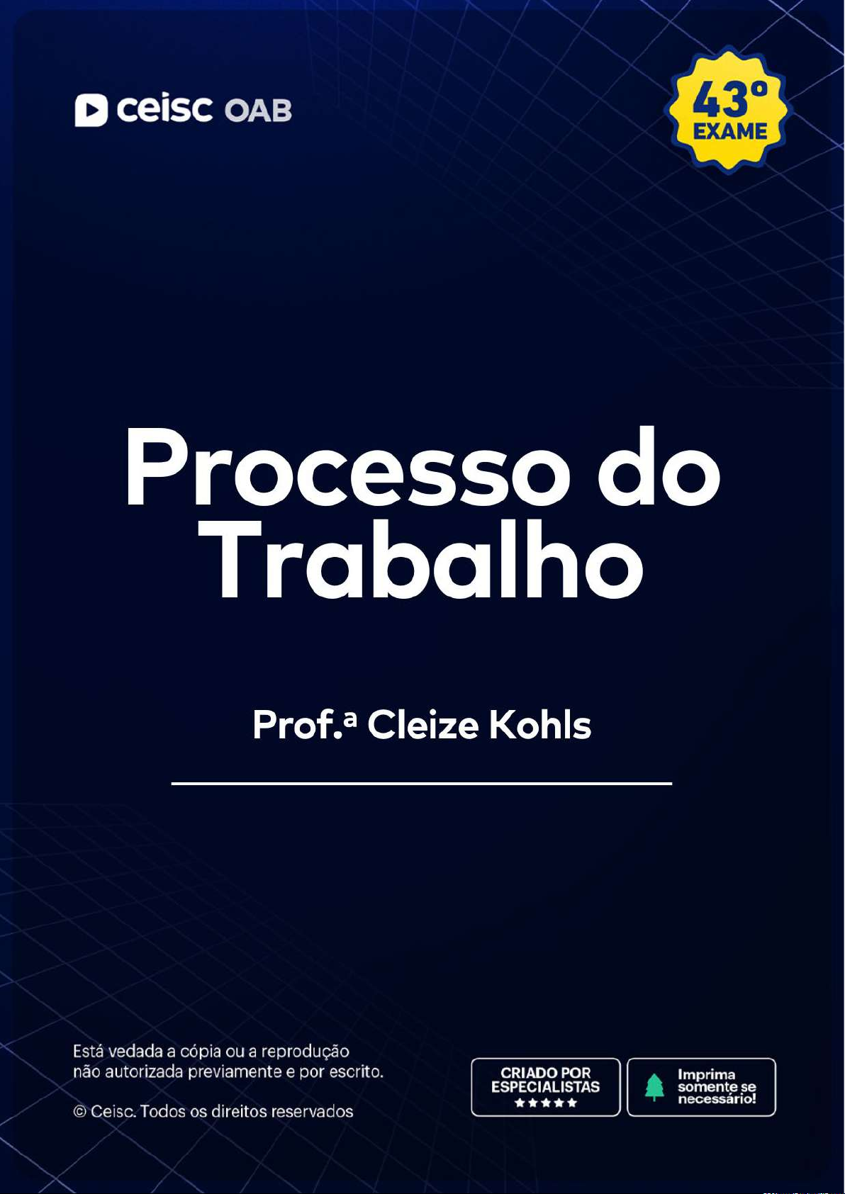 1ª Fase | 43° Exame da OAB Processo do Trabalho 2 1ª Fase | 43° Exame da OAB Processo do Trabalho 3 1ª FASE OAB | 43° EXAME Processo do Trabalho Prof.ª Cleize Kohls Sumário 1. Teoria Geral do Processo do Trabalho .................................................................................... 4 2. Organização e Competência da Justiça do Trabalho .............................................................. 8 3. Partes e Procuradores ........................................................................................................... 13 4. Atos, Termos, Prazos e Vícios dos Atos Processuais............................................................ 17 5. Procedimentos Trabalhistas ................................................................................................... 20 6. Petição Inicial e Resposta do Réu ......................................................................................... 22 7. Audiência ............................................................................................................................... 28 8. Provas .................................................................................................................................... 30 9. Razões Finais, Sentença e Coisa Julgada ............................................................................. 35 10. Dissídio Coletivo .................................................................................................................. 37 11. Sistema Recursal Trabalhista .............................................................................................. 40 12. Execução Trabalhista ........................................................................................................... 52 13. Ações Especiais ................................................................................................................... 60 Olá, aluno(a). Este material de apoio foi organizado com base nas aulas do curso preparatório para a 1ª Fase OAB e deve ser utilizado como um roteiro para as respectivas aulas. Além disso, reco- menda-se que o aluno assista as aulas acompanhado da legislação pertinente. Bons estudos, Equipe Ceisc. Atualizado em janeiro de 2025. 1ª Fase | 43° Exame da OAB Processo do Trabalho 4 1. Teoria Geral do Processo do Trabalho Prof.ª Cleize Kohls @prof.cleizekohls 1.1. Fontes São fontes do Direito Processual do Trabalho: a) Lei: Constituição Federal, leis processuais trabalhistas e Código de Processo Civil e leis processuais civis; b) Regimentos Internos dos Tribunais; c) Costume; d) Princípios; e) Jurisprudência; f) Equidade; g) Doutrina. Art. 8° da CLT. As autoridades administrativas e a Justiça do Trabalho, na falta de dispo- sições legais ou contratuais, decidirão, conforme o caso, pela jurisprudência, por analogia, por equidade e outros princípios e normas gerais de direito, principalmente do direito do trabalho, e, ainda, de acordo com os usos e costumes, o direito comparado, mas sempre de maneira que nenhum interesse de classe ou particular prevaleça sobre o interesse pú- blico. O § 2º refere que súmulas e outros enunciados de jurisprudência editados pelo Tribunal Superior do Trabalho e pelos Tribunais Regionais do Trabalho não poderão restringir direitos legalmente previstos nem criar obrigações que não estejam previstas em lei. E o § 3º, estabelece que no exame de convenção coletiva ou acordo coletivo de trabalho, a Justiça do Trabalho ana- lisará exclusivamente a conformidade dos elementos essenciais do negócio jurídico, respeitado o disposto no art. 104 do Código Civil, e balizará sua atuação pelo princípio da intervenção mí- nima na autonomia da vontade coletiva. 1.2. Aplicabilidade do Código de Processo Civil Nos casos omissos, o direito processual comum será fonte subsidiária do direito proces- sual do trabalho, exceto naquilo em que for incompatível com as normas processuais trabalhis- tas (art. 769 da CLT). 1ª Fase | 43° Exame da OAB Processo do Trabalho 5 Art. 1º da Instrução Normativa TST n° 39/2016. Aplica-se o Código de Processo Civil, subsidiária e supletivamente, ao Processo do Trabalho, em caso de omissão e desde que haja compatibilidade com as normas e princípios do Direito Processual do Trabalho, na forma dos arts. 769 e 889 da CLT e do art. 15 da Lei nº 13.105, de 17.03.2015. § 1º Observar-se-á, em todo caso, o princípio da irrecorribilidade em separado das deci- sões interlocutórias, de conformidade com o art. 893, § 1º da CLT e Súmula nº 214 do TST. § 2° O prazo para interpor e contra-arrazoar todos os recursos trabalhistas, inclusive agravo interno e agravo regimental, é de oito dias (art. 6º da Lei nº 5.584/70 e art. 893 da CLT), exceto embargos de declaração (CLT, art. 897-A). Algumas diferenças entre a CLT e o CPC: CLT Prazos para recursos: 8 dias Agravo de ins- trumento: des- tranca recursos Contestação: audiência Honorários de sucumbência: 5%-15% Depósito pré- vio da ação rescisória: 20% Embargos à execução: ga- rantia do juízo CPC Prazos para recursos: 15 dias Agravo de ins- trumento: deci- são interlocutó- ria Contestação após a audiên- cia: 15 dias Honorários de sucumbência: 10%-20% Depósito pré- vio da ação rescisória: 5% Embargos à execução: não precisa de ga- rantia do juízo 1.3. Princípios Oralidade: prevalência da palavra como meio de expressão. A oralidade pressupõe outro princípio: imediação ou imediatidade, isto é, o contato direto do juiz com as partes e com as provas. Localiza-se na CLT, arts. 840, § 2°, 846, 848 e 850. Pagamento imediato das parcelas salariais incontroversas: impõe pesados encargos ao empregador que protela pagamento de verbas salariais incontroversas. O art. 467 da CLT manda pagar em cinquenta por cento as verbas salariais incontroversas. Art. 467. Em caso de rescisão de contrato de trabalho, havendo controvérsia sobre o mon- tan