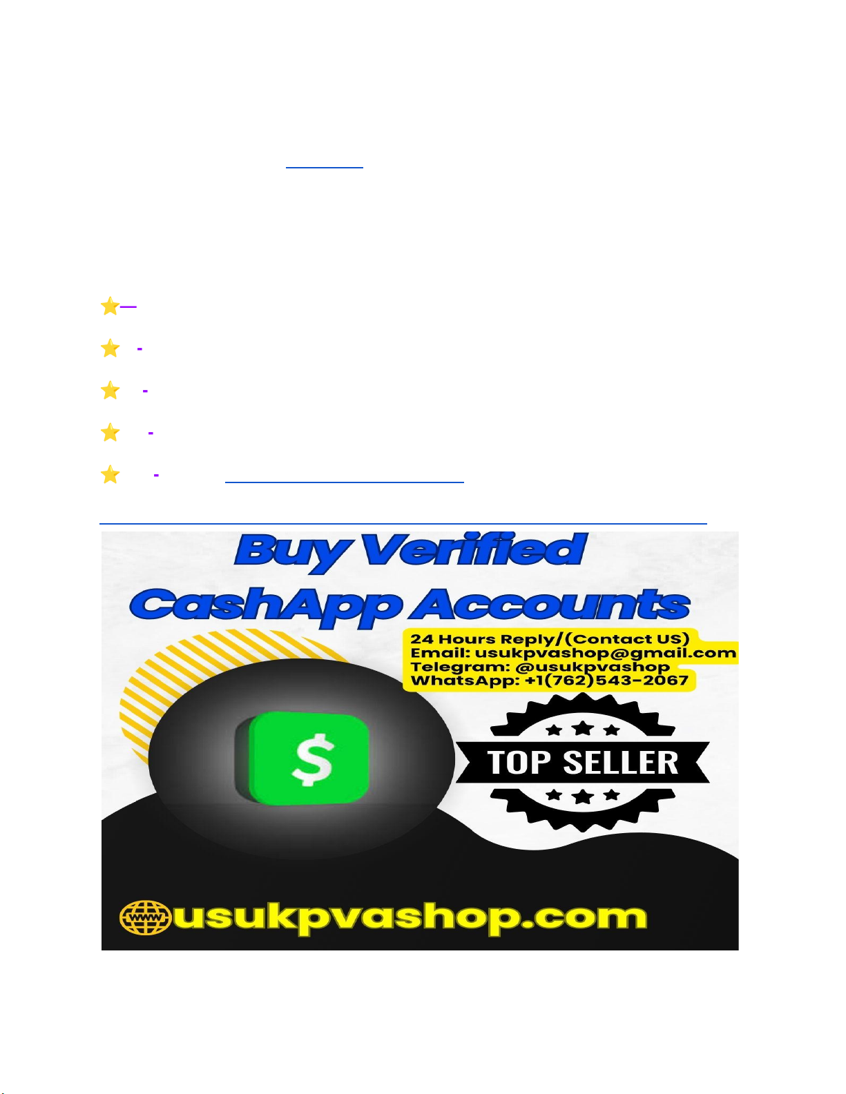 Why Many Users Need Verified CashApp Accounts Looking to buy verified Cash App accounts? You’re not alone. Whether you want to boost your transactions, increase your credibility, or simply save time, having a verified account can make all the difference. But how do you find a reliable source, and what should you watch out for? This guide will help you understand everything you need to know before making a purchase. ⭐—-------------➤24 Hours Reply/(Contact US) ⭐—-------------➤Email: usukpvashop@gmail.com ⭐—-------------➤Telegram: @usukpvashop ⭐—-------------➤WhatsApp: +1(762)543-2067 ⭐—-------------➤https://usukpvashop.com/ https://usukpvashop.com/product/buy-verified-cashapp-accounts/ https://www.google.com/ https://usukpvashop.com/ https://usukpvashop.com/product/buy-verified-cashapp-accounts/ Keep reading, because the right information can protect your money and unlock new opportunities for your Cash App experience. Why Choose Verified Cashapp Accounts Choosing verified Cashapp accounts offers clear advantages. These accounts provide more security and trust. They help avoid common problems faced with unverified accounts. Verified accounts also allow higher transaction limits and better support. Understanding these benefits helps make smart decisions. Benefits Of Verified Accounts Verified Cashapp accounts offer greater security for your money. They reduce the chance of fraud and scams. Users can send and receive larger amounts with ease. Customer support responds faster to verified users. Verification builds trust among buyers and sellers. It makes transactions smoother and safer overall. Risks Of Unverified Accounts Unverified accounts often face limits on sending money. They have higher chances of being blocked or frozen. Fraudsters use unverified accounts to trick users. Recovering funds from unverified accounts is difficult. These accounts may lack full access to features. Using unverified accounts puts your money at risk. Where To Find Trusted Sellers Finding trusted sellers is important when buying verified Cashapp accounts. Trustworthy sellers protect your money and provide real accounts. The right place to buy makes a big difference. Knowing where to find these sellers can save you from scams and loss. Focus on sellers with good reviews and clear communication. Reputable Marketplaces Some marketplaces specialize in verified Cashapp accounts. These platforms check sellers before allowing them to sell. Look for sites with high ratings and user feedback. Verified sellers often have badges or verification marks. Use marketplaces known for secure payment methods and buyer protection. Avoid unknown websites with little information or no reviews. Tips For Spotting Scams https://usukpvashop.com/product/buy-verified-cashapp-accounts/ https://usukpvashop.com/product/buy-verified-cashapp-accounts/ Scams are common in this market. Watch out for sellers who ask for payment outside secure systems. Be cautious if prices are too low compared to others. Poor grammar and rushed responses are red flags. Ask questions and expect clear, honest answers. If a seller refuses to provide proof of account verification, avoid them. Security Measures To Consider Buying verified Cashapp accounts requires careful attention to security. These accounts hold sensitive financial information. Protecting your money and data is important. Understanding key security steps can keep you safe. This section covers essential security measures to consider. ⭐—-------------➤24 Hours Reply/(Contact US) ⭐—-------------➤Email: usukpvashop@gmail.com ⭐—-------------➤Telegram: @usukpvashop ⭐—-------------➤WhatsApp: +1(762)543-2067 ⭐—-------------➤https://usukpvashop.com/ https://usukpvashop.com/product/buy-verified-cashapp-accounts/ Account Authentication Steps Authentication confirms the account belongs to you. Strong authentication stops unauthorized access. Use two-factor authentication for extra protection. This adds a second step, like a text code. Change your password regularly to keep it secure. Avoid simple passwords that are easy to guess. Never share your login details with others. Protecting Personal Information Keep your personal information private at all times. Do not share your full name, address, or phone number online. Scammers can use this data to steal your identity. Use secure networks when accessing your Cashapp account. Public Wi-Fi can expose your information to hackers. Always log out after using your account on shared devices. How Fast Transactions Work https://usukpvashop.com/product/buy-verified-cashapp-accounts/ https://usukpvashop.com/ https://usukpvashop.com/product/buy-verified-cashapp-accounts/ Fast transactions are a key reason many choose verified Cashapp accounts. Speedy money transfers save time and reduce hassle. Understanding how these quick transactions happen helps users trust the service. The process depends on instant access and smooth payment methods. These factors work together to deliver fast results. Instant Account Access Verified Cashapp accounts offer immediate access after purchase. No long waiting times or complex steps. Users can start sending and receiving money right away. This instant access speeds up all transactions. It removes delays common with unverified accounts. Verified status also reduces security checks during transfers. The result is a faster, smoother payment process. Efficient Payment Methods Cashapp uses efficient payment methods to complete transactions fast. Transfers happen directly between linked bank accounts or cards. This direct link cuts out middlemen and extra steps. Payments show up instantly or within minutes. The app's simple interface helps users send money quickly. Efficient methods reduce errors and delays. This keeps transactions running smoothly and fast. Pricing And Value Insights Understanding the pricing and value of verified Cashapp accounts is important before making a purchase. P