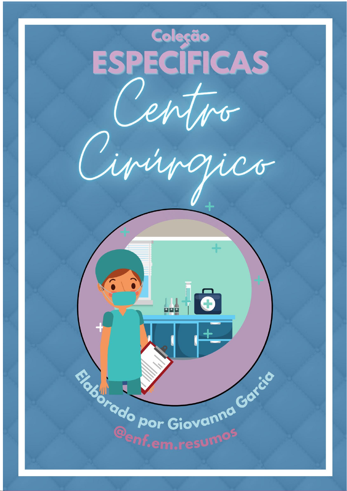 Licenciado para - Hemenice Caroline Dias da Costa Barbosa - 84775823272 - Protegido por Eduzz.com 2 Regras de utilização dos resumos Este material foi elaborado com base nas aulas e materiais disponibilizados pelas professoras que ministraram a disciplina ENC 250 – Enfermagem na Saúde do Adulto e do Idoso em Cuidados Críticos, no período de maio à junho de 2019, nos artigos e sites citados ao fim de cada aula com as devidas referências, com consulta ao livro Brunner & Suddarth, Tratado de Enfermagem Médico Cirúrgica, 12 edição (I e II),, com auxílio dos materiais e videoaulas elaborados pela Equipe Professor Rômulo Passos e vídeos no Youtube (links adicionados ao fim das aulas). O material foi elaborado por uma aluna de enfermagem (Giovanna Garcia), e estão sujeitos a erros, visto que não passaram por nenhuma correção de profissionais. Vale ressaltar que os conteúdos são frequentemente lidos e atualizados, conforme vou avançando nos conhecimentos e à medida que são divulgadas atualizações e evidências científicas acerca dos temas. Além disso, peço encarecidamente que, caso encontre erros ou alguma referência bibliográfica desatualizada, entre em contato imediatamente. O conteúdo deste material destina-se exclusivamente a exibição privada. Esse material é de uso exclusivo seu. Material elaborado para estudo, com o objetivo de contribuir com o seu aprendizado, motivação e inspiração do seu próprio material de estudo. Caso você poste foto dos resumos nas suas redes sociais marque o perfil @enf.em.resumos para que eu possa repostar e marcar você. Dúvidas e sugestões entrar em contato pelo e-mail: enf.em.resumos@gmail.com ou pelo instagram: @enf.em.resumos Bons estudos! Material elaborado por Giovanna Garcia Carvalho (@enf.em.resumos) Envio Pessoal. PROIBIDO REPASSAR Licenciado para - Hemenice Caroline Dias da Costa Barbosa - 84775823272 - Protegido por Eduzz.com mailto:enf.em.resumos@gmail.com 3 1. Recursos Humanos em CC 2. Planejamento do CC 3. Assistência de Enfermagem Perioperatória 4. Assistência de Enfermagem Pré-operatória 5. Assistência de Enfermagem Transoperatória 6. Paramentação, Degermação e Antissepsia Cirúrgica 7. Instrumentação Cirúrgica 8. Prevenção de lesão por BE 9. Riscos relacionados ao posicionamento cirúrgico 10. Assistência de Enfermagem no Paciente Anestesiado 11. Assistência de Enfermagem no Pós-Operatório + Recuperação Pós-Anestésica 12. Cirurgia Minimamente Invasiva 13. Risco de Sangramento Intraoperatório Licenciado para - Hemenice Caroline Dias da Costa Barbosa - 84775823272 - Protegido por Eduzz.com 4 parte 1 Ato anestésico cirúrgico – Promoção de um ambiente: SEGURO, CONFORTÁVEL, ASSÉPTICO = menor risco de eventos adversos. A equipe profissional deve manter o ambiente harmônico, boas relações profissionais (trabalho em equipe para atingir o objetivo principal do CC: segurança do paciente). A atualização do conhecimento por parte da equipe, deve ser meta permanente para garantir a SEGURANÇA do paciente e da própria equipe. Equipe Cirúrgica Elementos da equipe de enfermagem e médica envolvidos na realização do ato anestésico cirúrgico; Atividades das equipes: • Competência profissional • Código de lei do exercício profissional Equipe Multiprofissional: Compõe-se de um grupo de profissionais que tem como finalidade assistir ao paciente em todas as suas necessidades durante os períodos TRANSOPERATÓRIO e PÓS-OPERATÓRIO IMEDIATO (SRPA/ RA); • Enfermeiro: Coordenador/Supervisor/Diretor; • Enfermeiro Assistencial • Técnico de Enfermagem/Auxiliar (Circulante de Sala) • Cirurgião: Chefe, Assistente, Residente, Estudante • Anestesiologista: Chefe, Residente, Estudante • Instrumentador • Estudantes Licenciado para - Hemenice Caroline Dias da Costa Barbosa - 84775823272 - Protegido por Eduzz.com 5 Enfermeira ou enfermeiro Enfermeiro coordenador E/OU enfermeiro assistencial • Deve ser especialista em enfermagem em CC, • Atividades desenvolvidas - planejamento da assistência • Área de abrangência: Administrativa; assistencial; educação em serviço; e pesquisa Enfermeiro Coordenador - Funções • Elaborar normas, rotinas e procedimentos • Participar das reuniões de gerenciamento • Avaliar o desempenho da equipe • Exigir das equipes o cumprimento das normas e regulamentos • Colaborar com o setor de controle de infecção hospitalar • Implementar programas de qualidade de serviço • Participar do processo admissional e de treinamento dos funcionários • Realizar pesquisa e implantar resultados • Incentivar participação em eventos científicos • Conhecer regulamentação da vigilância sanitária • Realizar relatórios mensais com dados estatísticos • Zelar pelas condições ambientais de segurança • Manter o controle administrativo, técnico-operacional e ético • Notificar ocorrências adversas ao paciente • Notificar intercorrências administrativas Enfermeiro assistencial - Funções • Supervisionar e implantar o plano de cuidado de enfermagem • Participar da marcação de cirurgia • Realizar e checar previamente a programação cirúrgica • Supervisionar as ações da equipe de enfermagem • Orientar a montagem e desmontagem das salas de operações • Checar materiais e equipamentos necessários ao ato cirúrgico • Priorizar atendimento aos pacientes segundo o grau de complexidade Licenciado para - Hemenice Caroline Dias da Costa Barbosa - 84775823272 - Protegido por Eduzz.com 6 • Recepcionar o paciente no CC e checar o seu prontuário • Auxiliar transferência do paciente da maca para mesa cirúrgica • Auxiliar no posicionamento do paciente na mesa cirúrgica • Realizar procedimentos específicos (sonda vesical, higiene, tricotomia, entre outros) • Auxiliar no ato anestésico • Prestar assistência ao término do procedimento anestésico-cirúrgico • Auxiliar na transferência do p