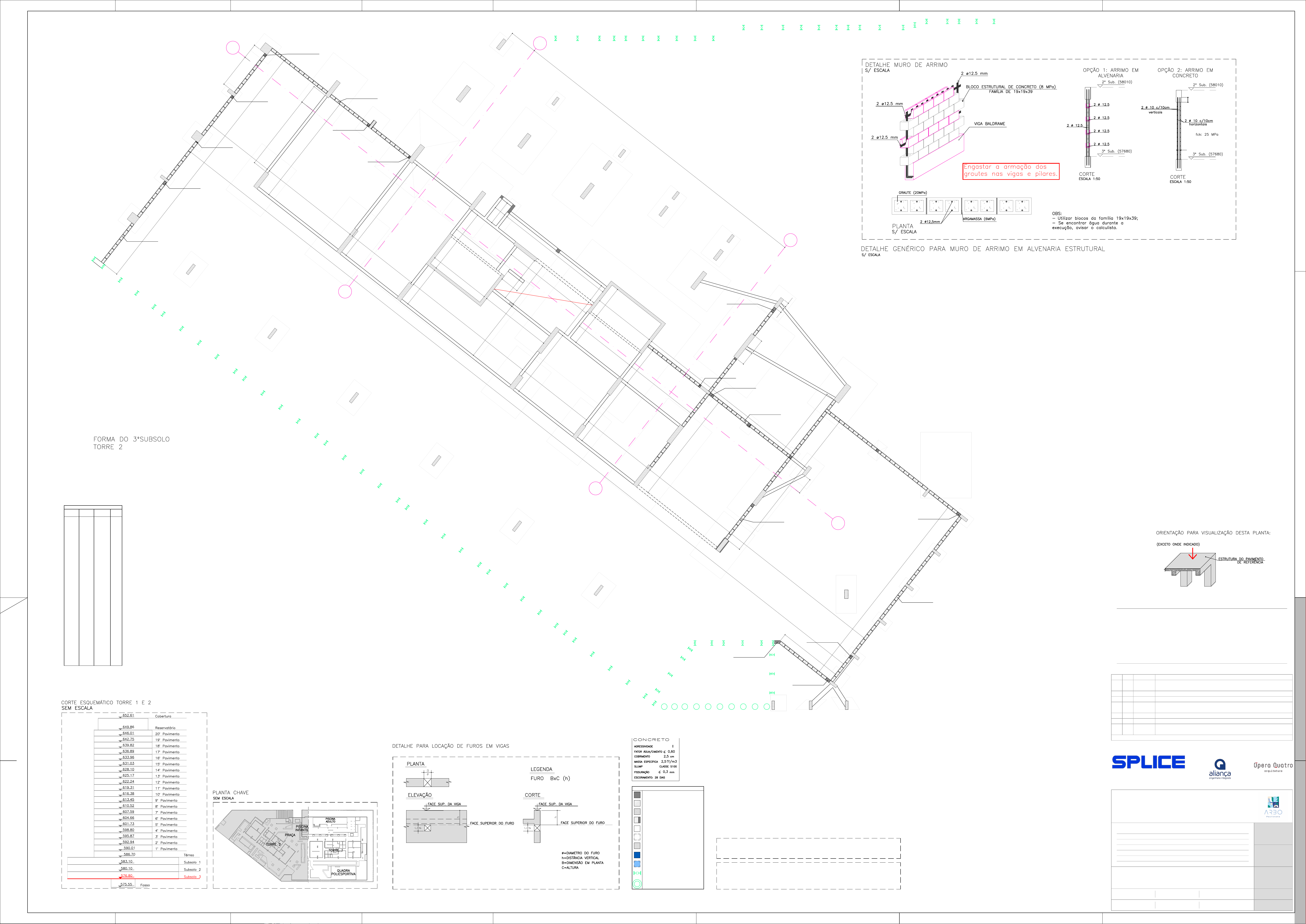V3S2-1(19x40) V3S2-2 (19x40) V3S2-2 V3S2-2 V3S2-3 (19x40) V3S 2- 4 (1 9x 40 ) V3S2-6 (19x40) V3S2-6 (19x40) V3S2-6 (19x40) V3S2-6 (19x40) V3S2-6 (19x40) V3S2-6 (19x70) e=+30 V3S2-7(19x40) V3S2-8 (19x40) V3S2-9 (19x40) V3S2-9 V3S 2- 10 (1 9x 40 ) V3S 2- 11 (1 9x 40 ) V3S 2- 12 (1 9x 40 ) V3S 2- 13 (1 9x 40 ) V3S2-14 (14x175) e=+30 V3S2-15 (19x50) e=+30 V3S2-16 (31.7x40) V3S 2- 17 (1 9x 40 ) V3S 2- 17 V3S 2- 17 V3S 2- 17 V3S 2- 17 V3S 2- 18 (1 9x 40 ) V3S 2- 19 (1 9x 40 ) V3S2-20 (19x40) V3S2-21(14x175) e=+30 V3S2-22 V3S2-22 (19x40) V3S 2- 23 (1 9x 40 ) V3S2-24 (19x40) V3S2-24 V3S2-24 V3S 2- 25 (1 9x 40 ) V3S2-26 (19x40) V3S2-26 V3S2-26 V3S 2- 27 (1 9x 40 ) V3S 2- 27 V3S 2- 28 V3S 2- 28 (1 9x 40 ) V3S 2- 29 V3S 2- 29 (1 9x 40 ) V3S 2- 30 (1 9x 40 ) V3S2-31(19x40) V3S 2- 32 V3S 2- 32 (1 9x 40 ) V3S 2- 32 V3S 2- 32 V3S 2- 32 (30x130) P2-2 (35x120) P2-3 (35x140) P2-5 (30x130) P2-6 (30x150) P2-8 (30x200) P2-9 (U 264x472x19x22) P2-10 (25x187) P2-11 (30x140) P2-12 (32x140) P2-13 (U 264x472x19x22) P2-14 (30x209) P2-15 (35x110) P2-17 (30x140) P2-18 (40x140) P2-19 (30x111) P2-20 (30x150) P2-21 (30x171.5) P2-22 (30x120) P2-23 (40x100) P2-24 (25x80) PL2-1 (19x60) PL2-2 (19x60) PL2-3 (19x60) PL2-5 (19x80) PL2-6 (19x60) PL2-7 (25x80) PL2-8 (60x60) PL2-9 (25x60) PL2-10 (25x60) PL2-11 (60x60) PL2-12 (19x60) PL2-13 (60x60) PL2-14 (19x80) PL2-15 (14x30) PL2-16 (19x80) PL2-17 (19x80) PL2-18 (19x80) PL2-19 (19x80) PL2-20 (25x70) PL2-21 (19x60) PL2-22 (19x80) PL2-23 (19x60) PL2-24 (19x60) PL2-25 (19x80) PL2-26 (25x60) PL2-27 (19x60) PL2-28 (19x60) PL2-29 (19x60) PL2-30 (19x60) PL2-31 (19x19) PL2-90 (30x111) P2-4 (25x25) PL2-92 (25x70) PL2-4 (19x67) PL2-91 (30x120) P2-7 (25x25) PL2-93 (19x19) PL2-94 (19x19) PL2-95 5664,5 482,5 700,5 514,5 946,5 535,5 514,5 690 1148 428 493,5 380 434 514 428 1223,5 18 52 78 4 78 3,5 21 3,5 23 1 29 3 42 5 32 7,5 26 9,5 12 3 48 3 23 1 21 5 27 9 48 3 78 1 11 03 14 22 ,5 437,5 48 2 649 831,5 17 0,5 MURO DE ARRIMO BLOCO CORTADO E AJUSTADO IN LOCO BLOCO CORTADO E AJUSTADO IN LOCO BLOCO CORTADO E AJUSTADO IN LOCO BLOCO CORTADO E AJUSTADO IN LOCO BLOCO CORTADO E AJUSTADO IN LOCO BLOCO CORTADO E AJUSTADO IN LOCO BLOCO CORTADO E AJUSTADO IN LOCO BLOCO CORTADO E AJUSTADO IN LOCO BLOCO CORTADO E AJUSTADO IN LOCO BLOCO CORTADO E AJUSTADO IN LOCO BLOCO CORTADO E AJUSTADO IN LOCO BLOCO CORTADO E AJUSTADO IN LOCO 81,5 MURO DE ARRIMO MURO DE ARRIMO MURO DE ARRIMO (30x200) P2-16 (25x80) PL2-40 V3S 2- 28 (1 9x 40 ) V3S 2- 28 (1 9x 40 ) V3S2-33 (19x40) V3S2-34 (19x40) 90 ,5 90 ,5 30 ,5 30 ,5 BLOCO CORTADO E AJUSTADO IN LOCO MURO DE ARRIMO ((30x100)) ((19x60)) V3S2-24 V3S2-35 (19x40) V3S2-35 (19x40) (3 0x 60 ) (19x60) PL2-108 (19x60) PL2-109 (19x60) PL2-110 VAT2-2 (30 x6 0) VAT2-3 (30x60) V3S2-36 (19x40) X1 X1 Y1 Y2 Y1 Y2 11 4 2176 190 13 3,5 52 6,5 10 5 23 3 V3S2-37(19x175) e=+49.7 15 3,5 19 14 8,5 129,2 Escada - Ver projeto específico - folha 180 SEM ESCALA NOTAS: TODAS AS FURAÇÕES LIBERADAS PARA EXECUÇÃO ESTÃO REPRESENTADAS NAS FORMAS, DESTE MODO, QUAISQUER FUROS ADICIONAIS DEVEM SER SUBMETIDOS A APROVAÇÃO DA ALIANÇA ENGENHARIA -ELETRODUTOS QUE PASSEM VERTICALMENTE POR VIGAS, DEVEM POSSUIR DIÂMETRO DE ATÉ Ø3/4", POSICIONADOS NO EIXO DA VIGA E INSTALADOS ANTES DA CONCRETAGEM DAS VIGAS; -DEVEM SER ACRESCENTADAS À ESTRUTURA, AS BARRAS DE AÇO NECESSÁRIAS PARA ATENDER AO PROJETO ESPECÍFICO DE SPDA. NÃO DEVEM SER UTILIZADAS AS BARRAS PREVISTAS NOS PROJETOS DE ARMAÇÃO DE ESTRUTURAS; Viga com desnível/elevação Viga Pilar com mudança de seção Pilar que nasce Pilar que passa Pilar que morre LEGENDA Laje com desnível/elevação Parede moldada in-loco (Nasce/Continua) Parede moldada in-loco (Morre) Conteção Conteção DE CIMA PARA BAIXO 20 19 Vigas Nome Seção Elevação Nível (cm) (cm) (cm) V3S2-1 19x40 0 57680 V3S2-2 19x40 0 57680 V3S2-3 19x40 0 57680 V3S2-4 19x40 0 57680 V3S2-6 19x40 0 57680 19x70 30 57710 V3S2-7 19x40 0 57680 V3S2-8 19x40 0 57680 V3S2-9 19x40 0 57680 V3S2-10 19x40 0 57680 V3S2-11 19x40 0 57680 V3S2-12 19x40 0 57680 V3S2-13 19x40 0 57680 V3S2-14 14x175 30 57710 V3S2-15 19x50 30 57710 V3S2-16 31.7x40 0 57680 V3S2-17 19x40 0 57680 V3S2-18 19x40 0 57680 V3S2-19 19x40 0 57680 V3S2-20 19x40 0 57680 V3S2-21 14x175 30 57710 V3S2-22 19x40 0 57680 V3S2-23 19x40 0 57680 V3S2-24 19x40 0 57680 V3S2-25 19x40 0 57680 V3S2-26 19x40 0 57680 V3S2-27 19x40 0 57680 V3S2-28 19x40 0 57680 V3S2-29 19x40 0 57680 V3S2-30 19x40 0 57680 V3S2-31 19x40 0 57680 V3S2-32 30x60 0 57680 19x40 0 57680 V3S2-33 19x40 0 57680 V3S2-34 19x40 0 57680 V3S2-35 19x40 0 57680 V3S2-36 19x40 0 577.297 VAT2-2 30x60 0 57680 VAT2-3 30x60 0 57680 V3S2-37 19x175 49.7 57680 ESCALA 1:75 LIBERADO PARA OBRA desenvolvimento urbano 00 ALC 07/11/2024 EMISSÃO INICIAL REV DATA DESCRIÇÃOPRO CÓDIGO DA OBRA CÓDIGO DO AGENTE FOLHA FASE REVISÃO RESPONSÁVEL DO PROJETO ESCALA ARQUIVOS UTILIZADOS / REFERÊNCIA ENDEREÇO DO EMPREENDIMENTO DESENHISTA DATA DE EMISSÃO GERENCIADOR NOME DO ARQUIVO INDICADA MÁYLA BIANCHINI CRUZ 07/11/2024 LEONARDO TAVARES FRMESTLO0503SSR05 MÁYLA BIANCHINI CRUZ XXXXXXXX ASSUNTO DO PROJETO FORMA DO 3º SUBSOLO TORRE 2 FRM EST 050 LO 05 NOTAS: GESTÃO / COMPATIBILIZAÇÃOEMPRESA RESPONSÁVEL ARBO PAULISTANO SOROCABA - SÃO PAULO RUA GUSTAVO TEIXEIRA, 785 - JARDIM HABITACIONAL 01 ALC 17/12/2024 REVISÃO NO RESERVATÓRIO 02 ALC 27/01/2025 AJUSTE NA DIMENSÃO DOS PILARES PL2-8, PL2-6, P2-24, PL2-92, PL2-93 e PL2-11 NA TORRE 2 E ACRÉSCIMO DA V3S2-35 E V3S2-36 03 ALC 11/06/2025 REVISÃO DOS EIXOS DA TORRE 2 04 ALC 29/08/2025 REVISÃO DA ESCADA 05 ALC 21/11/2025 REVISÃO DO ARRIMO