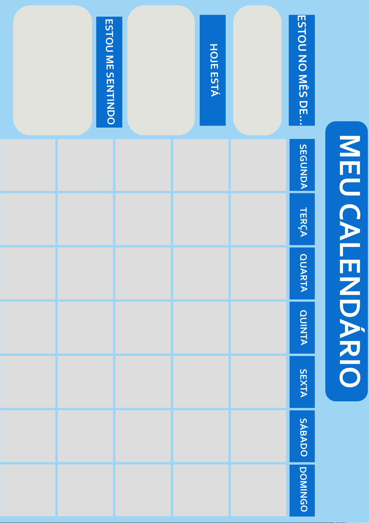 SEG U N D A TER ÇA Q U A R TA Q U IN TA SEX TA SÁ B A D O D O M IN G O M EU CA LEN D Á R IO ESTO U N O M ÊS D E… ESTO U M E SEN TIN D O H O JE ESTÁ 2916 31017 41118 51219 613 2 0 7142 1 8 115 2 2 2 9 2 3 3 0 2 43 1 2 5 2 6 2 7 2 8 M A IO D EZ EM B R O JA N EIR O FEV ER EIR O M A R ÇO A B R IL JU N H O JU LH O A G O STO SETEM B R O O U TU B R O N O V EM B R O