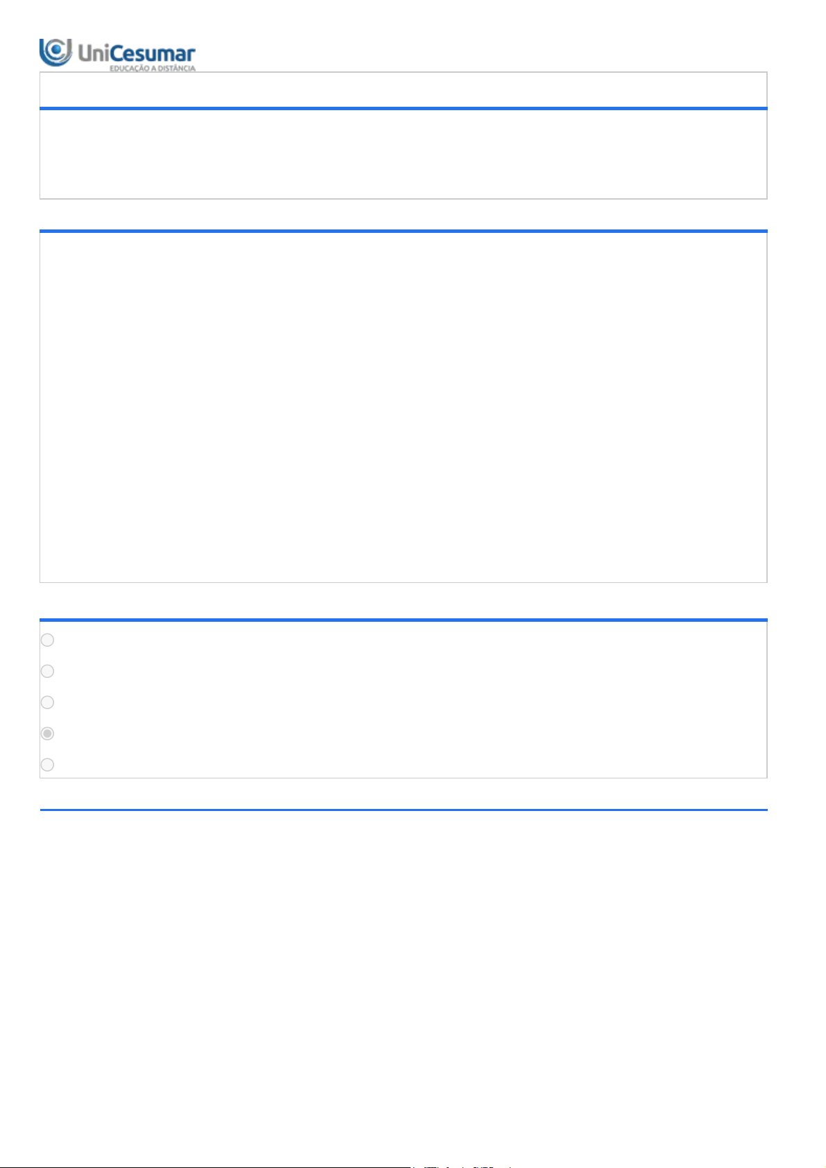 ATIVIDADE 2 - ARQ - FÍSICA E MATEMÁTICA APLICADAS À ARQUITETURA - 54_2025 Período:20/10/2025 08:00 a 03/12/2025 23:59 (Horário de Brasília) Status:ENCERRADO Nota máxima:1,00 Gabarito:Gabarito será liberado no dia 04/12/2025 00:00 (Horário de Brasília) Nota obtida:0,80 1ª QUESTÃO As Funções são o elemento-chave para descrever o mundo real em termos matemáticos. O valor de uma variável, que podemos chamar de y, depende do valor de outra, que podemos denominar x. Uma vez que o valor de y é completamente determinado pelo valor de x, dizemos que y é uma função de x. Fonte: adaptado de: THOMAS, G. B.; WEIR, M. D.; HASS, J. Cálculo. 12. ed. São Paulo: Pearson, 2012. Considerando o conceito de função apresentado no texto, analise as afirmativas a seguir: I. A distância percorrida por um atleta de corrida encontra-se em função de sua energia cinética. II. A temperatura de ebulição da água depende da altitude. III. Os juros pagos sobre um investimento dependem do tempo que o dinheiro permanece investido. IV. A área de um círculo depende do raio desse círculo. V. A distância que um objeto percorre a uma velocidade constante, a partir de um ponto inicial, ao longo de uma trajetória reta, depende do tempo transcorrido. É correto o que se afirma em: ALTERNATIVAS I, apenas. IV e V, apenas. I, II e III, apenas. II, III, IV e V, apenas. I, II, III, IV e V. 2ª QUESTÃO 04/12/25, 15:53 Unicesumar - Ensino a Distância about:blank 1/8 No futebol de salão, a área de meta é delimitada por dois segmentos de reta (de comprimento 11 m e 3 m) e dois quadrantes de círculos (de raio 4 m), conforme a figura. Elaborado pelo professor, 2024. Considerando o exposto, aponte a alternativa que apresenta a medida aproximadamente da superfície da área de meta. ALTERNATIVAS 31 m^2. 33 m^2. 35 m^2. 37 m^2. 39 m^2. 3ª QUESTÃO 04/12/25, 15:53 Unicesumar - Ensino a Distância about:blank 2/8 Após encerrar o período de vendas de 2023, uma concessionária fez um levantamento das vendas de carros novos no último semestre desse ano. Os dados estão expressos no gráfico. Ao fazer a apresentação dos dados aos funcionários, o gerente estipulou como meta para o mês de janeiro de 2024 um volume de vendas 20% superior à média mensal de vendas do semestre anterior. Elaborado pelo professor, 2024. Figura 1: Gráfico com escala mensal de carros vendidos. Considerando o texto, e analisando a figura, aponte a alternativa que representa a quantidade mínima de carros que deveriam ser vendidos em janeiro de 2023. ALTERNATIVAS 17. 20. 21. 24. 30. 4ª QUESTÃO Na geometria, os conceitos de área e perímetro são utilizados para determinar as medidas de alguma figura; geralmente para encontrar a área de uma figura basta multiplicar a base (b) pela altura (h). Já o perímetro é a soma dos segmentos de retas que formam a figura, chamados de lados (l). Para encontrar esses valores é importante analisar a forma da figura estudada. Dado um terreno retangular que possui 8,4 m por 15 m e esta sendo gramado, sabendo que um quilograma de semente de grama é suficiente para gramar 3 m² de terreno, quantos quilogramas de semente de grama são necessários para gramar o terreno todo? ALTERNATIVAS 04/12/25, 15:53 Unicesumar - Ensino a Distância about:blank 3/8 126 kg. 56 kg. 612 kg. 42 kg. 142 kg. 5ª QUESTÃO Analise a figura e aponte qual é a área do trapézio retângulo cujas medidas, em centímetros, que estão indicadas na figura. Elaborado pelo professor, 2024. Figura 1: Trapézio retângulo. ALTERNATIVAS 112,5 cm^2. 142,5 cm^2. 150 cm^2. 162,5 cm^2. 190 cm^2. 6ª QUESTÃO 04/12/25, 15:53 Unicesumar - Ensino a Distância about:blank 4/8 As aplicações das derivadas são imensas, mas está sempre relacionado com uma taxa de variação. O exemplo mais comum é pensarmos numa função que nos dá a deslocação de um objeto num determinado intervalo de tempo. Enquanto a taxa de variação da função num intervalo nos permite calcular a velocidade média, a derivada permite-nos calcular a velocidade instantânea. Elaborado pelo professor, 2024. A função a seguir representa a taxa de crescimento populacional de um grupo de pandas com manchas verdes T(x) = 10x^2 + 15x - 2. Onde T é a taxa de crescimento e x o tempo. Com base na função e em seu conhecimento em derivação aponte a alternativa que determina a derivada primeira da função apresentada. ALTERNATIVAS T'(x) = 20x - 2. T'(x) = 12x -2. T'(x) = 20x + 15. T'(x) = 20x + 15x. T'(x) = 10x + 15 - 2. 7ª QUESTÃO Temos formas pré-definidas e já estabelecidas por fórmulas específicas provadas no campo da Geometria, como para casos como cubos, paralelepípedos, pirâmides, cilindros, cones, dentre outros. Sendo assim aplicamos as respectivas fórmulas e obtemos, por exemplo, áreas e volumes. Com base nisso, analise a seguinte situação problema: "Para analisar um projeto arquitetônico foi realizado um experimento que utilizou um recipiente no formato cubico de aresta de 4 cm repleto de um líquido. O líquido foi colocado em outro recipiente no formato de um paralelepípedo reto com arestas da base dadas por 2 cm e 8 cm. Qual a altura que o líquido atinge este paralelepípedo? Assinale a alternativa correta: ALTERNATIVAS 2 cm². 3 cm². 4 cm². 5 cm². 6 cm². 8ª QUESTÃO 04/12/25, 15:53 Unicesumar - Ensino a Distância about:blank 5/8 Existem grandezas chamadas escalares, que são caracterizadas por um número. As flechas nos dão ideia exata de grandezas vetoriais, sendo essa, intuitivamente, um segmento no qual se fixou uma orientação, ou seja, escolher um sentido. Na verdade, não precisamos da flecha toda para os nossos objetivos. Bastam os pontos A e B, além da ordem: primeiro A e depois B. Adaptada de: BOULOS, P.; CAMARGO, I. de. Geometria Analítica: um tratamento vetorial. São Paulo: McGraw Hill, 1987. Considerando as informações apresentadas no texto, analise as seguintes definições sobre vetores. I. Um ponto com