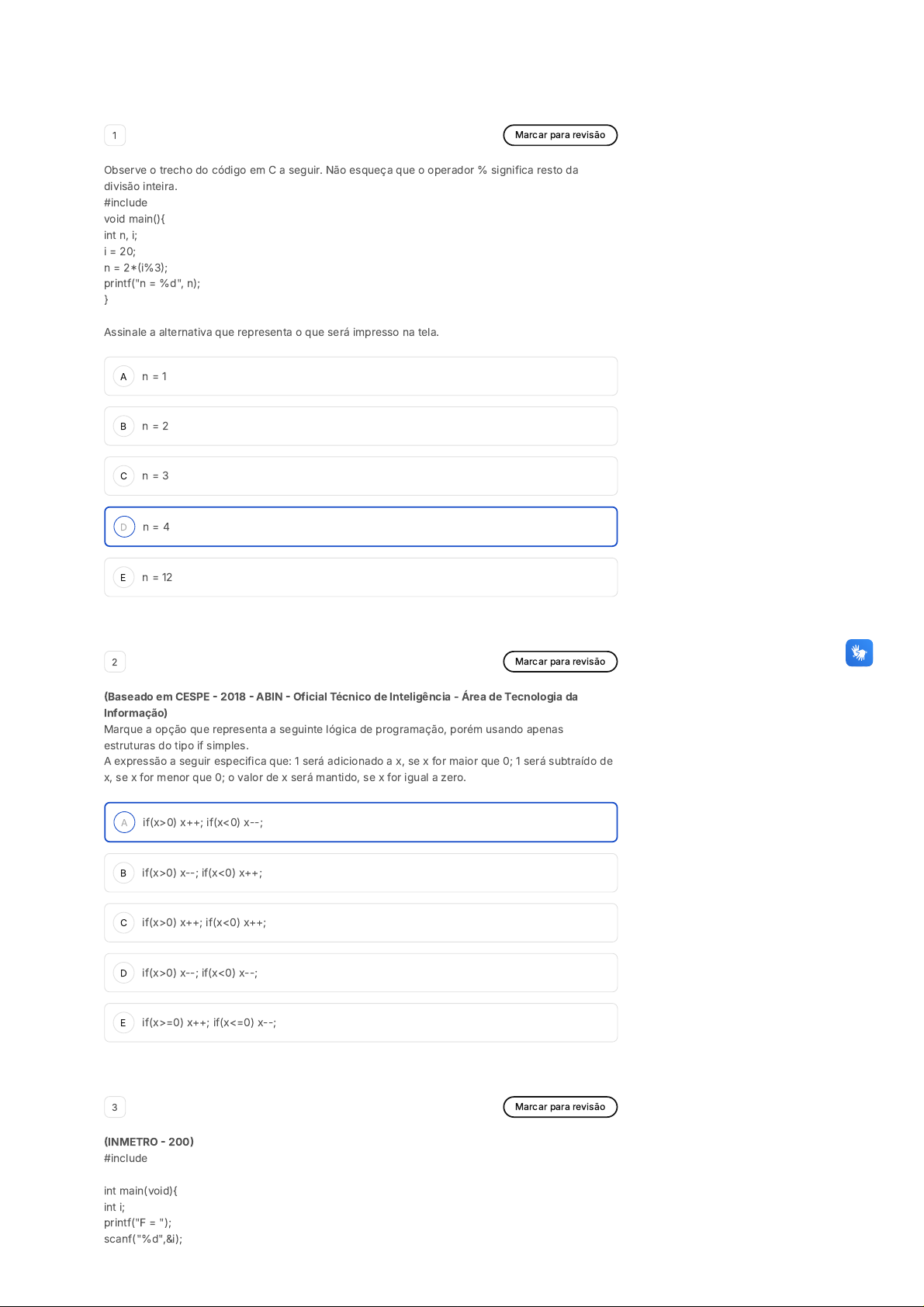 Observe o trecho do código em C a seguir. Não esqueça que o operador % significa resto da