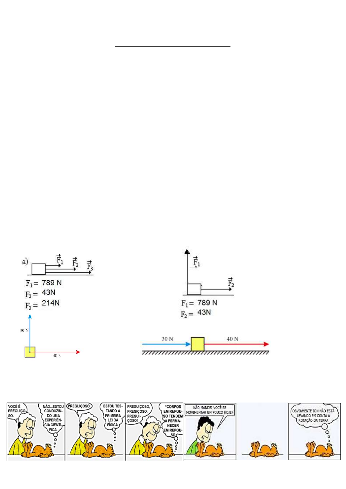 Nome: ________________________________________________________n°____Serie: _____ Data: ___/___/___ Recuperação de Ciência Prof°Andriele. Será aceito somente resposta com cálculos! 1) Um corredor estava a uma velocidade de 60m/s. Qual a sua velocidade em km/h? 2) Um jet ski que está no mar passa por um barco a uma velocidade de 80m/s. Qual a velocidade do barco em km/h? 3) Ao chutar uma bola o jogador consegue fazer o lançamento da mesma a uma velocidade de 44m/s. O técnico gostaria de saber a velocidade da bola em km/h. Qual a velocidade da bola em km/h? 4) Qual o peso de um corpo de massa 75 kg na superfície de Júpiter, onde a gravidade é igual a 24,79 m/s2? 5) O peso de um objeto na lua é de 48 N. Determine o peso desse objeto na Terra. Dados: Gravidade da Terra = 10 m/s2; Gravidade da lua = 1,6 m/s2. a) 350 N b) 300 N c) 200 N d) 150 N e) 50 N 6) Qual o peso de uma pessoa de 80 Kg em Vênus? Considere que a gravidade de 8,87m/s2. 7) Calcule as forças resultantes em Newton: 9) Sobre um corpo de 20 kg atua uma força horizontal de 80 N. Qual a aceleração que ele adquire? 10) Qual das Leis de Newton, Referem-se as Tiras Abaixo? Explique essa lei.