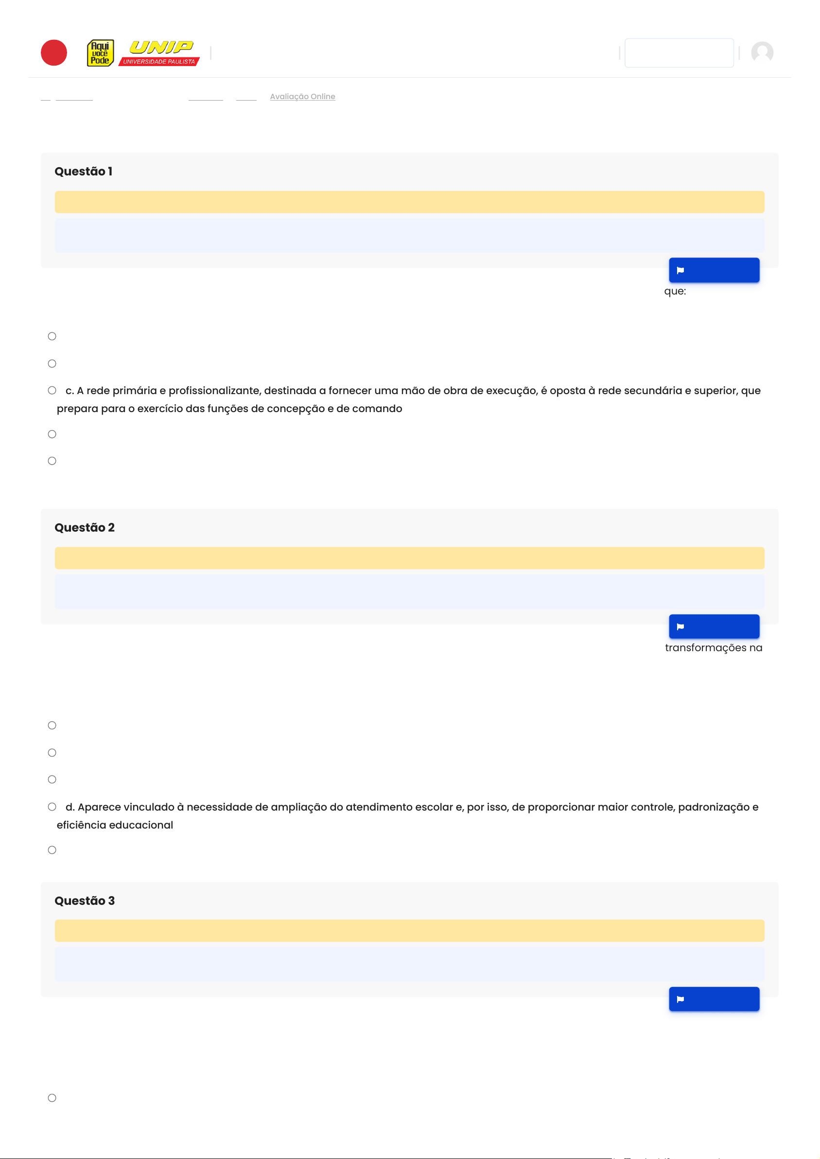 25/11/2021 10:05 Avaliação Online www.unipvirtual.com.br/avaunip/mod/quiz/attempt.php?attempt=5617968&cmid=84827 1/4 - Minhas disciplinas - - - Bibliotecas Virtuais Página inicial S6-L0107 Geral Avaliação Online Christian Baudelot e Roger Establet argumentam que, na sociedade capitalista, o sistema escolar é dualista. Isso significa que: Escolha uma opção: a. A maneira como se organiza a economia não interfere na organização da educação. b. O currículo escolar não interfere na formação da mão de obra no capitalismo. c. A rede primária e profissionalizante, destinada a fornecer uma mão de obra de execução, é oposta à rede secundária e superior, que prepara para o exercício das funções de concepção e de comando. d. A educação na sociedade capitalista é a mesma para todos. e. A diferenciação entre a informação e o conhecimento gera o dualismo escolar, dado o fato de vivermos, simultaneamente, na era da informática e na era do conhecimento. De acordo com Pacheco (2005), os estudos sobre as origens do currículo demonstram que o termo aparece vinculado às transformações na forma de organização da escola, a fim de garantir maior eficiência escolar. Por isso, pode-se afirmar que o termo currículo, no campo educacional, apresenta-se como um princípio de racionalidade, ou seja: Escolha uma opção: a. Pode ser comparado ao sistema aberto e flexível de ordenação dos recursos escolares. b. Está vinculado ao pensamento científico, que visa garantir o uso adequado dos recursos em sala de aula. c. Surgiu como a forma particular da escola lidar com os alunos em sala de aula. d. Aparece vinculado à necessidade de ampliação do atendimento escolar e, por isso, de proporcionar maior controle, padronização e eficiência educacional. e. Está vinculado ao pensamento construtivista, que visa garantir o uso adequado dos recursos didáticos na sala de aula. Alguns estudiosos do currículo, como Silva (2002), escrevem sobre a existência de um “currículo oculto” na educação escolar. A respeito desse conceito, é incorreto afirmar que: Escolha uma opção: a. O currículo oculto compreende os elementos do ambiente escolar que não fazem parte do currículo oficial da escola. Marcar questão Questão 1 Ainda não respondida Vale 1,00 ponto(s). Marcar questão Questão 2 Ainda não respondida Vale 1,00 ponto(s). Marcar questão Questão 3 Ainda não respondida Vale 1,00 ponto(s). http://www.unipvirtual.com.br/avaunip http://www.unipvirtual.com.br/avaunip/ http://www.unipvirtual.com.br/avaunip/course/view.php?id=3577 http://www.unipvirtual.com.br/avaunip/course/view.php?id=3577#section-0 http://www.unipvirtual.com.br/avaunip/mod/quiz/view.php?id=84827 Samsung Realce Samsung Realce Samsung Realce Samsung Realce Samsung Realce 25/11/2021 10:05 Avaliação Online www.unipvirtual.com.br/avaunip/mod/quiz/attempt.php?attempt=5617968&cmid=84827 2/4 b. Para a teoria crítica, basicamente, o aluno aprende no currículo oculto atitudes,comportamentos e valores que podem servir de forma conveniente a uma política capitalista. c. O currículo oculto contribui de forma implícita para aprendizagens sociais relevantes. d. Os rituais, as regras e a organização do espaço escolar não contribuem para o ensino do currículo oculto. e. Uma das fontes do currículo oculto são as relações sociais da escola. Os debates sobre o multiculturalismo no Brasil tomaram corpo ao final do século XX. Sobre práticas escolares, assinale a afirmativa que corresponde a uma orientação concernente ao multiculturalismo: Escolha uma opção: a. Uma prática pedagógica voltada para a diversidade étnica, cultural e linguística. b. Uma prática educativa voltada para a reafirmação das ideias e valores de grupos hegemônicos. c. Uma prática pedagógica voltada para exaltação das diferenças e diminuição das igualdades. d. Uma ação pedagógica voltada para a legitimação de discursos atinentes à supremacia racial. e. Uma prática docente voltada para a homogeneização ideológica, identitária e linguística. Pierre Bourdieu e Jean-Claude Passeron desenvolveram teorias apoiadas no conceito de capital. Como esse conceito pode ser utilizado no âmbito da teoria do currículo? Escolha uma opção: a. A educação não é um campo para a diferenciação de classes. b. A escola oferece a mesma cultura a todos os educandos. c. O currículo escolar está baseado na cultura dominante. Por isso, crianças pertencentes às classes dominantes facilmente compreendem o código utilizado, que lhes é familiar. O mesmo não ocorre com crianças pertencentes às classes dominadas. d. A crítica da cultura não tem espaço atualmente, já que vivemos na sociedade do conhecimento e na era da informática. e. As diferenças culturais são entendidas a partir das diferenças cognitivas identificadas entre as crianças da classe social dominada. A organização curricular reflete as práticas socioculturais. Para colocá-la a serviço de uma educação crítica e formadora da cidadania, é preciso haver: Escolha uma opção: a. Consideração da possibilidade de conflitos entre grupos culturalmente diversos, buscando a negociação e objetivando o consenso. b. Estímulo à igualdade de grupos e à capacidade intelectual de todos, por meio da articulação em prol da ascensão social. Marcar questão Questão 4 Ainda não respondida Vale 1,00 ponto(s). Marcar questão Questão 5 Ainda não respondida Vale 1,00 ponto(s). Marcar questão Questão 6 Ainda não respondida Vale 1,00 ponto(s). Samsung Realce Samsung Realce Samsung Realce Samsung Realce Samsung Realce Samsung Realce 25/11/2021 10:05 Avaliação Online www.unipvirtual.com.br/avaunip/mod/quiz/attempt.php?attempt=5617968&cmid=84827 3/4 c. Interação entre as diversas culturas, que têm linguagens e identidades próprias, com vistas à transformação das relações culturais e sociais. d. Inserção das diferentes culturas numa cultura 