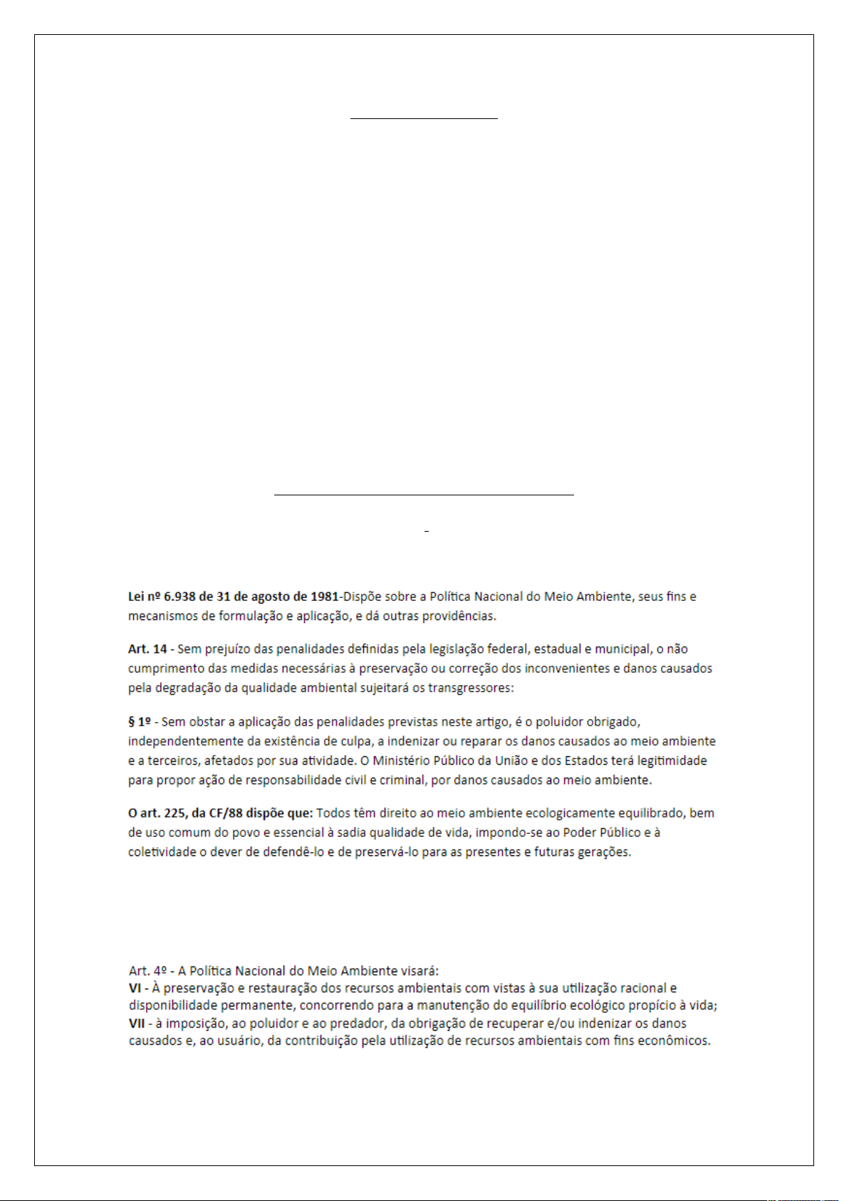 MINUTA TÉCNICA Nome da empresa: EAD Lavanderia LTDA Coordenada geográfica do empreendimento: 20º57´05.03´´S 48º29´01.55´´W Responsável técnico: Luis Gustavo Coqueiro Leite PLANEJAMENTO PARA DESCONTAMINAÇÃO DAS ÁREAS DEGRADADAS E CONTAMINADAS: LEGISLAÇÃO EM AMBITO FEDERAL Artigo 14 §1º da lei nº 6.938/81 e no Art. 225 da CF. Inciso VI e VII do Artigo 4 da Lei nº 6.938 de 31 de agosto de 1981. Art.225, §3º, da CF e Artg.2º do Decreto 6.514 de 2008. LEI DE CRIMES AMBIENTAIS-LEI 9.605/98. Artigo 56 da Lei nº 9.605 de 12 de fevereiro de 1998 Artigo 60 da Lei nº 9.605 de 12 de fevereiro de 1998 Artigo 3 da Lei nº 9.605 de 12 de fevereiro de 1998 NORMAS TÉCNICAS - ABNT NBR 15515-1:2007 – versão corrigida – 2011: LEGILAÇÃO EM AMBITO ESTADUAL RESOLUÇÃO SMA Nº 10, DE 08 DE FEVEREIRO DE 2017 RESOLUÇÃO SMA Nº 11, DE08-02- 2017 SERÁ UTILIZADA A TECNICA de Biorremediação In-Situ (bioestimulação) Vantagens Desvantagens image7.png image8.png image9.png image10.png image11.png image12.png image13.png image14.png image15.png image16.png image17.png image18.png image19.png image1.png image2.png image3.png image4.png image5.png image6.png