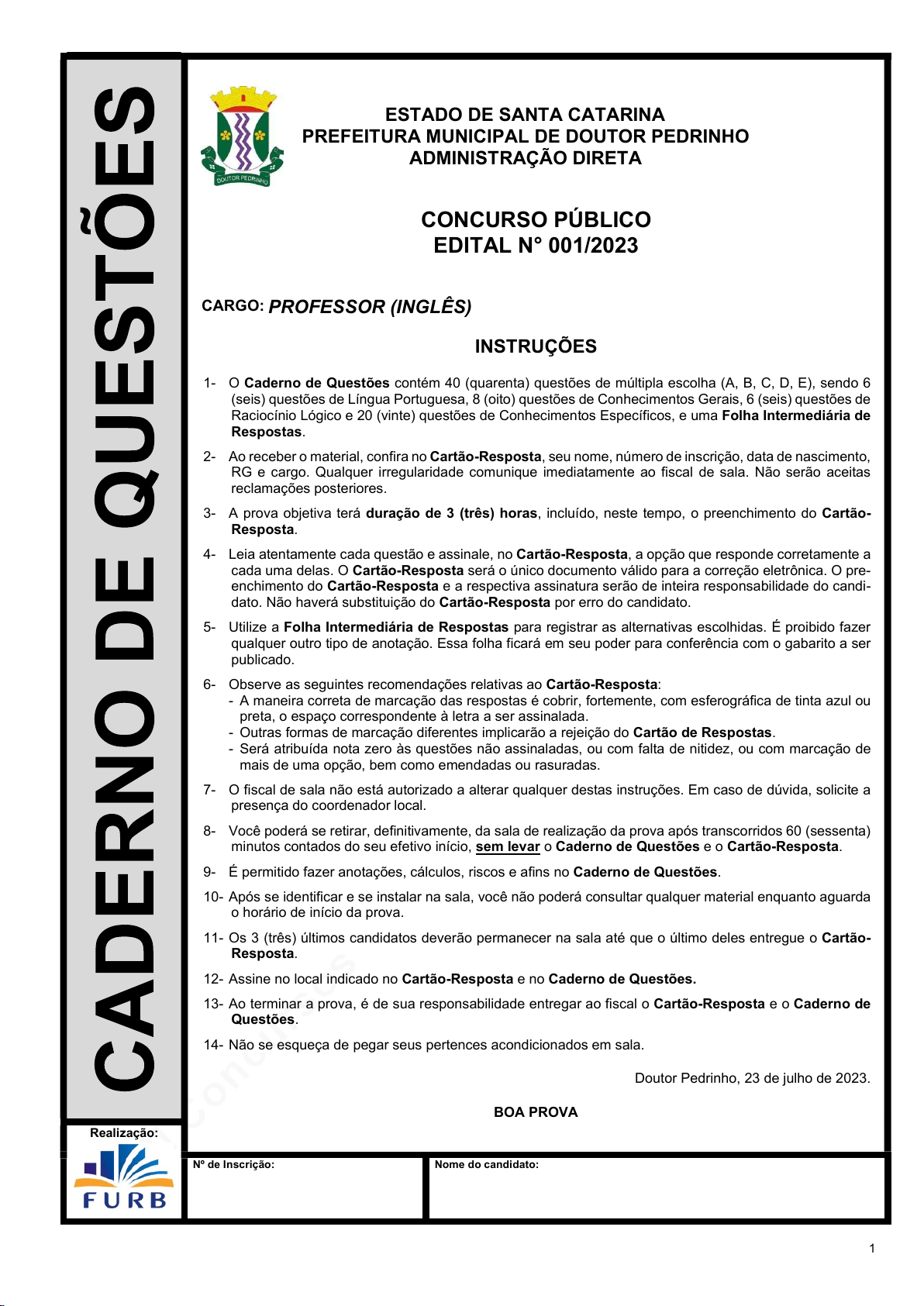 pcimarkpci MDAwMDowMDAwOjAwMDA6MDAwMDowMDAwOmZmZmY6YjE4ODpiNjRm:U3VuLCAwNyBEZWMgMjAyNSAxMzo0NToyMiAtMDMwMA== www.pciconcursos.com.br ESTADO DE SANTA CATARINA PREFEITURA MUNICIPAL DE DOUTOR PEDRINHO ADMINISTRAÇÃO DIRETA CONCURSO PÚBLICO EDITAL N° 001/2023 CARGO: INSTRUÇÕES 1- O Caderno de Questões contém 40 (quarenta) questões de múltipla escolha (A, B, C, D, E), sendo 6 (seis) questões de Língua Portuguesa, 8 (oito) questões de Conhecimentos Gerais, 6 (seis) questões de Raciocínio Lógico e 20 (vinte) questões de Conhecimentos Específicos, e uma Folha Intermediária de Respostas. 2- Ao receber o material, confira no Cartão-Resposta, seu nome, número de inscrição, data de nascimento, RG e cargo. Qualquer irregularidade comunique imediatamente ao fiscal de sala. Não serão aceitas reclamações posteriores. 3- A prova objetiva terá duração de 3 (três) horas, incluído, neste tempo, o preenchimento do Cartão- Resposta. 4- Leia atentamente cada questão e assinale, no Cartão-Resposta, a opção que responde corretamente a cada uma delas. O Cartão-Resposta será o único documento válido para a correção eletrônica. O pre- enchimento do Cartão-Resposta e a respectiva assinatura serão de inteira responsabilidade do candi- dato. Não haverá substituição do Cartão-Resposta por erro do candidato. 5- Utilize a Folha Intermediária de Respostas para registrar as alternativas escolhidas. É proibido fazer qualquer outro tipo de anotação. Essa folha ficará em seu poder para conferência com o gabarito a ser publicado. 6- Observe as seguintes recomendações relativas ao Cartão-Resposta: - A maneira correta de marcação das respostas é cobrir, fortemente, com esferográfica de tinta azul ou preta, o espaço correspondente à letra a ser assinalada. - Outras formas de marcação diferentes implicarão a rejeição do Cartão de Respostas. - Será atribuída nota zero às questões não assinaladas, ou com falta de nitidez, ou com marcação de mais de uma opção, bem como emendadas ou rasuradas. 7- O fiscal de sala não está autorizado a alterar qualquer destas instruções. Em caso de dúvida, solicite a presença do coordenador local. 8- Você poderá se retirar, definitivamente, da sala de realização da prova após transcorridos 60 (sessenta) minutos contados do seu efetivo início, sem levar o Caderno de Questões e o Cartão-Resposta. 9- É permitido fazer anotações, cálculos, riscos e afins no Caderno de Questões. 10- Após se identificar e se instalar na sala, você não poderá consultar qualquer material enquanto aguarda o horário de início da prova. 11- Os 3 (três) últimos candidatos deverão permanecer na sala até que o último deles entregue o Cartão- Resposta. 12- Assine no local indicado no Cartão-Resposta e no Caderno de Questões. 13- Ao terminar a prova, é de sua responsabilidade entregar ao fiscal o Cartão-Resposta e o Caderno de Questões. 14- Não se esqueça de pegar seus pertences acondicionados em sala. Doutor Pedrinho, 23 de julho de 2023. BOA PROVA Realização: Nº de Inscrição: Nome do candidato: PROFESSOR (INGLÊS) 1 pcimarkpci MDAwMDowMDAwOjAwMDA6MDAwMDowMDAwOmZmZmY6YjE4ODpiNjRm:U3VuLCAwNyBEZWMgMjAyNSAxMzo0NToyMiAtMDMwMA== www.pciconcursos.com.br Língua Portuguesa O texto seguinte servirá de base para responder às questões de 1 a 6. O que sabemos sobre as profundezas do oceano Embora as pessoas explorem a superfície do oceano há dezenas de milhares de anos, apenas cerca de 20% do fundo do mar foi mapeado, de acordo com dados de 2022 da Administração Nacional Oceânica e Atmosférica (NOAA, em inglês), dos Estados Unidos. Os pesquisadores costumam dizer que viajar para o espaço é mais fácil do que mergulhar no fundo do oceano. Enquanto 12 astronautas passaram um total coletivo de 300 horas na superfície lunar, apenas três pessoas passaram cerca de três horas explorando o Challenger Deep, o ponto mais profundo conhecido do fundo do mar da Terra, de acordo com a Woods Hole Oceanographic Institution. Na verdade, "temos melhores mapas da Lua e de Marte do que do nosso próprio planeta", disse o pesquisador Gene Feldman, oceanógrafo emérito da Nasa que passou mais de 30 anos na agência espacial. Há uma razão pela qual a exploração do mar profundo por humanos tem sido tão limitada: viajar para as profundezas do oceano significa entrar em um reino com níveis enormes de pressão quanto mais você desce - um empreendimento de alto risco. O ambiente é escuro com quase nenhuma visibilidade. As temperaturas frias são extremas. O que está no fundo do oceano Enquanto o que é considerado o oceano profundo se estende de 1.000 metros a 6.000 metros abaixo da superfície, as trincheiras do fundo do mar podem chegar a 11.000 metros, de acordo com a Woods Hole Oceanographic Institution. Essa região, chamada de zona hadal ou hadopelágica, recebeu o nome de Hades, o deus grego do submundo. Na zona hadal, as temperaturas estão um pouco acima de zero e nenhuma luz do sol alcança. Os cientistas conseguiram provar pela primeira vez que existia vida abaixo de 7 mil metros em 1948, de acordo com a instituição. As descobertas no Challenger Deep foram notáveis, incluindo afloramentos rochosos "vibrantemente coloridos" que podem ser depósitos químicos, anfípodes supergigantes semelhantes a camarões e holoturianos ou pepinos-do-mar que vivem no fundo. Feldman também se lembra de sua própria tentativa na década de 1990 de vislumbrar a evasiva lula gigante, que se esconde nas profundezasescuras do oceano. O primeiro vídeo de uma criatura viva, que pode chegar a quase 18 metros de comprimento, foi capturado no fundo do mar perto do Japão em 2012, de acordo com a NOAA. Um novo mundo também se abriu na década de 1970, disse Feldman, quando "um ecossistema totalmente alienígena" foi descoberto pelo geólogo marinho Robert Ballard, então com a Woods Hole Oceanographic Institution, dentro do mar perto do 