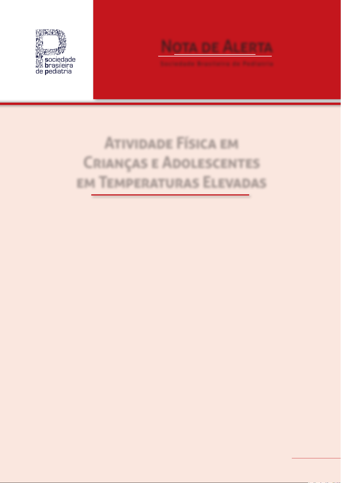 1 Atividade Física em Crianças e Adolescentes em Temperaturas Elevadas Nº 145, 05 de Abril de 2024 As recorrentes ondas de calor observadas em todo mundo são uma ameaça para a saúde humana, sendo que as consequências podem ser exacerbadas quando a alta tempera- tura ambiental se soma com o calor produzido pela contração muscular dos esforços físicos. Este documento visa alertar sobre os cuidados para a atividade física segura em con- dições de calor, identificando os riscos assim como o tratamento e a prevenção das complicações decorrentes do aumento da temperatura corporal. A hipertermia corporal associada ao esforço físico prejudica a performance e vários componentes da saúde. O estresse térmico refere-se às condições ambientais (externas), enquanto que a reação térmica é o quadro das respostas no organismo (internas). A magnitude do estresse térmico provocado pelo calor é determinada conforme o aumento de três Nota de Alerta S o c i e d a d e B r a s i l e i r a d e P e d i a t r i a Grupo de Trabalho em Atividade Física (gestão 2022-2024) Coordenadores: Ricardo do Rego Barros (Relator), Luciana Rodrigues Silva Membros do GT: Silvana Vertematti, Carlos Eduardo Reis da Silva (Relator), Liane Catani, Getúlio Bernardo Morato Filho, Alex Pinheiro Gordia, Teresa Maria Bianchini de Quadros, Mauro Virgílio Gomes de Barros, Dirceu Solé Relatores: Flavia Meyer, Denise Derani Gomes, Luciano Prado ATIVIDADE FÍSICA EM CRIANÇAS E ADOLESCENTES EM TEMPERATURAS ELEVADAS 2 componentes: temperatura do ar, umidade e radiação solar. O Brasil possui diversida- de climática; predominando o tropical com altas temperaturas que podem ultrapassar 35°C e se estender além dos meses de verão. Profissionais da Saúde que atendem grupos pediátricos devem compreender os mecanismos dos distúrbios causados pela hipertermia e as situações em que as respos- tas termorregulatórias podem falhar por não equilibrar o calor corporal acumulado com o calor dissipado. O Quadro abaixo sumariza os fatores de risco intrínsecos, extrínsecos (ambientais) e os relacionados ao tipo de esforço/esporte. Quadro. Fatores individuais, ambientais e dos exercícios que aumentam o risco de distúrbios relacionados ao exercício no calor Individuais • Genética • Não aclimatização ao calor • Falta de condicionamento aeróbico (sedentarismo) • Obesidade • Desidratação (por acesso insuficiente a líquidos e oportunidades de hidratação) • Doenças agudas, principalmente infecciosas ou inflamatórias (respiratórias ou gastrintestinais) • Doenças crônicas (exemplo: traço falciforme, fibrose cística) • Pouco sono ou descanso • Medicamentos (diuréticos, beta-bloqueadores, anticolinérgicos, efedrina) • Quadro de síncope neurocardiogênica comprovada Ambientais • Aumento da temperatura, umidade e radiação solar • Tipo de roupas, uniformes ou equipamentos que contribuem para a retenção excessiva de calor Exercícios/Esportes • Atividades prolongadas (> 2 horas) ou de alta intensidade • Pouco tempo de recuperação entre esforços repetidos • Vários jogos de torneios (competições) no mesmo dia • Modalidades esportivas que enfatizam limites de peso (massa corporal) por categoria (lutas marciais) ou baixo peso por razões de desempenho (ginástica olímpica/artística, balé) 3 Grupo de Trabalho em Atividade Física (gestão 2022-2024) • Sociedade Brasileira de Pediatria A gravidade das complicações da reação térmica no organismo apresenta uma susceti- bilidade individual correspondente principalmente ao grau do aumento da temperatura corporal interna (ou core, do inglês), que a rigor é a temperatura no sangue e não a da pele. Em estudos científicos, que exigem segurança e precisão, são usados dispositivos (termômetros) mais indicativos da temperatura central tais como a temperatura retal, a gástrica ou a timpânica. Mas, na prática, como o tratamento deve ser imediato, convém assumir como um quadro de hipertermia a partir de indicadores como o tipo de esforço realizado combinado com o estresse térmico e as manifestações clínicas e comporta- mentais (sinais e sintomas). Isto porque geralmente há indisponibilidade de aferir “em campo” ou em ambulatório de atendimento - mesmo que indiretamente - a temperatura interna. Outro entrave no entendimento dos distúrbios provocados pelo calor refere-se à nomenclatura inconsistente para designar variações na apresentação do quadro clíni- co. Alguns termos tradicionalmente ou erroneamente traduzidos como “insolação”, “intermação” ou “golpe de calor” devem ser evitados, pois acabam confundindo a comunicação entre profissionais da saúde, da mídia e a comunidade. Então, convém primeiro identificar as complicações através dos sinais e sintomas para que o pronto atendimento seja efetivo no resfriamento da temperatura corporal e no suporte para os órgãos comprometidos. Durante as atividades e eventos esportivos é fundamental que os profissionais e res- ponsáveis pela criança/adolescente estejam aptos a identificar precocemente as mani- festações clínicas como o cansaço antecipado, queda da performance, cefaléia, mu- danças de comportamento, tonturas, mal estar, vermelhidão, sudorese intensa, rubor excessivo ou palidez. As cãibras ocorrem mais frequentemente em panturrilhas, po- dendo acometer abdomen, coxas e ombros, em intensidade variável, sendo comuns durante ou após a atividade física. Pacientes com cãibras de calor severas podem evoluir para espasmo muscular difuso e prolongado. O exantema relacionado ao calor apresenta-se como um eritema pruriginoso ma- culopapular em áreas cobertas por roupas, o que responde bem a anti histamínicos orais. Se tais sintomas são desprezados e o exercicio não for interrompido, o quadro pode se agravar para hipertermia severa, colapso pelo calor, sintomas neurológicos e até óbito. Sinais e sintomas 