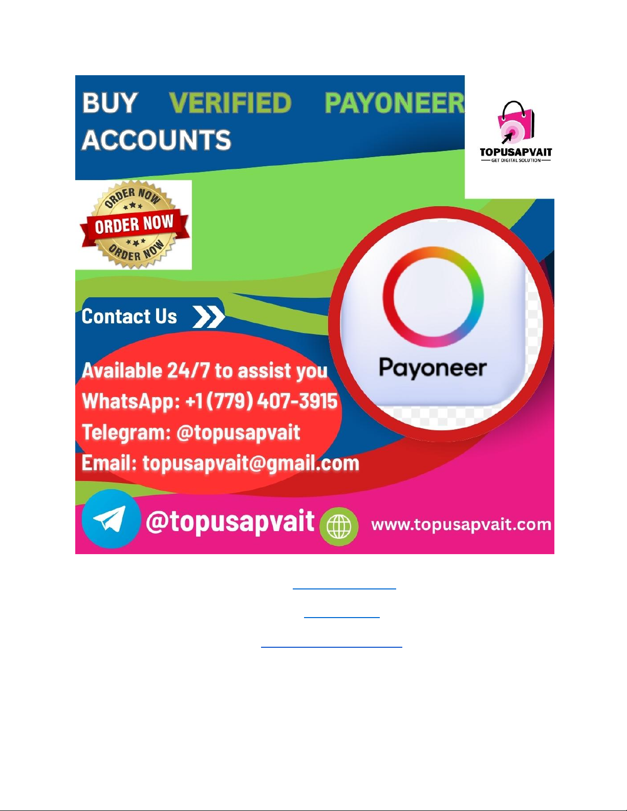 Available 24/7 to assist you WhatsApp: +1 (779) 407-3915 Telegram: @topusapvait Email: topusapvait1@gmail.com How To Buy,Verified Payoneer Accounts In 2025/26 https://wa.me/17794073915 http://t.me/topusapvait mailto:topusapvait1@gmail.com In 2025/26, Payoneer continues to be one of the most trusted global payment solutions for freelancers, digital marketers, eCommerce sellers, and international service providers. With its expanding features and new verification standards, many users look for faster ways to get started. However, it’s important to understand that buying pre-verified accounts is unsafe and violates Payoneer policies. Instead, the smart approach is to create and verify your own account while using reputable support services when needed. Setting up a Payoneer account today is simpler than ever. Users can register with basic personal information, provide accurate identification, and complete verification through Payoneer’s secure portal. This ensures the account remains fully compliant, protected, and eligible for future financial services like virtual bank accounts, USD/EUR receiving accounts, and international withdrawals. When looking for third-party guidance or Payoneer-related services, always choose platforms that offer legitimate help—such as account setup tutorials, compliance assistance, or customer-support navigation. A reliable service should never request your login details or offer “verified accounts,” which are often linked to fraud and can result in permanent loss of funds. To stay safe in 2025/26, verify that any website you use provides transparent information, clear pricing for advisory services, and strong customer reviews. Also ensure the service focuses on education and support—not selling financial accounts. By taking the proper approach, users can enjoy Payoneer’s global features securely and confidently. A correctly created and verified account protects your identity, ensures regulatory compliance, and helps you receive international payments without risk. If you'd like, I can also: ✅ Add SEO keywords ✅ Make it more promotional for your website ✅ Rewrite in a tone of your choice (formal, marketing, conversational, etc.) Available 24/7 to assist you WhatsApp: +1 (779) 407-3915 Telegram: @topusapvait Email: topusapvait1@gmail.com https://wa.me/17794073915 http://t.me/topusapvait