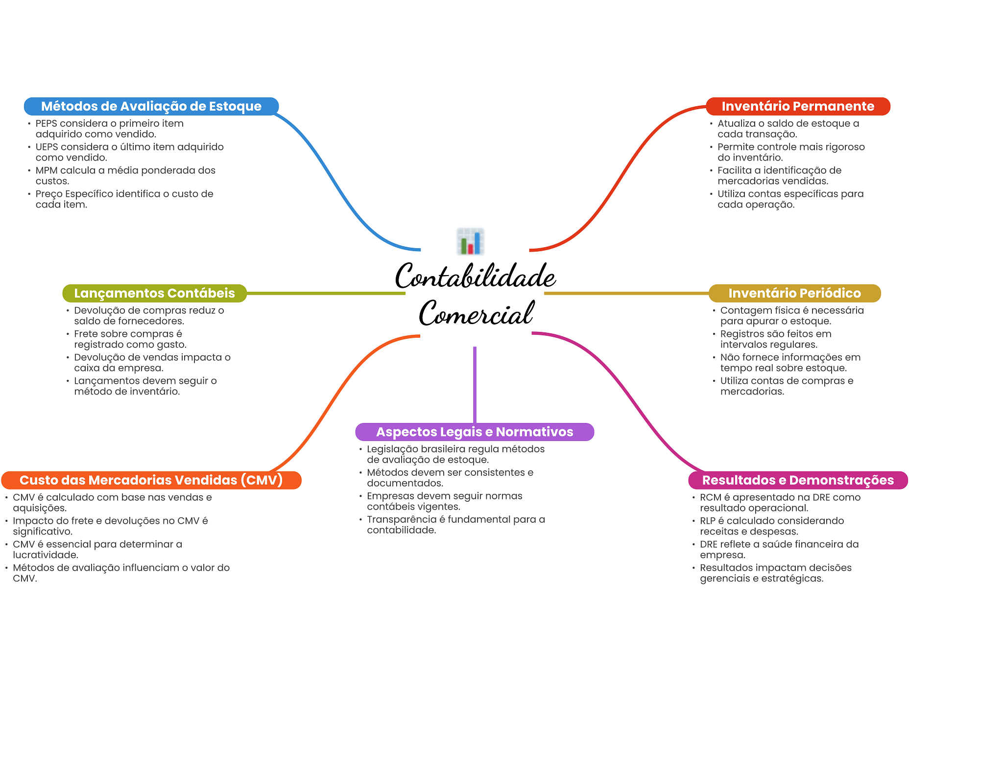 Métodos de Avaliação de Estoque Inventário Permanente PEPS considera o primeiro item Atualiza saldo de estoque a adquirido como vendido. cada transação. UEPS considera último item adquirido Permite controle mais rigoroso como vendido. do inventário. MPM calcula a média ponderada dos Facilita a identificação de custos. mercadorias vendidas. Preço Específico identifica custo de Utiliza contas específicas para cada item. cada operação. Contabilidade Lançamentos Contábeis Inventário Periódico Devolução de compras reduz Comercial Contagem física é necessária saldo de fornecedores. para apurar estoque. Frete sobre compras é Registros são feitos em registrado como gasto. intervalos regulares. Devolução de vendas impacta Não fornece informações em caixa da empresa. tempo real sobre estoque. Lançamentos devem seguir Utiliza contas de compras e método de inventário. mercadorias. Aspectos Legais e Normativos Legislação brasileira regula métodos de avaliação de estoque. Métodos devem ser consistentes e Custo das Mercadorias Vendidas documentados. Resultados e Demonstrações CMV é calculado com base nas vendas e Empresas devem seguir normas RCM é apresentado na DRE como aquisições. contábeis vigentes. resultado operacional. Impacto do frete e devoluções no CMV é Transparência é fundamental para a RLP é calculado considerando significativo. contabilidade. receitas e despesas. CMV é essencial para determinar a DRE reflete a saúde financeira da lucratividade. empresa. Métodos de avaliação influenciam valor do Resultados impactam decisões CMV. gerenciais e estratégicas.