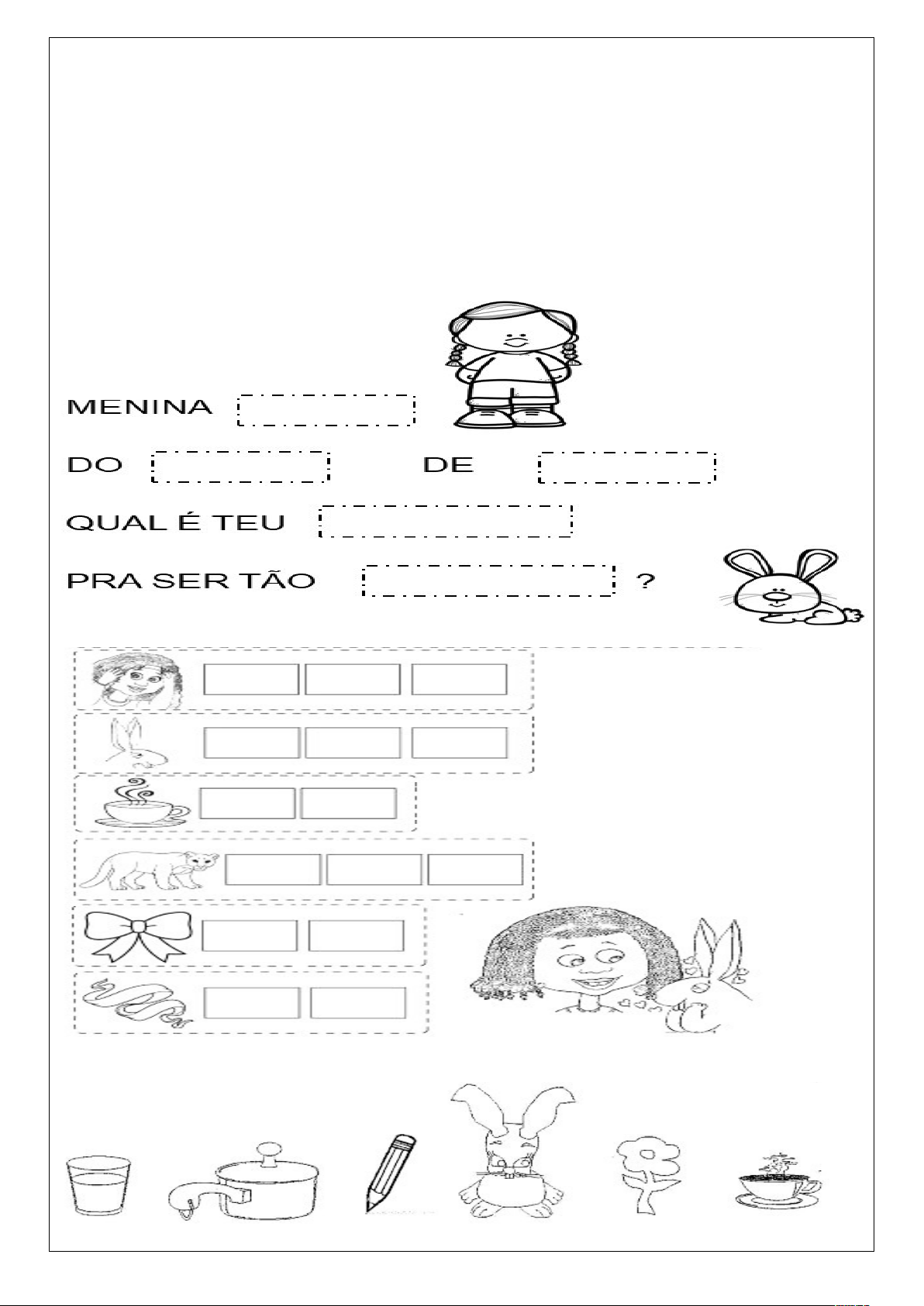 CARUARU, __________ DE ____________________________________ DE 2024. ESCOLA:____________________________________________________________________________________________ NOME:_____________________________________________________________________________________________ PROFESSORA:______________________________________________ TURMA:_________________________________ ATIVIDADE 1-COMPLETE A FRASE COM AS PALAVRAS QUE ESTÃO FALTANDO: 2-ESCREVA A PALAVRA CORRESPONDENTE A IMAGEM INSERINDO A SÍLABA EM CADA QUADRINHO: 3-PINTE AS IMAGENS QUE SE INICIAM COM A LETRA “C”: image1.jpeg image2.jpeg image3.jpeg