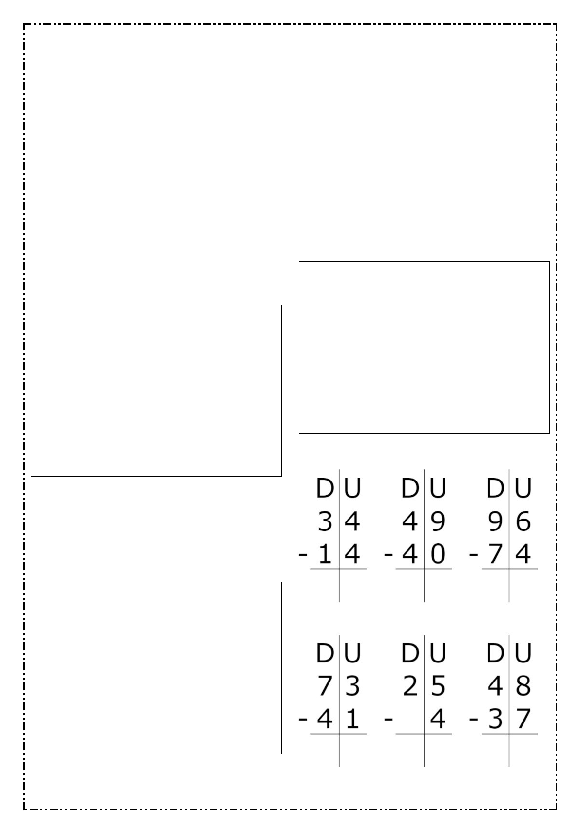 ESCOLA _________________________________DATA:_____/_____/_____ PROF:_______________________________________TURMA:___________ NOME:________________________________________________________ ATIVIDADE DE SUBTRAÇÃO www.acessaber.com.br 1) UM BARCO PODE TRANSPORTAR 57 PESSOAS E JÁ FORAM VENDIDOS 25 BILHETES. QUANTAS PESSOAS AINDA FALTAM PARA COMPLETAR A LOTAÇÃO MÁXIMA? R: 2) DUAS PESSOAS JUNTAS TÊM 68 REAIS, A PRIMEIRA TEM 20 REAIS. QUANTO TEM A SEGUNDA? R: 3) QUANDO HELENA NASCEU, SEU PAI TINHA 26 ANOS. QUE IDADE ELA TERÁ QUANDO SEU PAI TIVER 58 ANOS? R: 4) RESOLVA AS CONTINHAS ABAIXO: image1.jpeg www.acessaber.com.br ESCOLA _________________________________DATA:_____/_____/_____ PROF:_______________________________________TURMA:___________ NOME:________________________________________________________ ATIVIDADE DE SUBTRA ÇÃ O 1) UM BARCO PODE TRANSPORTAR 57 PESSOAS E J Á FORAM VENDIDOS 25 BILHETES. QUANTAS PESSOAS AINDA FALTAM PARA COMPLETAR A LOTA ÇÃ O M Á XIMA? R: 2) DUAS PESSOAS JUNTAS T Ê M 68 REAIS, A PRIMEIRA TEM 20 REAIS. QUANTO TEM A SEGUNDA? R: 3) QUANDO HELENA NASCEU, SEU PAI TINHA 26 ANOS. QUE IDADE ELA TER Á QUANDO SEU PAI TIVER 58 ANOS? R: 4) RESOLVA AS CONTINHAS ABAIXO: