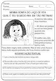 Data: / / Aluno: MENNA BONITA DO DE FITA QUAL E TEU SEGREDO PRA SER TAO PRETINHA? A não deve ser porque eu no quando coelho uma de tinto tomou banho Ficou bem todo contente. Mas uma todo branco TEXTUAL trecho do e De treche menino 0 motivo de ser que 0 como Para qual pretinha?