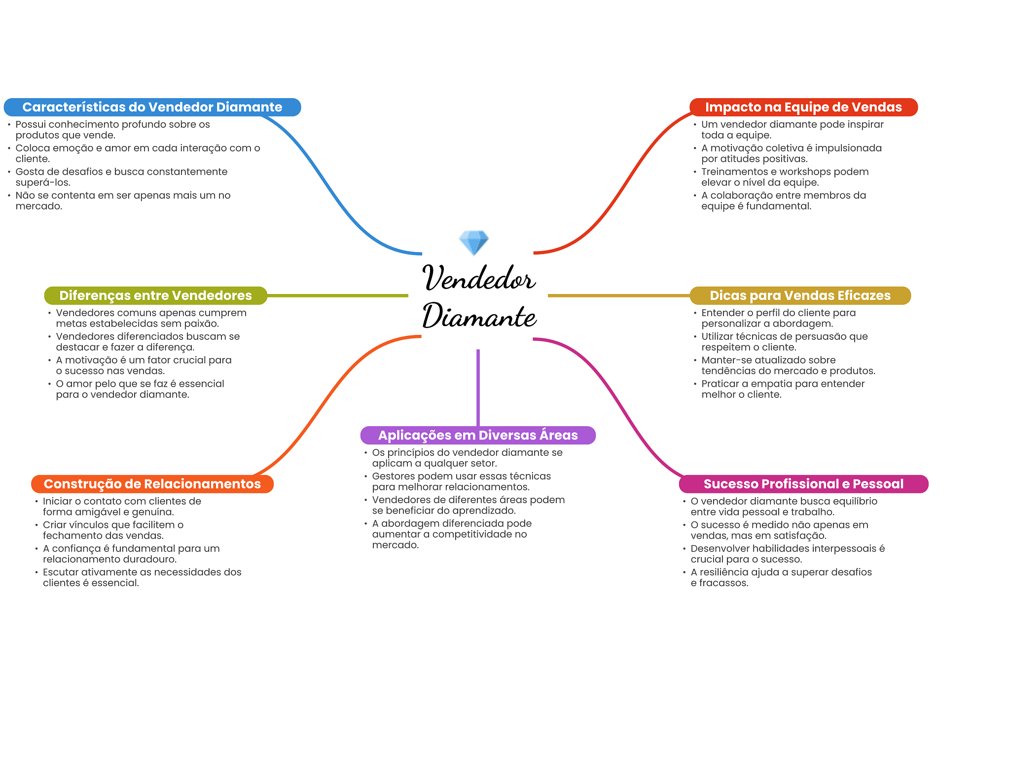 Características do Vendedor Diamante Impacto na Equipe de Vendas Possui conhecimento profundo sobre OS Um vendedor diamante pode inspirar produtos que vende. toda a equipe. Coloca emoção e amor em cada interação com A motivação coletiva é impulsionada cliente. por atitudes positivas. Gosta de desafios e busca constantemente Treinamentos e workshops podem superá-los. elevar nível da equipe. Não se contenta em ser apenas mais um no A colaboração entre membros da mercado. equipe é fundamental. Vendedor Diferenças entre Vendedores Dicas para Vendas Eficazes Vendedores comuns apenas cumprem Diamante Entender perfil do cliente para metas estabelecidas sem paixão. personalizar a abordagem. Vendedores diferenciados buscam se Utilizar técnicas de persuasão que destacar e fazer a diferença. respeitem O cliente. A motivação é um fator crucial para Manter-se atualizado sobre sucesso nas vendas. tendências do mercado e produtos. amor pelo que se faz é essencial Praticar a empatia para entender para O vendedor diamante. melhor cliente. Aplicações em Diversas Áreas Os princípios do vendedor diamante se aplicam a qualquer setor. Gestores podem usar essas técnicas Construção de Relacionamentos para melhorar relacionamentos. Sucesso Profissional e Pessoal Iniciar contato com clientes de Vendedores de diferentes áreas podem O vendedor diamante busca equilíbrio forma amigável e genuína. se beneficiar do aprendizado. entre vida pessoal e trabalho. Criar vínculos que facilitem A abordagem diferenciada pode O sucesso é medido não apenas em fechamento das vendas. aumentar a competitividade no vendas, mas em satisfação. A confiança é fundamental para um mercado. Desenvolver habilidades interpessoais é relacionamento duradouro. crucial para O sucesso. Escutar ativamente as necessidades dos A resiliência ajuda a superar desafios clientes é essencial. e fracassos.