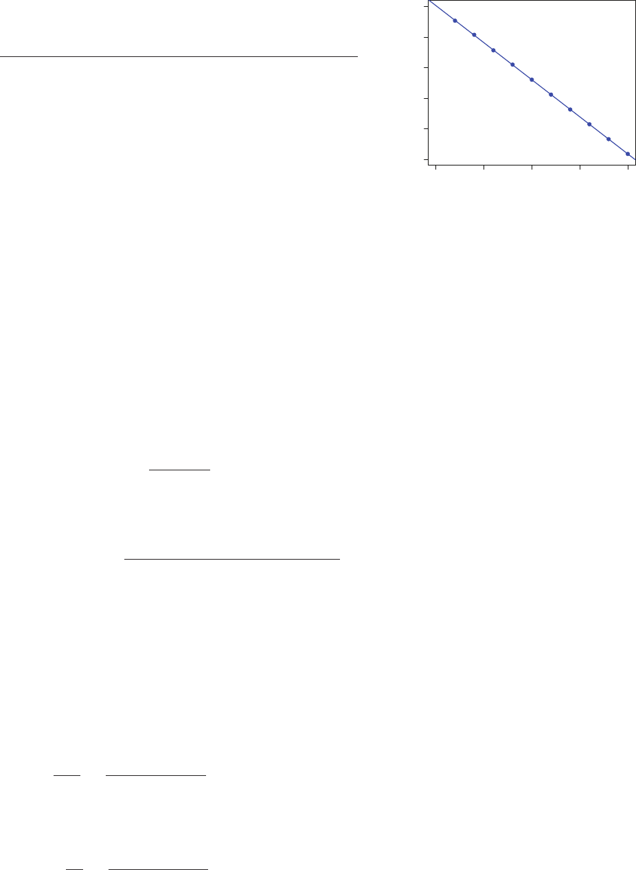 219Chapter 13 Kinetic Methods 6. Substituting the sample’s rate of 6.84×10–5 µmol mL–1s–1 into the calibration equation gives the volume as . . . V 3 485 10 6 84 10 2 7 10 µmol mL s µmol mL s µmol mL s 5 5 7 21 1 1 1 1 1 1 1 # # # = - - - - - - - - - - - - - .V 1 95 mL= his is the volume of the standard enzyme that has the same amount of enzyme as is in the 10.00 mL sample; thus, the concentration of enzyme in the sample is approximately 5× more dilute than the con- centration of enzyme in the standard. 7. For a irst-order reaction, a plot of ln[A]t versus time gives a straight line with a slope equal to –k and a y-intercept equal to ln[A]0. Figure SM13.3 shows the data and the regression line, for which the equa- tion is [ ] . ( . )ln A t0 4069 0 04862 st 1 = - - From the slope, we know that the reaction’s rate constant is 0.0486 s–1. Using the y-intercept, we know that ln[A]0 is 0.4069, which makes the initial concentration of A equal to 1.50 mM. 8. Under these conditions—a concentration of acetylcholine that is sig- niicantly smaller than the constant, Km—we can write the Michae- lis-Menton equation as [ ] [ ] R K k E S m 2 0 = where [E]0 is the concentration of enzyme and [S] is the concentra- tion of the substrate acetylcholine; substituting in known values [ ] . ( . ) S 12 33 9 10 1 4 10 10 Ms M s )(6.61 10 M 5 6 1 4 1 7 # # # # = - - - - - and solving gives the concentration of acetylcholine as 1.2×10–7 M. 9. Under these conditions—a concentration of fumarate that is sig- niicantly greater than the constant, Km—we can write the Michae- lis-Menton equation as [ ]R k E2 0= where [E]0 is the concentration of enzyme. Using the rate and con- centration of enzyme for the standard, the value of k2 is [ ] . . mink E R 0 1 13 3350 µM 2.00 µM min 2 0 1 1 = = = - - Using this value for k2 and the rate for the sample, we ind that the enzyme’s concentration in the sample is [ ] . . . min E k R 13 33 0 0 1 15 µM min 863 µM0 2 1 1 = = =- - 0 5 10 15 20 -0 .6 -0 .4 -0 .2 0 .0 0 .2 0 .4 time (s) ln [A ] t Figure SM13.3 Linearization of the data from Problem 6 for a reaction that is pseu- do-irst order in the analyte.