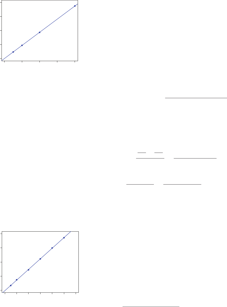218 Solutions Manual for Analytical Chemistry 2.1 A b [I ]t t2f= Substituting this equation back into the previous equation gives ( ) [ ] [ ]A b e K1H O H Ot k t1 0 2 02 2 2f= - = - - l^ h where K is equal to ( )b e1 k t1f - - - l^ h . Using the data for the external standards gives the calibration curve shown in Figure SM13.1, the equation for which is . .A C0 002 2 336 10 µMt 13 H O2 2#= + - - Substituting in the sample’s absorbance of 0.669 gives the concentra- tion of H2O2 as 286 µM. 4. For a two-point ixed-time method, we use equation 13.18 e e [H CrO ] [H CrO ] [H CrO ] k t k t t t 2 4 0 2 4 2 4 1 2 1 2 = - - - -l l From Beer’s law, we know that [ ] [ ]A b A bH CrO H CrOt t t t2 4 2 41 1 2 2f f= = Solving these two equations for the concentration of chromic acid at times t1 and t2, and substituting back gives ( ) e e b A b A e e b A A K A A[H CrO ] k t k t t t k t k t t t t t 1 2 4 0 1 2 1 2 1 2 1 2 1 2 f f f = - - = - - = -- - - - - l l l l ^ ^h h Using the data for the external standard, we ind that K A A [H CrO ] 0.855 0.709 5.1 10 M 3.49 10 M t t 2 4 0 4 3 1 2 # #= - = - = - -^ h he concentration of chromic acid in the sample, therefore, is ( . . ) . K A A 0 883 0 706 6 2 10 [H CrO ] 3.49 10 M M t t 4 2 4 0 3 1 2 # # = - = - = - - ^ h 5. For a variable time kinetic method, there is an inverse relationship be- tween the elapsed time, Dt, and the concentration of glucose. Figure SM13.2 shows the resulting calibration data and calibration curve, for which the equation is ( )t C6.30 10 s 1.50 10 s ppm1 4 1 3 1 1 glucose# #D =- + - - - - - - where Dt for each standard is the average of the three measurements. Substituting in the sample’s Dt of 34.6 s, or a (Dt)–1 of 0.02890 s–1, gives the concentration of glucose as 19.7 ppm for the sample. he relative error in the analysis is 20.0 ppm 19.7 ppm 20.0 ppm 100 1.5% error# - =- 0 200 400 600 800 0 .0 0 .5 1 .0 1 .5 2 .0 [H2O2] (µM) a b so rb a n ce Figure SM13.1 Calibration data (blue dots) and calibration curve (blue line) for the data in Problem 3. Figure SM13.2 Calibration data (blue dots) and calibration curve (blue line) for the data in Problem 5. 0 10 20 30 40 50 60 0 .0 0 0 .0 2 0 .0 4 0 .0 6 0 .0 8 [glucose] (ppm) (∆ t) – 1 ( s– 1 )