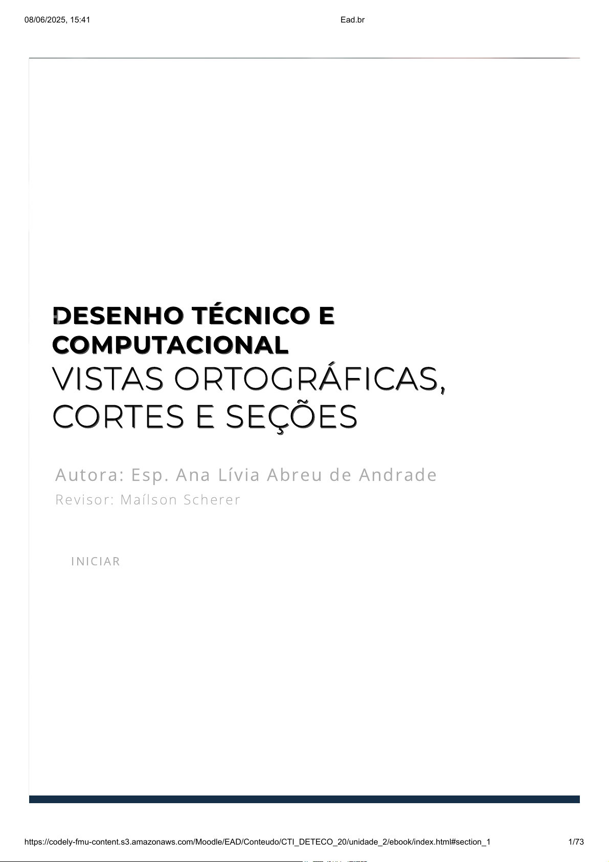 DESENHO TÉCNICO EDESENHO TÉCNICO E COMPUTACIONALCOMPUTACIONAL VISTAS ORTOGRÁFICAS,VISTAS ORTOGRÁFICAS, CORTES E SEÇÕESCORTES E SEÇÕES Autora: Esp. Ana Lívia Abreu de Andrade Revisor : Maí lson Scherer IN IC IAR 08/06/2025, 15:41 Ead.br https://codely-fmu-content.s3.amazonaws.com/Moodle/EAD/Conteudo/CTI_DETECO_20/unidade_2/ebook/index.html#section_1 1/73 introdução Introdução Nesta unidade, abordaremos temas importantes para o desenho técnico como: Introdução à Geometria descritiva, onde conheceremos a geometria em três dimensões; o Sistema de Projeção, seus elementos e como ele está presente no nosso dia a dia; veremos o Método da Dupla Projeção de Monge, e sua importância para a configuração dos desenhos técnicos atuais; as Vistas Ortográficas, suas características e representações; Cortes e Seções, como devem ser executados e sua importância para a compreensão do desenho. A partir dessas informações você estará preparado(a) para executar e interpretar desenhos técnicos de peças e equipamentos, elaborados conforme as prescrições das normas técnicas brasileiras. 08/06/2025, 15:41 Ead.br https://codely-fmu-content.s3.amazonaws.com/Moodle/EAD/Conteudo/CTI_DETECO_20/unidade_2/ebook/index.html#section_1 2/73 Geometria vem das palavras em grego: Geo = Terra e Metria = Medida, ou seja, Medida da terra. Trata-se de um ramo da Matemática que investiga as formas e as dimensões das figuras que existem na natureza. Acredita-se que os estudos em geometria se iniciaram com os Elementos de Euclides (330 A.C. – 260 a.C.), nascido na Síria, estudante em Atenas, é reconhecido historicamente como um dos matemáticos mais importantes, embora pouco se tenha conhecimento sobre sua vida. Sabe-se que ensinou Matemática na escola criada por Ptolomeu Soter, em Alexandria, e se tornou notável pela forma brilhante de ensinar geometria e álgebra, sempre atraindo para suas aulas um grande número de discípulos. (MEDEIROS, 2019, on-line ). Geometria DescritivaGeometria Descritiva 08/06/2025, 15:41 Ead.br https://codely-fmu-content.s3.amazonaws.com/Moodle/EAD/Conteudo/CTI_DETECO_20/unidade_2/ebook/index.html#section_1 3/73 Os conceitos da Geometria Descritiva constituem a base do Desenho Técnico, onde se incluem o Desenho Arquitetônico, o Desenho Mecânico, o Desenho Elétrico, entre outros. Ainda que esses conceitos já fossem abordados de forma intuitiva desde a Antiguidade (como vemos nos desenhos de Leonardo Da Vinci, com suas geniais invenções, porém sem normas ou escalas e cotas), as bases da Geometria Descritiva foram criadas no final do século 18 pelo francês Gaspard Monge. Figura 2.1 - Euclides (300 AC) Fonte: Patrick Guenette / 123RF. 08/06/2025, 15:41 Ead.br https://codely-fmu-content.s3.amazonaws.com/Moodle/EAD/Conteudo/CTI_DETECO_20/unidade_2/ebook/index.html#section_1 4/73 Gaspard Monge foi um matemático, nascido em Beaune, 10 de maio de 1746 e falecido em Paris em 28 de julho de 1818, criador da geometria descritiva e da geometria diferencial. Ele serviu na área militar como ministro da Marinha, e esteve envolvido na reforma do sistema educacional francês, sendo um dos fundadores da École Polytechnique (Escola politécnica). Monge atuou na área acadêmica e militar, com estudos na área de defesa de fortificações, trazendo uma solução simples e eficaz usando não cálculos intermináveis de aritmética, mas a geometria como resposta. A Geometria Descritiva é o ramo da matemática aplicada que tem como objetivo o estudo de objetos tridimensionais mediante projeções desses sólidos em planos. Em Geometria, é comum utilizarmos os conceitos de forma e dimensão: Forma é o aspecto, ou configuração, de um determinado objeto (forma arredondada, elíptica, cilíndrica, retangular etc.), enquanto dimensão é a grandeza que caracteriza uma determinada medida desse objeto (largura, comprimento, altura, diâmetro etc.). Os elementos fundamentais da geometria são o ponto, a linha e o plano. Figuras 2.2 - Gaspar Monge (1746-1818) Fonte: Magnus Manske / Wikimedia Commons. 08/06/2025, 15:41 Ead.br https://codely-fmu-content.s3.amazonaws.com/Moodle/EAD/Conteudo/CTI_DETECO_20/unidade_2/ebook/index.html#section_1 5/73 Ponto O ponto é o elemento mais simples da geometria, não possui forma e nem dimensão. Porém, é a partir do ponto que se é possível obter outras formas geométricas. Segundo Kandinsky (1997, p. 35), artista plástico russo renomado: O ponto geométrico é um ser invisível. Deve, portanto, ser definido como imaterial. Do ponto de vista material, o ponto compara-se ao zero. Mas este zero esconde diferentes propriedades “humanas”. Segundo a nossa concepção, este zero – o ponto geométrico – evoca o laconismo absoluto, ou seja, a maior retenção mas, no entanto, fala. Assim o ponto geométrico é, segundo a nossa concepção, a última e única união do silêncio e da palavra. Eis porque o ponto geométrico encontrou a sua forma material em primeiro lugar na escrita – ele pertence à linguagem e significa o silêncio. Linha Figuras 2.3 - Ponto gráfico x Ponto geométrico Fonte: Elaborada pela autora. 08/06/2025, 15:41 Ead.br https://codely-fmu-content.s3.amazonaws.com/Moodle/EAD/Conteudo/CTI_DETECO_20/unidade_2/ebook/index.html#section_1 6/73 A linha pode ser definida como uma uma série de pontos enfileirados no espaço, formando um traço único e contínuo. A linha é um elemento geométrico que possui apenas uma dimensão: o comprimento. Kandinsky (1997, p. 61) diz ainda: A linha geométrica é um ser invisível. É o rastro do ponto em movimento, logo seu produto. Ela nasceu do movimento – e isso pela aniquilação da imobilidade suprema do ponto. Produz-se aqui o salto do estático para o dinâmico. As linhas podem variar quanto à forma, posição, direção e traçados. Quanto à forma a linha pode ser retilínea, curva, ondulada, mista, quebrada, fechada etc. Figuras 2.4 - Pontos formando linhas Fo