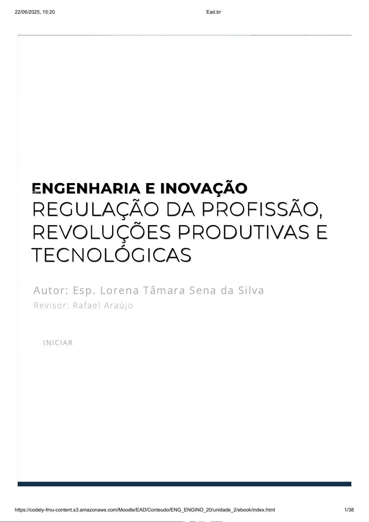 ENGENHARIA E INOVAÇÃOENGENHARIA E INOVAÇÃO REGULAÇÃO DA PROFISSÃO,REGULAÇÃO DA PROFISSÃO, REVOLUÇÕES PRODUTIVAS EREVOLUÇÕES PRODUTIVAS E TECNOLÓGICASTECNOLÓGICAS Autor: Esp. Lorena Tâmara Sena da Silva Revisor : Rafae l Araújo IN IC IAR 22/06/2025, 15:20 Ead.br https://codely-fmu-content.s3.amazonaws.com/Moodle/EAD/Conteudo/ENG_ENGINO_20/unidade_2/ebook/index.html 1/38 introdução Introdução Olá, seja bem-vindo a mais uma unidade da disciplina de Engenharia e Inovação. Você conhece as principais entidades que regem a atuação profissional dos(as) engenheiros(as)? Como elas podem atuar em defesa da classe, como são organizadas e que atribuições descrevem? Esse conhecimento é essencial para projetar sua carreira! Com o intuito de prepará-los da forma mais competitiva, este será o conteúdo de parte desta unidade: a explanação sobre o sistema CONFEA/CREA. Posteriormente, continuando com o objetivo inicial da disciplina, de contextualizar o panorama tecnológico e econômico que o engenheiro(a) está inserido, apresentaremos a evolução dos sistemas produtivos e as revoluções tecnológicas: do artesanato ao Volvismo, da Primeira Revolução Industrial à atual indústria 4.0. 22/06/2025, 15:20 Ead.br https://codely-fmu-content.s3.amazonaws.com/Moodle/EAD/Conteudo/ENG_ENGINO_20/unidade_2/ebook/index.html 2/38 Toda atuação profissional, de qualquer área, segue uma série de regulamentações estabelecidas pelos órgãos oficiais. Esses órgãos, além de regulamentarem, possuem uma série de leis, regimentos e outros documentos que listam direitos, deveres e atribuições para toda a profissão e por modalidade. Conhecer profundamente o conselho profissional é importante, não apenas por questões de responsabilidade profissional, ética e social, mas também para o planejamento de carreira, na medida em que descreve os escopos de atividades que cada tipo de engenharia está apto e capaz de atuar. Histórico A primeira menção regulamentada do exercício da prática profissional de engenharia data de 1933, remete ao Decreto Federal nº 23.196 (BRASIL, 1933a), que regulava o exercício da profissional do agrônomo ou engenheiro agrônomo. Regulamentação deRegulamentação de CarreiraCarreira 22/06/2025, 15:20 Ead.br https://codely-fmu-content.s3.amazonaws.com/Moodle/EAD/Conteudo/ENG_ENGINO_20/unidade_2/ebook/index.html 3/38 Logo em seguida, no mesmo ano, surgia o Decreto Federal nº 23.569 (BRASIL, 1933b), que regulamentou as profissões de Engenharia, Arquitetura e Agrimensura, criando o Conselho Federal de Engenharia, Arquitetura e Agrimensura (CONFEA), bem como os Conselhos Regionais (CREA). Vale ressalvar que décadas depois, em 1966, a Lei nº 5.194 (BRASIL, 1966) revogou os decretos anteriores, regulando o exercício das profissões de engenheiro, arquiteto e engenheiro agrônomo. A lei conferiu maior autonomia ao Confea e incluiu a expressão Agronomia nas denominações dos conselhos. Fato importante e relativamente recente é que o exercício da Arquitetura e Urbanismo foi separado em 2010. É de responsabilidade de outros conselhos, pela Lei nº 12.378: o Conselho de Arquitetura e Urbanismo do Brasil (CAU/BR) e os Conselhos de Arquitetura e Urbanismo dos Estados e do Distrito Federal (BRASIL, 2010). Por fim, a sigla CONFEA, atualmente, significa Conselho Federal de Engenharia e Agronomia, e CREA, Conselho Regionais de Engenharia e Agronomia. Componentes e Objetivos Segundo Colla e Reinehr (2013), são componentes do sistema CONFEA/CREA: 1. Entidades associativas: organizações de direito privado e sem fins lucrativos, que congregam profissionais afins e em torno de interesses comuns. 2. Entidades sindicais: entidades de direito privado que representam uma determinada categoria profissional (engenheiros, comerciários, professores, dentre outros) ou trabalhadores de um ramo de produção (alimentício, metalúrgico, químico, dentre outros), que têm como objetivo defender e reivindicar os interesses trabalhistas. 3. Instituições de ensino: instituições responsáveis pela formação profissional, pela geração de tecnologias, por meio da pesquisa, e pela integração à 22/06/2025, 15:20 Ead.br https://codely-fmu-content.s3.amazonaws.com/Moodle/EAD/Conteudo/ENG_ENGINO_20/unidade_2/ebook/index.html 4/38 comunidade por meio da extensão. O sistema CONFEA/CREA é criado pelo Decreto Federal nº 23.569 (BRASIL, 1933b) e regula o exercício das profissões de engenharia, de arquitetura e de agrimensura. Ao Conselho Federal de Engenharia e Agronomia (CONFEA) cabe: discutir e ratificar decisões e resoluções dos CREAs (conselhos regionais); definir atribuições e a verificação/fiscalização do exercício dos(as) profissionais vinculados; ser a última instância para recursos em processos. Já os Conselhos Regionais de Engenharia e Agronomia (CREA), são autarquias subordinadas às regulamentações do CONFEA (BRASIL, 1933b), que têm como objetivos, dentre outros: atuar em defesa da comunidade, ou seja, zelar pelos interesses sociais e humanos; fiscalização, orientação, controle e aprimoramento do exercício do profissional; reprimir a atividade de pessoas físicas e jurídicas não habilitadas ou que ultrapassem as suas atribuições. Registro Por se tratarem de profissões regulamentadas, ao se graduar em um dos cursos cadastrados e regulamentados pelo CREA, como Engenharia, Agronomia, Geologia, Geografia e Meteorologia, o desempenho de qualquer atividade será validada pelo registro e obtenção da carteira do CREA/ESTADO, com a qual o(a) profissional pretende desempenhar suas atividades e realizar o pagamento da anuidade. Caso um(a) profissional sem habilitação e registro exercer atividade delimitada pelo conselho de classe, haverá enquadramento no artigo 6º da Lei 5.194/66, por exercício ilegal da profissão (CREA, 2019). 22/06/2025, 15:20 Ead.br https://codely-fmu-content.s3.amazonaws.com/Moodle/EAD/Conteudo/ENG_ENGINO_20