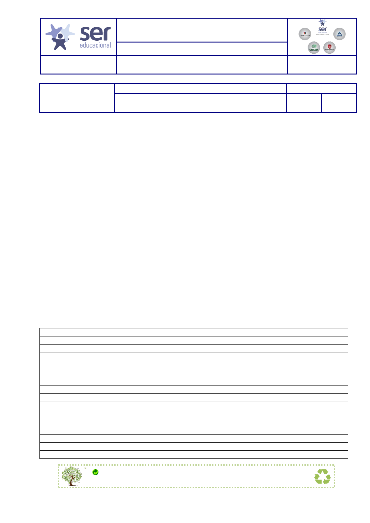 PLANOS DE ENSINO MODALIDADE: PRESENCIAL DATA: 22/04/2019 CURSO: PEDAGOGIA CÓDIGO: GRA-PLE-0235-C 1 Quando impresso este documento passa a ser cópia não controlada. Antes de imprimir, pense na Natureza. PERÍODO 1º DISCIPLINA CARGA HORÁRIA COMUNICAÇÃO E EXPRESSÃO Teórica: 60 HS Prática: 0 HS EMENTA: As especificidades da linguagem oral e escrita. A linguagem e a diversidade linguística. A leitura e a interpretação de textos orais e escritos. A elaboração de respostas subjetivas a partir de textos diversos. A leitura e a produção textual de gêneros acadêmicos específicos da área. A utilização do vocabulário adequado para a área focalizada. Tópicos gerais sobre argumentação e persuasão em textos orais e escritos. Revisão de tópicos gramaticais peculiares (acentuação gráfica, pontuação, colocação pronominal e novas regras ortográficas). COMPETÊNCIAS ESPECÍFICAS: • Desenvolver no aluno a capacidade de expressão escrita por meio da prática de produção textual; • Analisar e interpretar textos, temas e situações do cotidiano de forma crítica, estabelecendo sua relação com a realidade e os processos de comunicação; • Produzir textos com coerência, coesão e adequação de linguagem, com consciência de sua estrutura e articulação para os diversos meios de comunicação; • Produzir textos com estruturação específica identificando as diferenças entre argumentação e persuasão, fato e opinião, levando em conta o contexto de comunicação social; • Reconhecer e valorizar as variedades da língua portuguesa. CONTEÚDO PROGRAMÁTICO: UNIDADE I – COMUNICAÇÃO ORAL E ESCRITA PROCESSOS DE COMUNICAÇÃO; COMUNICAÇÃO ORAL; COMUNICAÇÃO ESCRITA; COMUNICAÇÃO NÃO-VERBAL; LEITURA E INTERPRETAÇÃO DE TEXTOS; ELABORAÇÃO DE RESPOSTAS SUJBETIVAS; COMUNICAÇÃO, EXPRESSÃO E DIVERSIDADE LINGUÏSTICA. UNIDADE II – A PRODUÇÃO TEXTUAL DE GÊNEROS ACADÊMICOS ESPECÍFICOS DA ÁREA ESTILO, COMPOSIÇÃO E TEMA; COESÃO TEXTUAL; COERÊNCIA TEXTUAL; RELAÇÕES COESIVAS E COERENTES EM DIFERENTES SITUAÇÕES; PRODUÇÃO DE GÊNEROS TEXTUAIS ESPECÍFICOS CONTEXTUALIZADOS; TIPOS DE ARGUMENTO; VOCABULÁRIO ADEQUADO AO CURSO (ESPECÍFICO); D oc um en to e nt re gu e ao a lu no v ia s is te m a às 0 7: 21 :3 0 do d ia 2 5/ 09 /2 02 5 (h or a e da ta d e R ec ife ). C ód ig o de a ut en tic aç ão : 8 E 4D .D 3D 3. 77 86 .8 6F A . A a ut en tic id ad e de st a de cl ar aç ão p od er á se r co nf irm ad a no e nd er eç o ht tp s: //a ut en tic a. se re du c. co m / PLANOS DE ENSINO MODALIDADE: PRESENCIAL DATA: 22/04/2019 CURSO: PEDAGOGIA CÓDIGO: GRA-PLE-0235-C 2 Quando impresso este documento passa a ser cópia não controlada. Antes de imprimir, pense na Natureza. FERRAMENTAS DA PRODUÇÃO DE TEXTO; PERSUASÃO E ARGUMENTAÇÃO; UNIDADE III – REVISÃO GRAMATICAL TÓPICOS GRAMATICAIS PECULIARES. METODOLOGIA DO ENSINO: A) Metodologia do ensino e aprendizagem: A disciplina, dependendo de sua natureza, pode ser ministrada através de conteúdos teóricos, conteúdos práticos, aulas de campo em instituições específicas e ainda pode utilizar recursos de exposições dialogadas, grupos de discussão, seminários, debates competitivos, apresentação e discussão de filmes e casos práticos, onde os conteúdos podem ser trabalhados mais dinamicamente, estimulando o senso crítico e científico dos alunos. B) Recursos audiovisuais: ( X ) Lousa branca; ( ) Laboratório de informática; ( X ) Dispositivo Multimídia; C) Metodologia de Avaliação: No decorrer de cada período letivo são desenvolvidas 02 (duas) avaliações por disciplina, para efeito do cálculo da média parcial. A média parcial é calculada pela média aritmética das duas avaliações efetuadas. O aluno que alcançar a média parcial maior ou igual a 7,0 (sete) é considerado aprovado. O aluno que não alcançar a média parcial faz em exame final onde precisa alcançar média final maior ou igual a 5,0. São aplicadas avaliações dos tipos: provas teóricas, provas práticas, seminários, trabalhos individuais ou em grupo e outras atividades em classe e extraclasse. O exame final é, obrigatoriamente, prova escrita. D oc um en to e nt re gu e ao a lu no v ia s is te m a às 0 7: 21 :3 0 do d ia 2 5/ 09 /2 02 5 (h or a e da ta d e R ec ife ). C ód ig o de a ut en tic aç ão : 8 E 4D .D 3D 3. 77 86 .8 6F A . A a ut en tic id ad e de st a de cl ar aç ão p od er á se r co nf irm ad a no e nd er eç o ht tp s: //a ut en tic a. se re du c. co m / PLANOS DE ENSINO MODALIDADE: PRESENCIAL DATA: 22/04/2019 CURSO: PEDAGOGIA CÓDIGO: GRA-PLE-0235-C 3 Quando impresso este documento passa a ser cópia não controlada. Antes de imprimir, pense na Natureza. PERÍODO 1º DISCIPLINA CARGA HORÁRIA ASPECTOS SÓCIOANTROPOLÓGICOS Teórica: 60 HS Prática: 0 HS EMENTA: A sociologia e antropologia como ciência. Aspectos conceituais da sociologia e antropologia. O surgimento da sociologia da educação. Teorias sociológicas e antropológicas clássicas. A educação como processo social e suas relações com a cultura e a aprendizagem de papéis sociais. Questões da sociologia e antropologia contemporâneas. As relações entre educação e sociedade: a natureza e as especificidades dos fenômenos sócio-antropológicos e suas relações com os fenômenos educacionais. Diversidade etno-cultural e educação: diferença e desigualdade. Educação, escola e multiculturalismo: a escola como espaço de socialização e de vivências socioculturais. COMPETÊNCIAS ESPECÍFICAS: • Atuar com ética e compromisso com vistas à construção de uma sociedade justa, equânime, igualitária; • Promover e facilitar relações de cooperação entre a instituição educativa, a família e a comunidade; • Identificar problemas socioculturais e educacionais com postura investigativa, integrativa e propositiva em face de realidades complexas, com vistas a contribuir para a superação de exclusõe