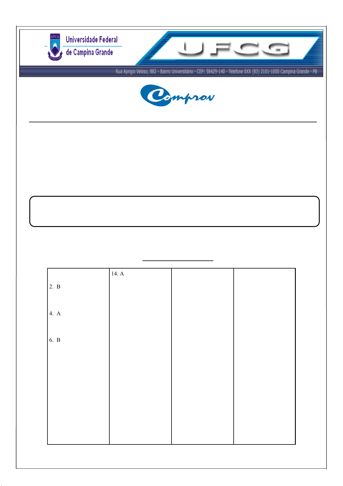 Clinica e Cirurgia de Grandes Animais PROCESSO SELETIVO PARA PÓS-GRADUAÇÃO Lato Sensu – RESIDÊNCIA MÉDICA VETERINÁRIA 27 de dezembro de 2013 Comissão de Processos Vestibulares 1. B 2. B 3. E 4. A 5. C 6. B 7. E 8. E 9. NULA 10. E 11. A 12. B 13. E 14. A 15. D 16. B 17. E 18. D 19. B 20. E 21. C 22. D 23. B 24. A 25. E 26. B 27. A 28. B 29. D 30. E 31. E 32. B 33. C 34. D 35. D 36. E 37. B 38. E 39. C 40. E 41. D 42. B 43. C 44. A 45. D 46. A 47. D 48. B 49. D 50. NULA GABARITO OFICIAL