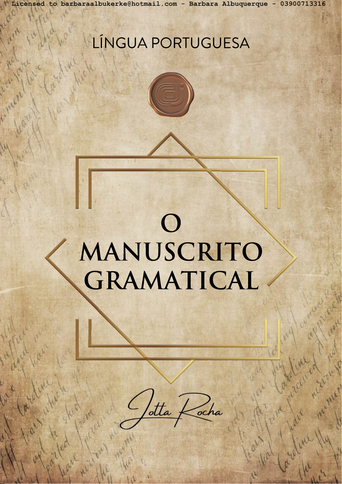 LÍNGUA PORTUGUESA O MANUSCRITO GRAMATICAL Licensed to barbaraalbukerke@hotmail.com - Barbara Albuquerque - 03900713316 O Manuscrito Gramatical apresenta-se como fruto de uma experiência longa de estudo. Quando iniciei a jornada de vestibulando e depois de concurseiro, com 17 anos, eu enfrentei obstáculos justamente por não saber selecionar o conteúdo e organizar as minhas revisões. Isso me trouxe como consequência a perda de tempo e muitas reprovações. Como é notório, eu nem sempre fui conhecedor de toda essa teoria gramatical como sou hoje. Eu também já tive muita dificuldade com a Língua Portuguesa. Com o passar do tempo, e tempo é muito valioso, eu consegui desenvolver uma forma de organizar as minhas revisões. Adivinhem o que aconteceu? Fui aprovado em seis concursos públicos, uma vez em Letras, quatro vezes em Direito e uma vez em Medicina. Hoje sou professor e servidor público federal. O Manuscrito Gramatical servirá de base para seu estudo. Nele você poderá fazer apontamentos e anotações, caso julgue necessário. Espero que este livro alcance o propósito para o qual foi criado: fazer chegar o conhecimento gramatical à sua vida. Prof. Jotta Rocha Licensed to barbaraalbukerke@hotmail.com - Barbara Albuquerque - 03900713316 FONEMA E LETRA DÍGRAFO ENCONTROS VOCÁLICOS MORFEMA NOTAÇÕES LÉXICAS – PARTE 1 NOTAÇÕES LÉXICAS – PARTE 2 SEPARAÇÃO DAS SÍLABAS DE UMA PALAVRA ESTRUTURA DAS PALAVRAS - PARTE 1 ESTRUTURA DAS PALAVRAS - PARTE 2 FORMAÇÃO DAS PALAVRAS PROCESSOS DE FORMAÇÃO DE PALAVRAS SEMPRE USE HÍFEN NÃO USE HÍFEN EMPREGO DAS LETRAS - S ou Z? / X ou CH? / Ç ou SS? CLASSIFICAÇÃO DAS PALAVRAS ACENTUAÇÃO GRÁFICA - PARTE 1 ACENTUAÇÃO GRÁFICA - PARTE 2 SIGNIFICAÇÃO DAS PALAVRAS TIPOS DE FRASES FRASE, ORAÇÃO E PERÍODO TERMOS DA ORAÇÃO - ESSENCIAIS TIPOS DE SUJEITO - PARTE 1 TIPOS DE SUJEITO - PARTE 2 TIPOS DE SUJEITO - PARTE 3 SUJEITO SUJEITO ORACIONAL TIPOS DE PREDICADO PREDICAÇÃO VERBAL PREDICAÇÃO VERBAL - VERBO “VIRAR” EM TODAS AS PREDICAÇÕES PREDICATIVO TERMOS DA ORAÇÃO - INTEGRANTES COMPLEMENTO NOMINAL - PARTE 1 COMPLEMENTO NOMINAL - PARTE 2 COMPLEMENTOS VERBAIS OBJETO DIRETO OBJETO DIRETO PREPOSICIONADO AGENTE DA PASSIVA TERMOS DA ORAÇÃO - ACESSÓRIOS ADJUNTO ADNOMINAL ADJUNTO ADVERBIAL CLASSIFICAÇÃO DO ADJUNTO ADVERBIAL APOSTO TIPOS DE APOSTO - PARTE 1 TIPOS DE APOSTO - PARTE 2 VOCATIVO - PARTE 1 VOCATIVO - PARTE 2 06 07 08 09 10 11 12 13 14 15 16 17 18 19 20 21 22 23 24 25 26 27 28 29 30 31 32 33 34 35 36 37 38 39 40 41 42 43 44 45 46 47 48 49 50 51 ................................................................................................................................................. .............................................................................................................................................................. ....................................................................................................................................... ............................................................................................................................................................ .............................................................................................................................. .............................................................................................................................. ......................................................................................................... .................................................................................................................... .................................................................................................................... ................................................................................................................................... ............................................................................................................. ............................................................................................................................................... .................................................................................................................................................... ........................................................................................... ............................................................................................................................. .......................................................................................................................... .......................................................................................................................... ............................................................................................................................... .................................................................................................................................................. ................................................................................................................................... ........................................................................................................................ .................................................................................................................................. .................................................................................................................................. .................................................................................................................................. ................................................................................................................................................................. ............................................................................................................................................. ......
