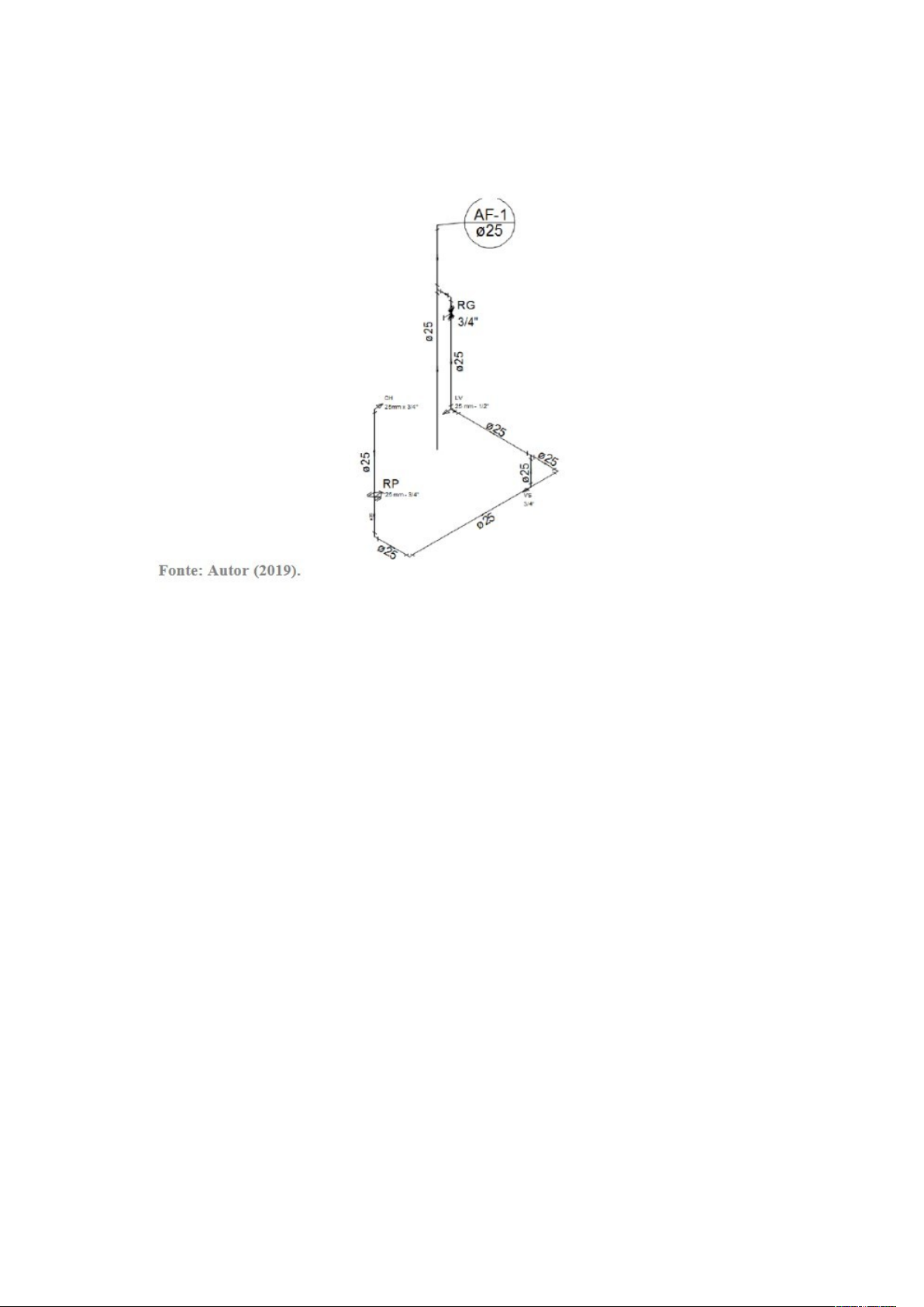 Atividade A1 Legenda: AF-1 : Circuito 1 de Água Fria - tubulação diâmetro de 25 mm RG : Registro de gaveta - 3/4" LV : Lavatório - com joelho de 90º - 25mm x 1/2" VS : Vaso Sanitário com caixa acoplada - 3/4" RP : Registro de Pressão - 25mm x 3/4" CH : Chuveiro - com joelho de 90º - 25mm x 3/4" Outras peças: Joelho 90º Soldável 25mm TÊ 90º Soldável 25mm image.jpg
