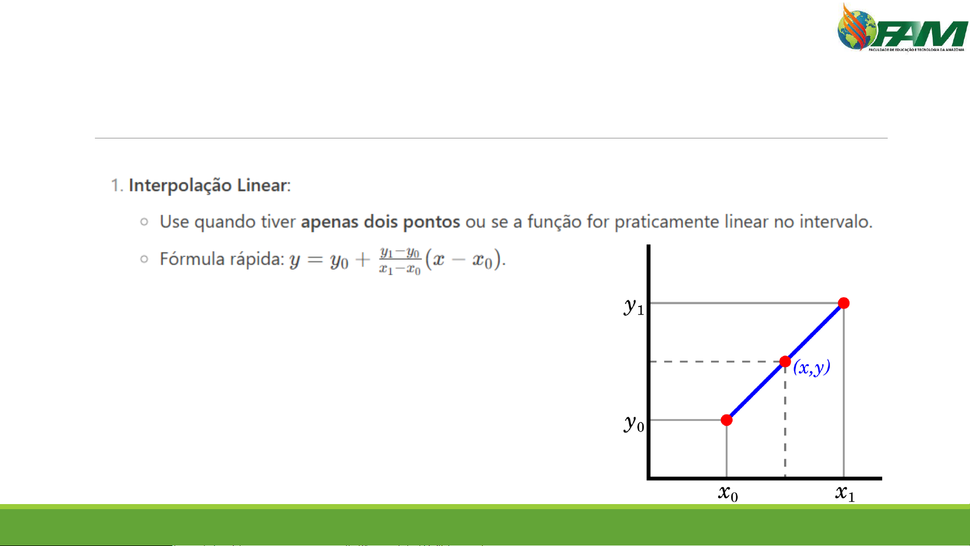 Interpolação Linear Regra dos Trapézios Slide 1: Interpolação Linear Slide 2 Slide 3 Slide 4 Slide 5 Slide 6 Slide 7 Slide 8: Regra dos Trapézios Slide 9 Slide 10 Slide 11 Slide 12 Slide 13 Slide 14