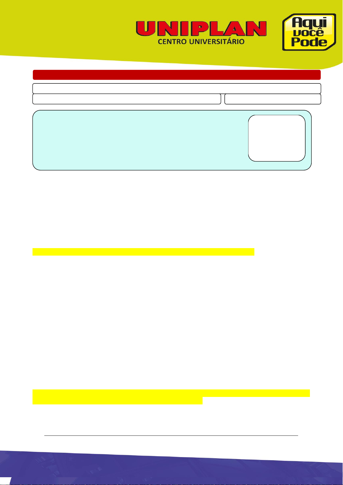 1. Leia com atenção, não esqueça o seu NOME e sua MATRÍCULA;