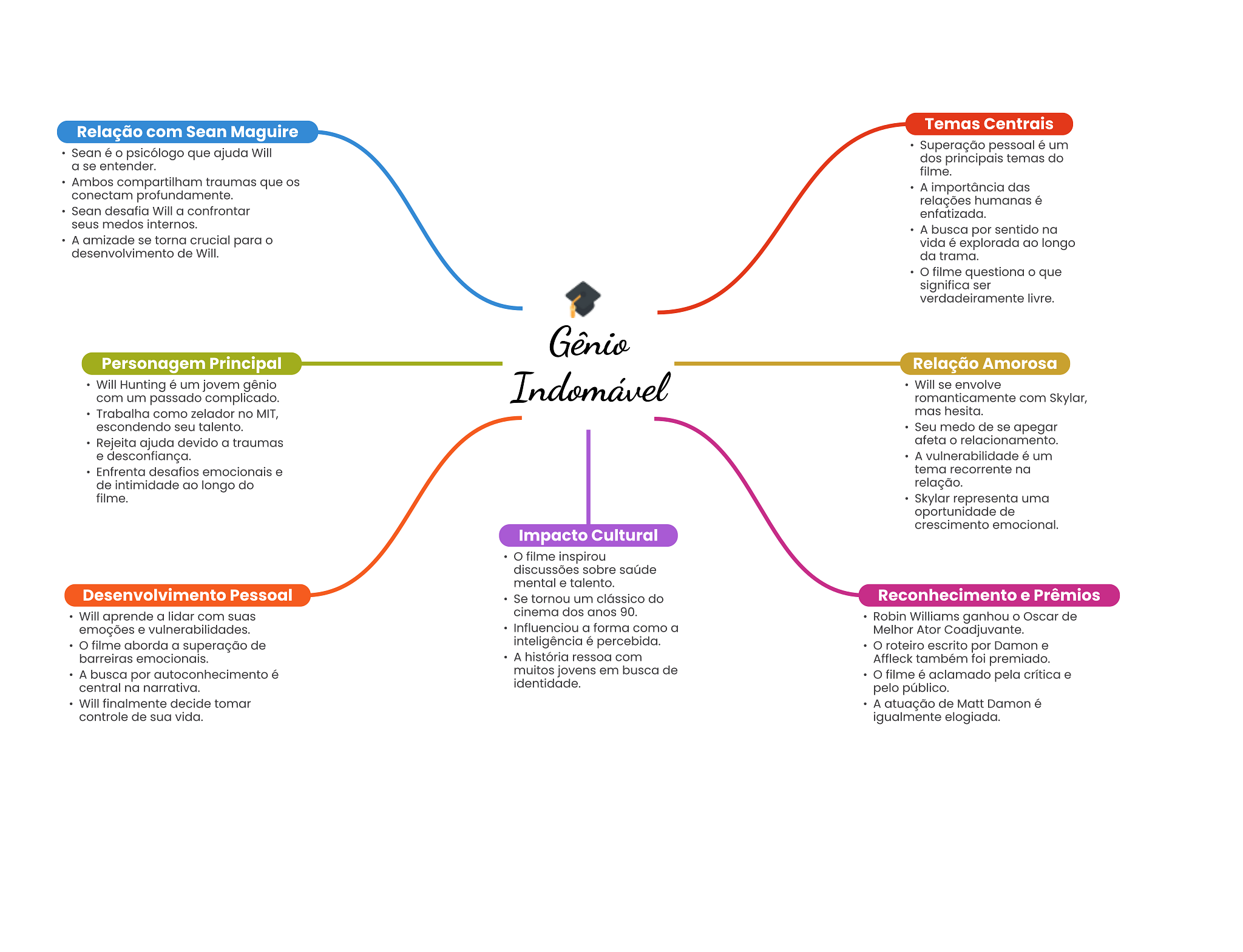 Temas Centrais Relação com Sean Maguire Superação pessoal é um Sean é psicólogo que ajuda Will dos principais temas do a se entender. filme. Ambos compartilham traumas que A importância das conectam profundamente. relações humanas é Sean desafia Will a confrontar enfatizada. seus medos internos. A busca por sentido na A amizade se torna crucial para vida é explorada ao longo desenvolvimento de Will. da trama. filme questiona que significa ser verdadeiramente livre. Gênio Personagem Principal Relação Amorosa Will Hunting é um jovem gênio Indomável Will se envolve com um passado complicado. com Skylar, Trabalha como zelador no MIT, mas hesita. escondendo seu talento. Seu medo de se apegar Rejeita ajuda devido a traumas afeta O relacionamento. e desconfiança. A vulnerabilidade é um Enfrenta desafios emocionais e tema recorrente na de intimidade ao longo do relação. filme. Skylar representa uma oportunidade de crescimento emocional. Impacto Cultural filme inspirou discussões sobre saúde mental e talento. Desenvolvimento Pessoal Se tornou um clássico do Reconhecimento e Prêmios Will aprende a lidar com suas cinema dos anos 90. Robin Williams ganhou O Oscar de emoções e vulnerabilidades. Influenciou a forma como a Melhor Ator Coadjuvante. filme aborda a superação de inteligência é percebida. roteiro escrito por Damon e barreiras emocionais. A história ressoa com Affleck também foi premiado. A busca por autoconhecimento é muitos jovens em busca de filme é aclamado pela crítica e central na narrativa. identidade. pelo público. Will finalmente decide tomar A atuação de Matt Damon é controle de sua vida. igualmente elogiada.