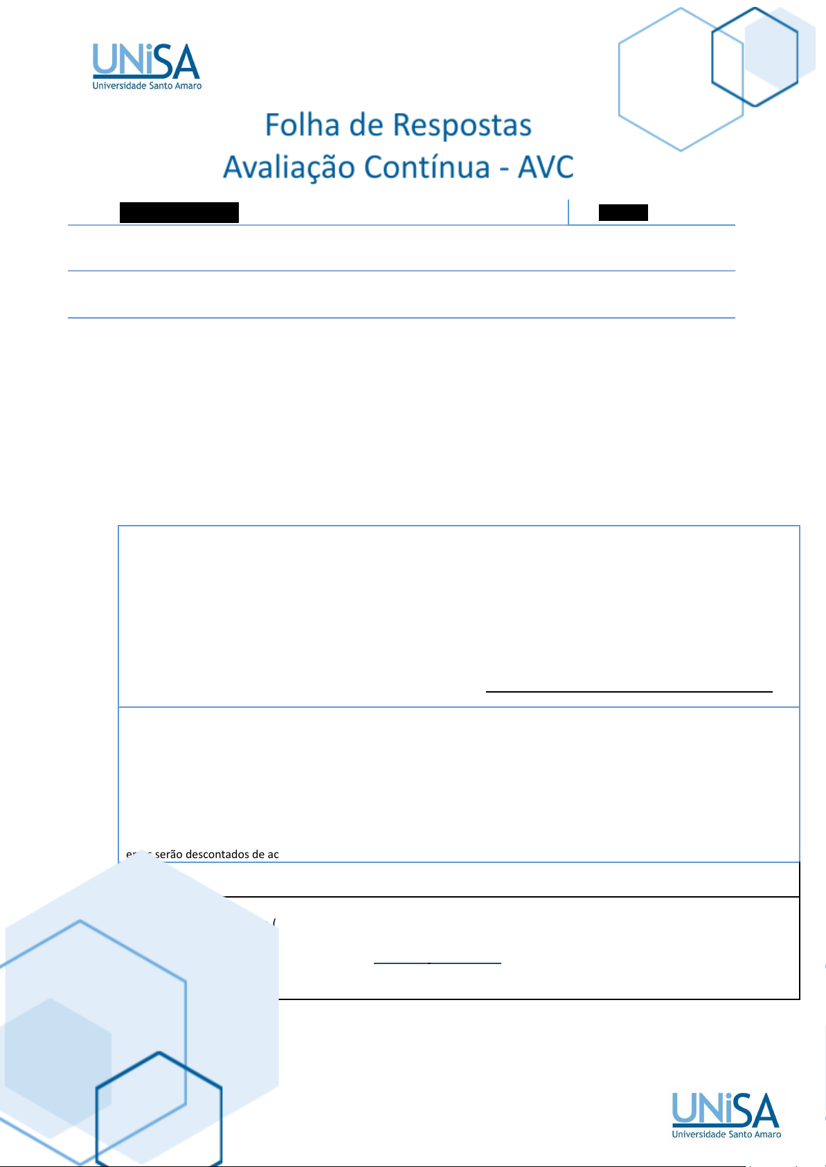 NOME: Lourdes Deliberal RA: 3970353 CURSO: Engenharia Ambiental DISCIPLINA: Engenharia Econômica CRITÉRIOS PARA AVALIAÇÃO DAS ATIVIDADES - DISSERTATIVAS Conteúdo: as respostas não possuem erros conceituais e reúnem todos os elementos pedidos. Linguagem e clareza: o texto deve estar correto quanto à ortografia, ao vocabulário e às terminologias, e as ideias devem ser apresentadas de forma clara, sem incoerências. Raciocínio: o trabalho deve seguir uma linha de raciocínio que se relacione com o material didático. Coerência: o trabalho deve responder às questões propostas pela atividade. Embasamento: a argumentação deve ser sustentada por ideias presentes no conteúdo da disciplina. A AVC que atender a todos os critérios, sem nenhum erro conceitual, de ortografia ou concordância, bem como reunir todos os elementos necessários para uma resposta completa, receberá nota 10. Cada erro será descontado de acordo com sua relevância. CRITÉRIOS PARA AVALIAÇÃO DAS ATIVIDADES - CÁLCULO Caminho de Resolução: O trabalho deve seguir uma linha de raciocínio e coerência do início ao fim. O aluno deve colocar todo o desenvolvimento da atividade até chegar ao resultado final. Resultado Final: A resolução do exercício deve levar ao resultado final correto. A AVC que possui detalhamento do cálculo realizado, sem pular nenhuma etapa, e apresentar resultado final correto receberá nota 10. A atividade que apresentar apenas resultado final, mesmo que correto, sem inserir as etapas do cálculo receberá nota zero. Os erros serão descontados de acordo com a sua relevância. INFORMAÇÕES IMPORTANTES - LEIA ANTES DE INICIAR A Avaliação Contínua (AVC) é uma atividade que compreende a elaboração de uma produção dissertativa. É importante que leia e compreenda as intruções de avaliação descritas antes do enunciado disponível no AVA. A – Qual o percentual da taxa de juros compostos prevista na situação A? Considerando a taxa Selic atual de 13,75% i = 13,75% - 10,75% i = 3% a.m B. Determine o valor do montante adquirido na situação A. M = 2000 x (1 + 0,03)^5 x (1 + 0,03 x 15/30) M = 2000 x (1,03)^5 x (1 + 0,015) → M = 2000 x (1,1592740743) x (1,015) M = 2000 x 1,17666318 M = 2353,32636 R$ R$ 2.353,33 C. Calcule o valor dos juros pagos na situação B. Valor pago: R$ 12.700,00 Valor inicial: R$ 12.000,00 J= M-C: 12.700 – 12.000 Total de juros pago: R$ 700,00