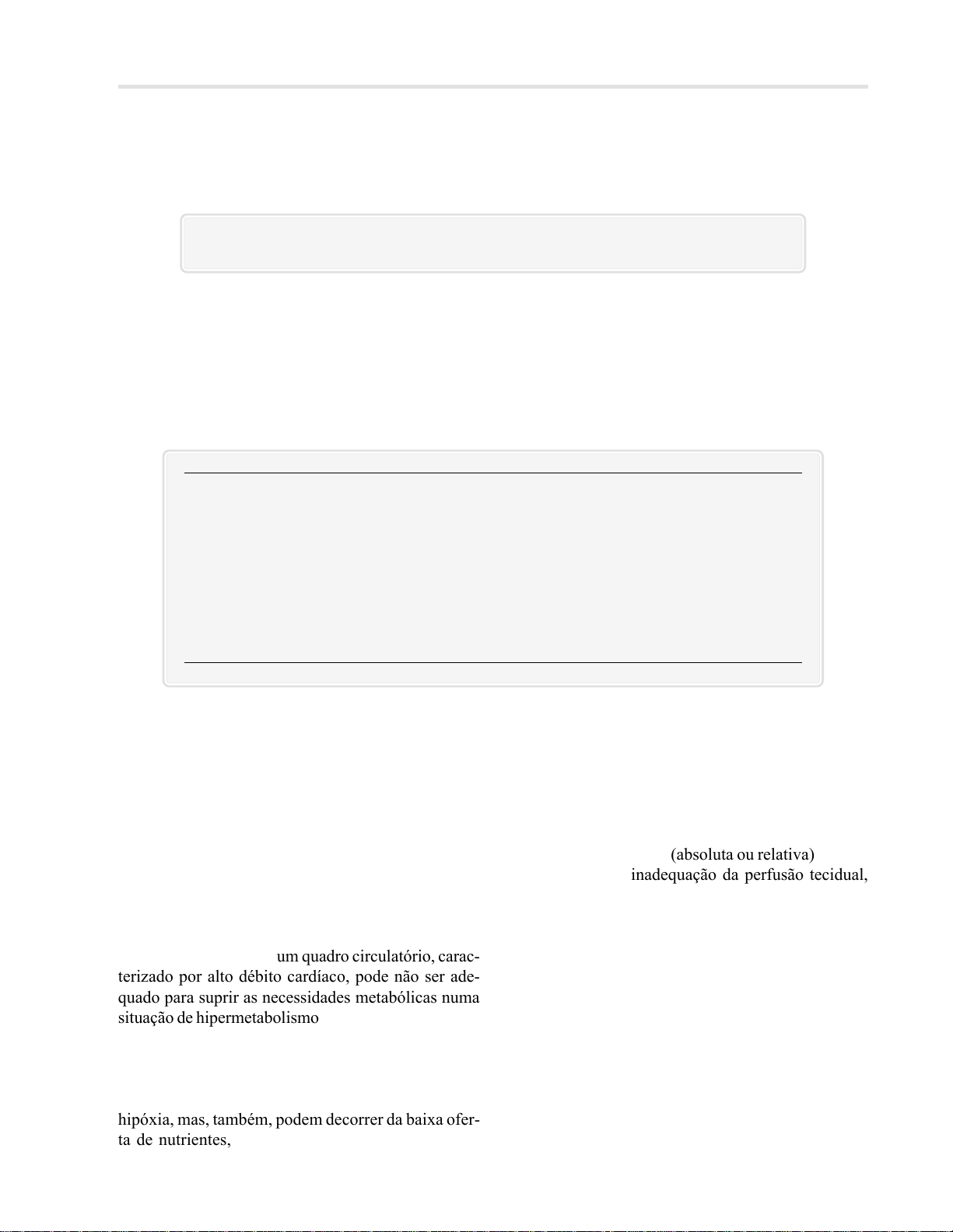 CHOQUE CIRCULATÓRIO: DEFINIÇÃO, CLASSIFICAÇÃO, DIAGNÓSTICO E TRATAMENTO CIRCULATORY SHOCK: DEFINITION, CLASSIFICATION, DIAGNOSIS AND TREATMENT Bruno Ganem Siqueira1 & André Schmidt2 1Pós-graduando. 2Docente. Divisão de Cardiologia do Departamento de Clínica Médica da Faculdade de Medicina de Ribeirão Preto - USP. CORRESPONDÊNCIA: Prof. Dr. André Schmidt. Hospital das Clínicas da FMRP-USP. Divisão de Cardiologia Departamento de Clínica Médica. Campus Universitário - USP. CEP: 14048-900 Ribeirão Preto – SP -. Fone: (16) 602-2599 – e-mail: aschmidt@fmrp.usp.br SIQUEIRA BG & SCHMIDT A. Choque circulátório: Definição, classificação, diagnóstico e tratamento. Medi- cina, Ribeirão Preto, 36 : 145-150, abr./dez. 2003. RESUMO - Procede sucinta revisão, procurando abordar, de forma sistematizada e prática, a classificação, diagnóstico e tratamento do choque circulatório. São essencialmente enfatizados aspectos conceituais, além de achados clínicos, hemodinâmicos e metabólicos, para melhor caracterização dos estados de choque. Procura-se fundamentar, ainda, princípios básicos da reposição volêmica e intervenções farmacológicas mediante o uso de vasopressores, cardiotônicos e vasodilatadores. UNITERMOS - Choque. Vasoconstritores. Vasodilatadores. Choque Cardiogênico 145 1- INTRODUÇÃO O choque circulatório faz parte da via final, comum de inúmeras doenças fatais, contribuindo, por- tanto, para milhões de mortes em todo o mundo. Trata-se de síndrome clínica, caracterizada pela incapacidade do sistema circulatório em fornecer oxi- gênio e nutrientes aos tecidos, de forma a atender suas necessidades metabólicas. É o conceito de choque que mostra uma importante relação entre metabolismo e hemodinâmica. Assim, um quadro circulatório, carac- terizado por alto débito cardíaco, pode não ser ade- quado para suprir as necessidades metabólicas numa situação de hipermetabolismo. Por outro lado, um bai- xo débito cardíaco pode ser adequado para uma situa- ção de hipometabolismo. Outro aspecto relevante é que nem todos os danos teciduais, resultantes do choque advêm da hipóxia, mas, também, podem decorrer da baixa ofer- ta de nutrientes, reduzida depuração de substâncias tóxicas, maior afluxo de substâncias nocivas aos teci- dos, ativação de mecanismos agressores e redução dos mecanismos de defesa. Para a caracterização e o diagnóstico do es- tado de choque circulatório, há a necessidade da presença de hipotensão (absoluta ou relativa) e sinais e/ou sintomas de inadequação da perfusão tecidual, explicitados e discutidos adiante. 2- CLASSIFICAÇÃO A classificação do choque circulatório obede- ce a uma finalidade estritamente didática, tendo em vista que a maioria dos quadros de choque mostra mais de um componente em sua evolução (Tabela I): • Hipovolêmico - caracterizado por baixo volume intravascular, relativo a sua capacitância, ou seja, hipovolemia relativa ou absoluta. O volume contido no compartimento intravascular é inadequado para a perfusão tecidual. Medicina, Ribeirão Preto, Simpósio:URGÊNCIAS E EMERGÊNCIAS CARDIOLÓGICAS 36: 145-150, abr./dez. 2003 Capítulo I andressa Destacar andressa Destacar andressa Destacar andressa Destacar 146 Siqueira BG & Schmidt A • Cardiogênico - existe limitação primária no de- sempenho cardíaco, decorrente de interferências sobre o inotropismo e/ou cronotropismo. A função de bomba do coração é insuficiente para manter o débito cardíaco em níveis compatíveis com as ne- cessidades metabólicas. • Obstrutivo - resulta de bloqueio mecânico ao flu- xo sangüíneo na circulação pulmonar ou sistêmica. • Distributivo - caracterizado por inadequação en- tre a demanda tecidual e a oferta de oxigênio por uma alteração na distribuição do fluxo sangüíneo. Dessa forma, temos tecidos com fluxo sangüíneo elevado em relação à necessidade e outros com fluxo san- güíneo elevado em termos numéricos, mas insufici- ente para atender às necessidades metabólicas. 3 – DIAGNÓSTICO O diagnóstico de choque circulatório é eminen- temente clínico, baseando-se, portanto, numa boa anamnese e exame físico. Para seu diagnóstico, há a necessidade de identificarmos a presença de hipo- tensão arterial (pressão arterial sistólica (PAS) circulation) que corresponde à manutenção da cir- culação, e deve-se sempre, dar atenção para as causas responsáveis pela instabilidade hemodinâmica, de modo a procurar um tratamento definitivo para o problema. -ucriceuqohcodsacinílcseõçatsefinaM-IIalebaT .oteN-niraM.A.J&leicaM.C.Bedodatpada(oirótal )2991orbmezed/orbutuo,oterPoãriebiR,anicideM )11( )oirf(ocimânidopiheuqohC )aciréfirepralucsavaicnêtsiseratla,otibédoxiab( • a,oãçartsorP deisn eda • oãsnetopiH • aidraciuqaT • emrofilifosluP • acitónaic,adiláp,airf:eleP • eseroduS • aiénpiuqaT • sotimôv,saesuán,edeS • airúna,airúgilO • oãsufnoc,oãsneerpa,eduteiuqnI • )aidratesaf(aicnêicsnocnI )etneuq(ocimânidrepiheuqohC )aciréfirepralucsavaicnêtsiseraxiab,otibédotla( • edadeisna,oãçartsorP • )adautnecaoãn(oãsnetopiH • aidraciuqaT • olpmaosluP • roburmoc,etneuq:eleP • eserodusedaicnêsuA • adaredomeseruid,airúgilO • soirfalac,erbeF • oãçalitnevrepiH • )orar(amoc,oãsufnoc,oãsneerpa,eduteiuqnI .oirótalucriceuqohcedsopitsosrevidson,airótaripseresacimânidomehsieváiraV-IIIalebaT ;ranomlupralipacoãsserp=PCP;aciréfirepralucsavaicnêtsiser=PVR;ocaídracotibéd=CD .oinêgixoedlartnecasonevoãçarutas=2OvS;lartnecasonevoãsserp=CVP euqohcedopiT CD PVR PCP CVP 2OvS ocimêlovopiH oxiaB atlA axiaB axiaB axiaB ocinêgoidraC oxiaB atlA atlA atlA axiaB oviturtsbO oxiaB atlA axiaB atlA axiaB ovitubirtsiD otlA axiaB axiabuolamron,atlA axiabuolamron,atlA atlA 148 Siqueira BG & Schmidt A Juntamente com medidas de restabelecimento e manutenção da circulação (reposição volêmica e agen