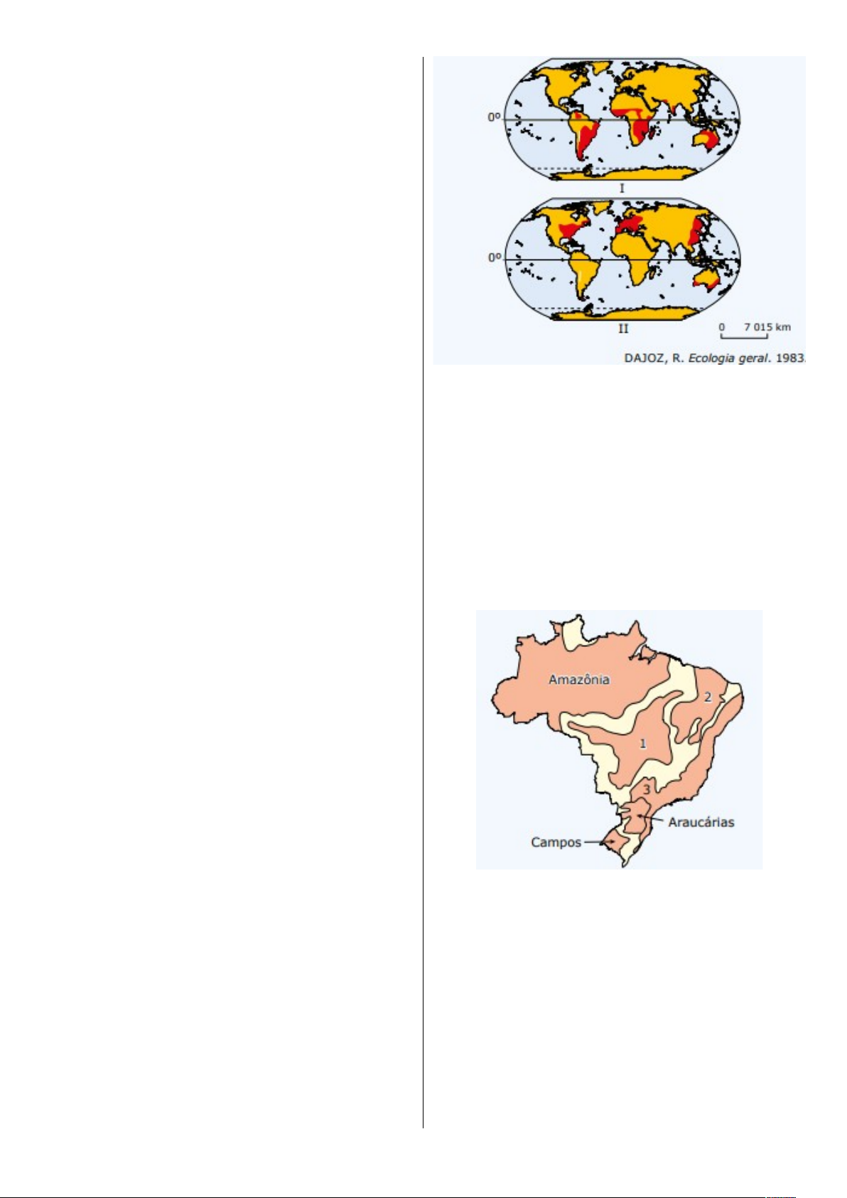 tudodegeografia.com / Youtube: diegojulioconrado / PROF. DIEGO ARAGÃO 1- (Fatec-SP) Foram necessários bilhões de anos, com uma complexidade e uma evolução irrepetíveis, para construir o patrimônio biológico de uma única espécie; nos próximos decênios, a intervenção do homem será responsável pelo desaparecimento de uma espécie viva a cada quarto de hora. Mas a cultura ecológica permanece à margem da política e da cultura oficial. No máximo toma-se posição, no discurso, a favor do meio ambiente, mas quando os problemas ambientais opõem-se às vantagens econômicas e à manutenção do emprego dentro da estrutura social existente, a tendência sempre é de minimizar a gravidade das consequências que recairão sobre as vidas futuras. O principal ponto a discutir hoje é o crescimento material sem limites nem objetivos. Para isso, é preciso rediscutir as relações de produção e trabalho, mas também o quê, como, onde, quando produzir, etc. TIEZZI, Enzo. Tempos históricos, tempos biológicos. São Paulo: Nobel, 1988 (Adaptação). Conforme as ideias do texto, é correto afirmar que A) o crescimento sustentável é possível conservando-se os padrões de produção, emprego e consumo atuais. B) os ritmos biológicos e geológicos são mais rápidos que os ritmos da produção capitalista de mercadorias. C) a sociedade superdimensiona os problemas ecológicos para poder reduzir os empregos dos trabalhadores. D) o crescimento desenfreado tem de ser reavaliado para decidirmos novas bases para nosso modo de vida. E) a gravidade do problema ecológico é levada a sério na prática dos Estados e da maior parte da sociedade. 2- (UFC-CE) A água constitui um elemento fundamental para o desenvolvimento da vida no nosso planeta. Com relação a esse elemento, assinale a alternativa correta. A) A água do planeta está sendo comprometida pela poluição doméstica, industrial e agrícola, e pelos desequilíbrios ambientais resultantes dos desmatamentos e do uso indevido do solo. B) Desvios de água para projetos de irrigação, construção de hidrelétricas, consumo excessivo, desmatamento e poluição, têm contribuído para a redução de conflitos entre usuários. C) A água tem sido utilizada para a geração de energia elétrica assegurando a sustentabilidade do meio ambiente local. D) O Brasil possui pouca quantidade de água superficial e subterrânea devido às suas características geológicas dominantes. E) A diminuição da chuva no Brasil tem sido o maior problema ligado à falta de água para abastecer as cidades. 3- (UNIFESP) Assinale a alternativa que corresponde às formações vegetais indicadas em I e II, respectivamente. A) I – Florestas Boreais; II – Florestas Tropicais. B) I – Florestas Tropicais; II – Florestas Boreais. C) I – Florestas Boreais e Savanas; II – Campos Tropicais. D) I – Florestas Temperadas; II – Savanas e Campos Tropicais. E) I – Savanas e Campos Tropicais; II – Florestas Temperadas. 4- (Unicamp-SP) Assinale a alternativa que indica corretamente a localização e uma característica predominante dos domínios morfoclimáticos do Cerrado, da Caatinga e dos Mares de Morros. A) 1, Cerrado, com clima subtropical; 2, Caatinga, com rios perenes; 3, Mares de Morros, com vegetação do tipo savana estépica. B) 1, Caatinga, com clima semiárido; 2, Mares de Morros, com mata atlântica; 3, Cerrado, com vegetação do tipo savana. C) 1, Caatinga, com clima tropical de altitude; 2, Mares de Morros, com rios intermitentes; 3, Cerrado, com mata de araucária. D) 1, Cerrado, com vegetação do tipo savana; 2, Caatinga, com clima semiárido; 3, Mares de Morros, com mata atlântica. 5- (UnirG-TO) O acesso a imagens de satélite tem ganhado popularidade com a disponibilização gratuita desses produtos na Internet, como ocorre no caso do Google Earth, ferramenta que permite ao usuário a visualização de imagens que recobrem todo o planeta. Porém, o uso dessas imagens vai muito além dos passeios virtuais sobre a superfície terrestre. Uma das aplicações possíveis dessa ferramenta é A) a geração de mapas temáticos, como os de uso das terras. B) o controle do tráfego urbano, articulado a sensores de trânsito. C) a avaliação da qualidade do ar, em substituição às análises locais. D) o monitoramento de aviões, como forma de garantir a segurança aérea. 6- (Unesp 2018) A participação norte-americana na Guerra do Vietnã, entre 1961 e 1973, pode ser interpretada como a) uma ação relacionada à defesa da liberdade, num contexto de expansão do anarquismo nos continentes asiático e africano. b) um recuo na política de boa vizinhança que caracterizou a ação diplomática e comercial dos Estados Unidos após a Segunda Guerra. c) a busca de recursos naturais e fontes de energia que ampliariam a capacidade de produção de armamentos nos Estados Unidos. d) o esforço de contenção da influência soviética sobre a China, o Japão e os países do Sul e Sudeste asiático. e) um movimento dentro da lógica da Guerra Fria, voltado ao fortalecimento da posição geoestratégica dos Estados Unidos. 7- (UERJ 2010.2) A política externa praticada pelos EUA no governo de Ronald Reagan, entre 1980 e 1988, reaqueceu os antagonismos que caracterizaram o período da Guerra Fria. A ilustração acima faz uma representação irônica dos continentes, condizente com as ideias propagadas pelo líder estadunidense. Durante o governo Reagan, duas características importantes da geopolítica dos EUA são: a) ênfase no combate às ditaduras – antagonismo com os países do Sul b) incentivo à fragmentação territorial – envolvimento em conflitos religiosos c) estímulo ao expansionismo colonial – estabelecimento de alianças militares d) acentuação da rivalidade ideológica – práticas de imperialismo econômico 8- (PUC RS) Responda ao exercício com base no mapa e nas afirmativas. I. Esse mapa, que representa o Reino Unido, 
