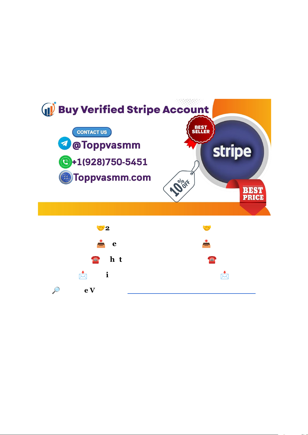 How to Create a Verified Stripe Account in 2026: Step-By-Step Guide to Success But the process can feel confusing if you don’t know exactly what to do. This guide breaks down every step clearly and simply, so you can get your Stripe account verified without any hassle. Stick with me, and by the end, you’ll have everything set up to take payments confidently in 2025. 🤝24/7 Hours Reply/Contact🤝 📥 Telegram : @Toppvasmm📥 ☎ WhatsApp :+1(928)750-5451☎ 📩 Email : toppvasmm281@gmail.com📩 🔎Website Visit Now :product/buy-verified-stripe-account/ Let’s dive in and make it happen! Setting Up Your Stripe Account Setting up your Stripe account is the first important step to accepting payments online in 2025. A properly set up account ensures smooth transactions and faster verification. This section guides you through choosing the right account type and signing up with accurate information. Following these steps carefully will save time and help avoid common issues during verification. Choosing The Right Account Type https://toppvasmm.com/product/buy-verified-stripe-account/ Stripe offers different account types based on your business needs. Selecting the right type helps you access features suitable for your business model. Stripe mainly supports two account types: ● Individual Account: For solo entrepreneurs or freelancers who operate under their personal name. ● Business Account: For companies, partnerships, or registered businesses requiring more advanced features. Here is a quick comparison: Feature Individual Account Business Account Registration Personal details only Business registration and tax details Verification Personal ID verification Business and owner verification Payment Methods Standard payment options Advanced payment and payout options Access to APIs Basic API access Full API access with more features Choose the account type that matches your business structure. For example, freelancers should pick an Individual Account. Registered companies must select a Business Account. This choice affects the verification process and payout options, so choose carefully. Signing Up With Accurate Information Providing correct information during sign-up is critical for Stripe account verification. Stripe checks all details to prevent fraud and comply with financial laws. Mistakes can delay approval or cause account suspension. Follow these tips to ensure accuracy: ● Use your legal name or business name exactly as it appears on official documents. ● Enter a valid email address that you regularly check. ● Provide your business tax ID or personal identification number depending on the account type. ● Include a legitimate business address with correct postal codes. https://toppvasmm.com/product/buy-verified-stripe-account/ ● Double-check your bank account details for payouts, including routing and account numbers. Here is a simple checklist to prepare before signing up: 1. Government-issued ID (passport, driver’s license) 2. Business registration documents (if applicable) 3. Bank account information 4. Accurate contact information (phone and email) Entering accurate details ensures smooth verification. Stripe matches your data with official records. Keep all your documents ready to speed up the process. Avoid common errors like typos, incomplete fields, or mismatched names. Preparing Required Documents Creating a verified Stripe account in 2025 requires careful preparation of your documents. Stripe uses these documents to confirm your identity and business legitimacy. This step helps protect your account from fraud and ensures smooth payment processing. Preparing the right documents saves time and avoids verification delays. Gather all necessary papers before starting the verification process. The main categories are Personal Identification and Business Verification Documents. Each must meet Stripe’s standards for authenticity and clarity. Personal Identification Stripe needs valid personal identification to confirm you are who you say you are. This step protects your account and helps prevent fraud. Use government-issued IDs with clear photos and details. Acceptable forms include: ● Passport ● Driver’s license ● National ID card Ensure the document is not expired. The photo and text should be easy to read. Use a scanner or good lighting to capture clear images. Avoid blurry or dark photos. Important tips: ● The name on your ID must match your Stripe account name. ● Upload documents in accepted file formats like JPG, PNG, or PDF. ● Make sure the ID includes your date of birth and a clear photo. Document Type Requirements Accepted File Types Passport Valid, clear photo, readable text JPG, PNG, PDF Driver’s License Not expired, photo, full name JPG, PNG, PDF National ID Card Clear photo, date of birth, valid JPG, PNG, PDF Business Verification Documents Stripe requires documents to verify your business identity. These prove your business is real and legally registered. The documents needed vary by country and business type. Common documents include: ● Business registration certificate ● Tax identification number (TIN) or VAT certificate ● Bank account statement matching the business name ● Utility bills or lease agreements (sometimes required) Documents must be official, recent, and clearly show your business name and address. If your business is a sole proprietorship, your personal ID might be enough. Document checklist for business verification: 1. Check your country’s Stripe requirements for business documents. 2. Gather official business registration papers. 3. Prepare bank statements that match business details. 4. Scan or photograph documents with good lighting. 5. Ensure all text is readable and not cropped. Document Description Purpose Business Registration Certificate Official proof of business existence Verify legal business status Tax Identification Number (TIN) Government-issued tax ID Confirm tax compliance https://top