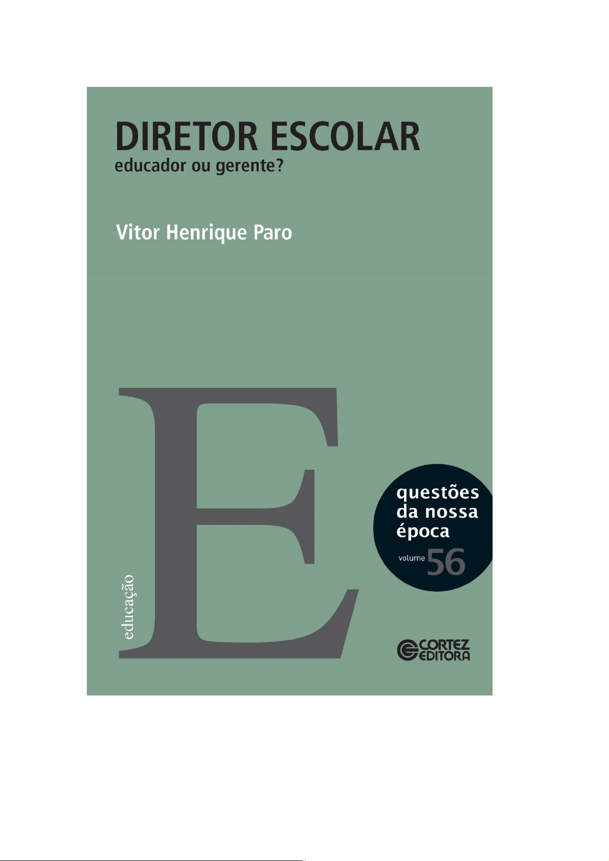 DIRETOR ESCOLAR educador ou gerente? Vitor Henrique Paro questões da nossa época volume 56 educação CORTEZ EDITORAVitor Henrique Paro DIRETOR ESCOLAR educador ou gerente? CORTEZ EDITORACORTEZ EDITORA 9 Sumário Lista de siglas 11 Apresentação 13 Introdução 17 1. Administração como mediação 23 2. Diretor e direção 37 3. A escola como objeto da gestão escolar 45 3.1 Direção escolar e educação 45 3.2 As políticas educacionais, educativo e o mercantil 50 3.3 Interferências privadas na escola pública 55 O público e privado 56 O pedagógico 63 Sequestro e degradação 65 3.4 O processo de trabalho escolar 69 3.5 trabalho docente e sua singularidade 82 3.6 A singularidade ausente 90 4. Diretor escolar: dirigente sui generis para um trabalho singular 95 Referências 121CORTEZ EDITORA 23 1 Administração como mediação Tradicionalmente, os estudos sobre a atuação do diretor de escola costumam ater-se a uma concepção de adminis- tração diversa do conceito amplo utilizado neste livro, razão pela qual restringem a ação administrativa dos diretores apenas às atividades-meio, dicotomizando, assim, as ativi- dades escolares em administrativas e pedagógicas. Meneses, por exemplo, afirma: De modo mais amplo possível, podemos dizer que as ativi- dades do diretor de um grupo escolar podem ser classificadas em administrativas e pedagógicas, isto é, em atividades-meio e atividades-fim. (Meneses, 1972, p. 192) Embora sirva ao propósito de tornar clara a distinção entre a atividade pedagógica propriamente dita e as ativi- dades que a esta servem de pressuposto e sustentação, tal maneira de tratar 0 problema acaba por tomar as atividades pedagógicas e administrativas como mutuamente exclusivas como se administrativo e pedagógico não pudessem coexistir numa mesma atividade -, encobrindo assimCORTEZ EDITORA 37 2 Diretor e direção A breve explanação que acabo de fazer a respeito da administração e de seus componentes (racionalização do trabalho e coordenação) deve permitir a delimitação do significado de direção e de seu correlato diretor, termos centrais do tema deste livro. Em princípio, a palavra direção pode ser utilizada in- distintamente como sinônimo de chefia, comando, gestão, governo, administração, coordenação, supervisão, superin- tendência etc. Para OS propósitos deste livro interessa par- ticularmente a identificação que comumente se faz entre direção escolar e administração escolar; ou entre diretor escolar e administrador escolar. Essa identificação fica bas- tante visível na exigência, que normalmente se faz, de que diretor de escola tenha uma formação em administração escolar (ou gestão escolar). Na maioria dos sistemas de ensino, quando se fala em administrador escolar, pensa-se logo na figura do diretor de escola, embora haja exceções, em que existe a figura do di- retor e a do administrador, com funções distintas. TambémCORTEZ EDITORA 45 3 A escola como objeto da gestão escolar Como se sabe, para bem realizar-se, a atividade admi- nistrativa não pode ignorar a natureza de seu objeto, in- cluindo a disponibilidade de recursos e a forma em que estes se apresentam, local ou instituição em que a ação se realiza e OS objetivos que deve perseguir. No caso da gestão escolar, objeto a que ela se aplica é a escola, lugar privilegiado da ação do diretor. Por isso, cumpre tomar a instituição escolar desse ponto de vista, examinando alguns temas relacionados, tanto ao processo pedagógico que aí se desenvolve quanto às múltiplas determinações que aí se manifestam tendo sempre presente a educação como fim a que a direção deve servir. 3.1 Direção escolar e educação dimensionamento da prática administrativa do dire- tor escolar se fundamenta, inicialmente, na necessidade de se conceberem maneiras de diretor contribuir para umaCORTEZ EDITORA 95 4 Diretor escolar: dirigente sui generis para um trabalho singular Do que vimos no capítulo anterior, temos, por um lado, a busca de um objetivo extremamente modesto, que omite das novas gerações seu direito de acesso pleno à cultura; por outro, uma mediação (administração) inadequada à obtenção mesmo desse modesto objetivo. E isso não é re- cente, pois a maneira de administrar a escola é praticamen- te centenária no Brasil. Ocorre que, antes, quando a escola pública só atendia a uma pequena elite, sua incompetência era escamoteada, a partir da "seleção" que a escola fazia de sua "clientela", acolhendo em seus bancos escolares apenas OS filhos das famílias mais favorecidas economicamente. Essas crianças e jovens já possuíam, em seu meio familiar e social, acesso mais amplo à cultura elaborada historica- mente e já iam à escola "querendo aprender", além de portarem em sua formação extraescolar elementos culturais que as ajudavam a aprender mesmo numa escola ocupada apenas em "passar" conhecimentos. Aqueles que, porven- tura, não exibiam esses predicados eram barrados pela re-Como esperar que os procedimentos didático-pedagógicos adotados no interior da escola sejam coerentes com a formação de personalidades humano-históricas, se esse objetivo, nos discursos e nas práticas, é permanentemente ignorado pelas políticas educacionais em favor questões de interesses centrados na lógica da nossa do mercado e nas inconsequências época do amadorismo pedagógico? É razoável permitir que a fúria volume 56 gestionária vigente, comprometida com interesses mercantis, continue a pautar a forma de dirigir as escolas, reduzida esta ao controle do trabalho alheio e à responsabilização dos trabalhadores da educação pelos erros do sistema? Estas são algumas das questões discutidas neste novo livro de Vitor Paro, que, com a lucidez e a clareza sempre presentes em suas obras, busca examinar em profundidade 0 papel técnico-político do diretor da escola básica. ISBN 978-85-249-2316-6 CORTEZ EDITORA 9788524923166