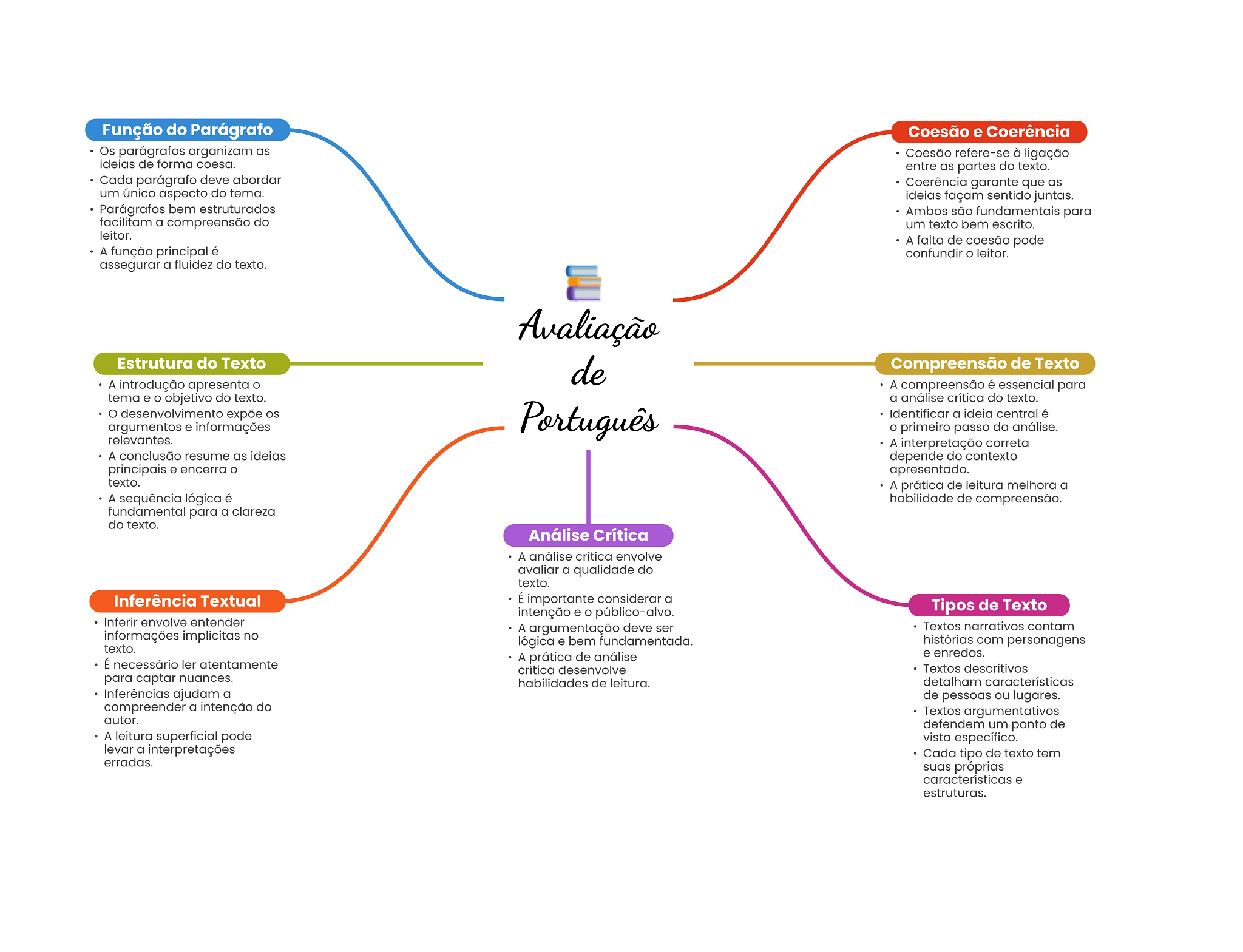 Função do Parágrafo Coesão e Coerência Os parágrafos organizam as Coesão refere-se à ligação ideias de forma coesa. entre as partes do texto. Cada parágrafo deve abordar Coerência garante que as um único aspecto do tema. ideias façam sentido juntas. Parágrafos bem estruturados Ambos são fundamentais para facilitam a compreensão do um texto bem escrito. leitor. A falta de coesão pode A função principal é confundir leitor. assegurar a fluidez do texto. Avaliação Estrutura do Texto de Compreensão de Texto A introdução apresenta A compreensão é essencial para tema e O objetivo do texto. a análise crítica do texto. desenvolvimento expõe OS Português Identificar a ideia central é argumentos e informações primeiro passo da análise. relevantes. A interpretação correta A conclusão resume as ideias depende do contexto principais e encerra O apresentado. texto. A prática de leitura melhora a A sequência lógica é habilidade de compreensão. fundamental para a clareza do texto. Análise Crítica A análise crítica envolve avaliar a qualidade do texto. Inferência Textual É importante considerar a intenção e público-alvo. Tipos de Texto Inferir envolve entender A argumentação deve ser Textos narrativos contam informações no lógica e bem fundamentada. histórias com personagens texto. É necessário ler atentamente A prática de análise e enredos. crítica desenvolve Textos descritivos para captar habilidades de leitura. detalham características Inferências ajudam a de pessoas ou lugares. compreender a intenção do Textos argumentativos autor. defendem um ponto de A leitura superficial pode vista específico. levar a interpretações Cada tipo de texto tem erradas. suas próprias características e estruturas.