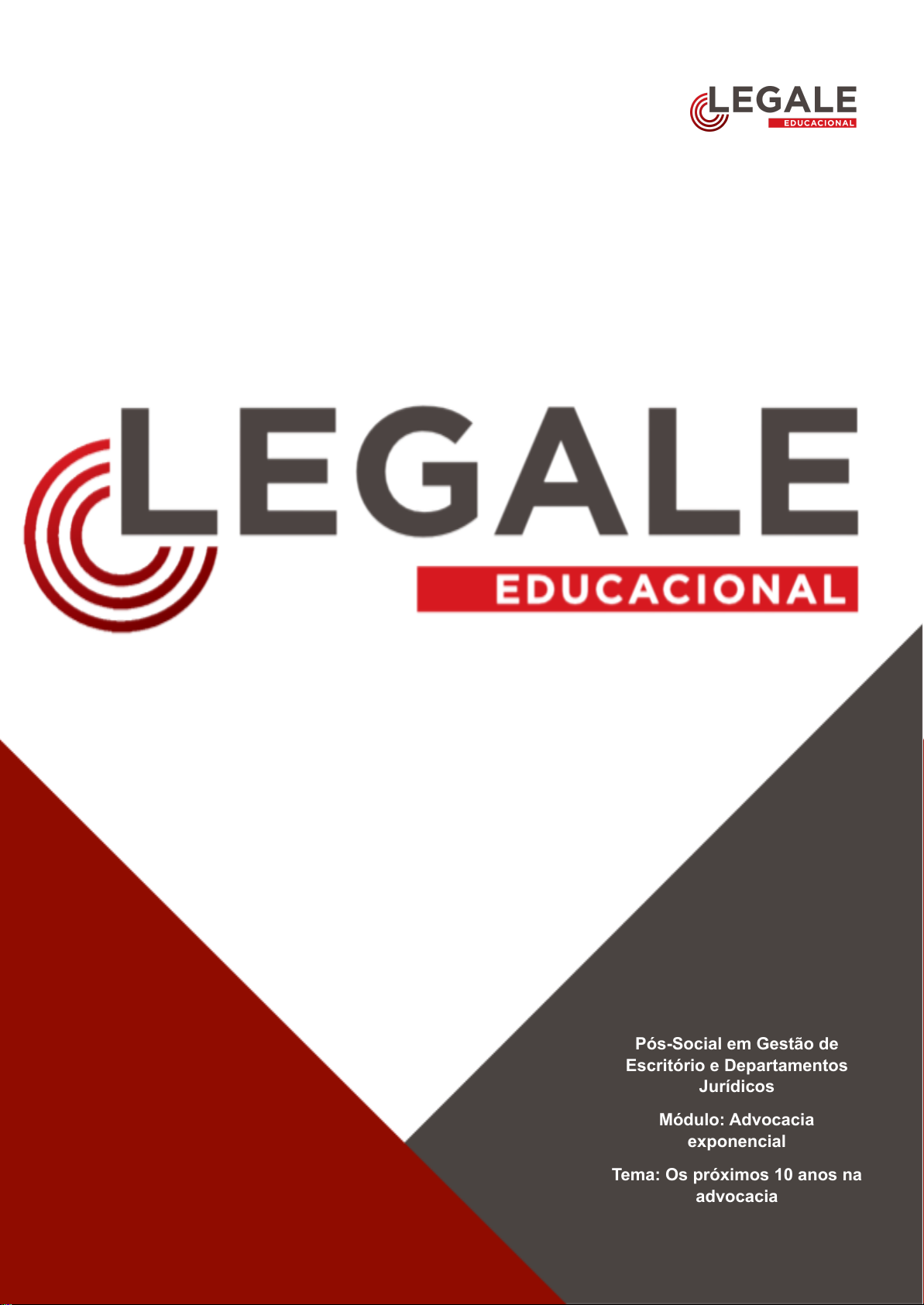 Pós-Social em Gestão de Escritório e Departamentos Jurídicos Módulo: Advocacia exponencial Tema: Os próximos 10 anos na advocacia Prezado(a) aluno(a), Informamos que todas as questões objetivas disponibilizadas são apenas testes cuja resolução proporciona a fixação do conteúdo contribuindo para o melhor aproveitamento do curso, bem como da avaliação final. Assim, todos os resultados obtidos não são registrados no histórico final. Contudo, é importante destacar que as referidas questões são elementos de aprendizagem que integram a carga horária total do curso. Desde já, agradecemos a sua atenção e permanecemos à disposição. Atenciosamente, Equipe Legale Educacional O saber que você merece! Enunciado: Assinale a alternativa correta sobre a organização exponencial: a) É aquela cujo impacto (ou resultado) é desproporcionalmente grande - pelo menos dez vezes maior - comparado aos seus pares, devido ao uso de novas técnicas organizacionais que alavancam as tecnologias aceleradas. b) É aquele cujo impacto (ou resultado) é desproporcionalmente pequeno comparado aos seus pares, devido ao uso de novas técnicas organizacionais que alavancam as tecnologias aceleradas c) É aquele cujo impacto (ou resultado) é desproporcionalmente grande - pelo menos dez vezes maior - comparado aos seus pares, devido a falta de uso de novas técnicas organizacionais que não alavancam as tecnologias d) É aquela cujo impacto (ou resultado) é proporcionalmente grande comparado aos seus pares, devido ao uso de novas técnicas organizacionais que diminuem os os avanços tecnológicos e) Todas as alternativas estão incorretas OBS.: Veja a resposta da questão, bem como respectivo feedback ao final deste material. Caso prefira acesso ao Google Forms, segue link: https://forms.gle/YuomMigjGSSpc2Xh7 Enunciado: São características internas das organizações exponenciais, exceto: a) Extrafaces b) Dashboards c) experimentação d) autonomia e) tecnologias sociais OBS.: Veja a resposta da questão, bem como respectivo feedback ao final deste material. Caso prefira acesso ao Google Forms, segue link: https://forms.gle/YuomMigjGSSpc2Xh7 Questão 01 Enunciado: Assinale a alternativa correta sobre a organização exponencial: a) É aquela cujo impacto (ou resultado) é desproporcionalmente grande - pelo menos dez vezes maior - comparado aos seus pares, devido ao uso de novas técnicas organizacionais que alavancam as tecnologias aceleradas. b) É aquele cujo impacto (ou resultado) é desproporcionalmente pequeno comparado aos seus pares, devido ao uso de novas técnicas organizacionais que alavancam as tecnologias aceleradas c) É aquele cujo impacto (ou resultado) é desproporcionalmente grande - pelo menos dez vezes maior - comparado aos seus pares, devido a falta de uso de novas técnicas organizacionais que não alavancam as tecnologias d) É aquela cujo impacto (ou resultado) é proporcionalmente grande comparado aos seus pares, devido ao uso de novas técnicas organizacionais que diminuem os os avanços tecnológicos e) Todas as alternativas estão incorretas Resposta: alternativa A Fundamentação: A organização exponencial é aquela cujo impacto (ou resultado) é desproporcionalmente grande - pelo menos dez vezes maior - comparado aos seus pares, devido ao uso de novas técnicas organizacionais que alavancam as tecnologias aceleradas. OBS.: Caso prefira acesso ao Google Forms, segue link: https://forms.gle/YuomMigjGSSpc2Xh7 Questão 02 Enunciado: São características internas das organizações exponenciais, exceto: a) Extrafaces b) Dashboards c) experimentação d) autonomia e) tecnologias sociais Resposta: alternativa A Fundamentação: As características internas das organizações exponenciais são: interfaces: INTERFACES: conexão automatizada entre externo e interno + algoritmos (automatização e redução de erros. Ex: Waze / coordenadas via GPS);DASHBOARDS: KPI´s para medir e gerenciar em tempo real com todas as métricas e acessíveis a toda a organização; EXPERIMENTAÇÃO: testes constantes com riscos calculados, ideias desenvolvidas de baixo para cima e recebem aceitação do topo. Disposição em falhar; AUTONOMIA: equipes auto-organizadas e multidisciplinares que operam com uma autoridade descentralizada; TECNOLOGIAS SOCIAIS: conexão interna digitalizada (ideias, fluxos, arquivos). OBS.: Caso prefira acesso ao Google Forms, segue link: https://forms.gle/YuomMigjGSSpc2Xh7