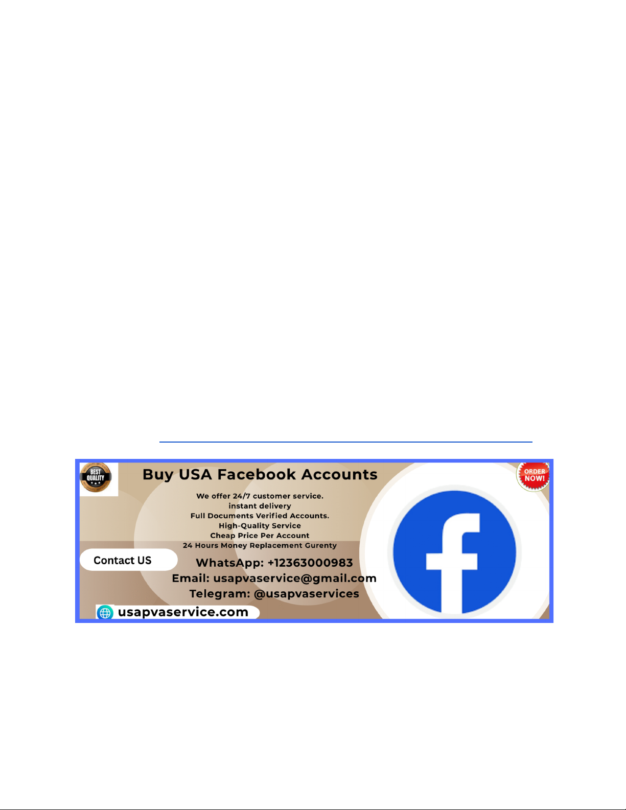 Best Marketplaces to Buy USA Facebook Accounts Safely in 2026 The Digital Marketplace for Facebook Accounts in 2026 In 2025, the digital landscape for social media account trading has matured into a complex ecosystem. Facebook accounts — especially those linked to the USA with established activity — are often sought after by businesses and individuals who want to accelerate their online presence or reach broader communities. Traditional account creation can involve verification delays, feature restrictions, and algorithmic scrutiny, which can slow down efforts to promote listings, engage in local selling, or run community interactions. If You Want more Information, Just Contact us now: WhatsApp: +12363000983 Telegram: @usapvaservices Email: usapvaservice@gmail.com Website Link : https://usapvaservice.com/product/buy-usa-facebook-accounts/ Third-party marketplaces have emerged where sellers list Facebook accounts with various characteristics: differing ages, activity histories, user verifications, and feature access levels. Some platforms operate with structured protections like secure payments and review systems, while others function through community forums and private groups. Regardless of the environment, these marketplaces are not endorsed by Facebook and carry inherent risks. https://usapvaservice.com/product/buy-usa-facebook-accounts/ At usapvaservice.com, we help readers understand how these markets work, what safeguards to look for, and how to evaluate account quality responsibly. As these ecosystems evolve, both buyers and sellers adapt to Meta’s ongoing policy enforcement and detection algorithms. The landscape in 2025 reflects increased automation, stronger security flags, and a continual push-pull between policy controls and third-party exchanges. Understanding how marketplaces operate — along with associated risks — is crucial for anyone considering participation. Education and caution remain essential components of navigating this space. Why USA Facebook Accounts Are Sought After USA Facebook accounts continue to hold significant value in 2025. There are several key reasons why these accounts remain in high demand among buyers across different industries. First, accounts associated with users in the United States tend to carry stronger trust signals within Meta’s systems. A profile that demonstrates consistent activity, interactions over time, and verified contact information appears more authentic to automated systems, reducing the chance of immediate restrictions. Second, many businesses, sellers, and marketers seeking to use Facebook Marketplace, groups, or community features encounter initial limitations when starting with new accounts. These restrictions include delayed access to Marketplace listings, review loops for new profiles, and temporary limitations on advertising or posting capabilities. Buyers often look for accounts with an established footprint to bypass these initial roadblocks. Third, USA accounts are often seen as more valuable for reaching a larger, more engaged audience segment. Whether for local selling or broader outreach, having a profile that resonates with regional users can influence visibility and engagement metrics. However, it’s essential to recognize that buying accounts to circumvent standard account setup and verification processes violates Facebook’s Terms of Service. This means purchased accounts can be disabled if detected. At usapvaservice.com, we emphasize that understanding both the potential benefits and associated risks is critical before proceeding with any account acquisition. Core Risks When Buying Facebook Accounts Buying Facebook accounts involves real and significant risks, and each potential buyer must understand these before entering any transaction. The most immediate and impactful risk is the possibility of account suspension or permanent bans. Facebook’s automated monitoring systems are designed to flag suspicious activity — including abrupt changes in login patterns, sudden shifts in user behavior, or inconsistent activity histories. If an account appears to have been transferred between users, Meta may disable it. Another risk is fraud and misrepresentation. Sellers may list accounts that are compromised, previously banned, or partially controlled by another party. Some listings may include misleading information about account age, verification status, or feature access. Without clear verification, buyers might pay for accounts that don’t function as advertised, resulting in lost money and wasted time. Security vulnerabilities also pose a threat. Purchased accounts that fail to transfer full control of recovery methods — such as linked email addresses and phone numbers — leave buyers vulnerable to losing access. If the original owner retains recovery options, they might reclaim the account after the sale, leaving the buyer without recourse. Legal and ethical considerations should not be overlooked. While many regions don’t criminalize the purchase of digital accounts, Meta’s policies explicitly ban this practice. Violating these terms can lead to platform bans or restrictions that directly impact business operations. At usapvaservice.com, we emphasize that buyers must conduct extensive research, assess risks carefully, and prepare security measures before attempting any purchase. A well-informed buyer is better equipped to minimize losses and make responsible decisions. Characteristics of a Reliable Marketplace When exploring marketplaces that facilitate the exchange of Facebook accounts, identifying features that indicate reliability and security is vital. A trustworthy marketplace should prioritize buyer protection, transparency, and seller accountability. One major characteristic is a secure payment handling system. Marketplaces that offer mechanisms such as escrow services hold buyer funds until the account has been delivered and verified. This reduces the chances of sellers disappeari