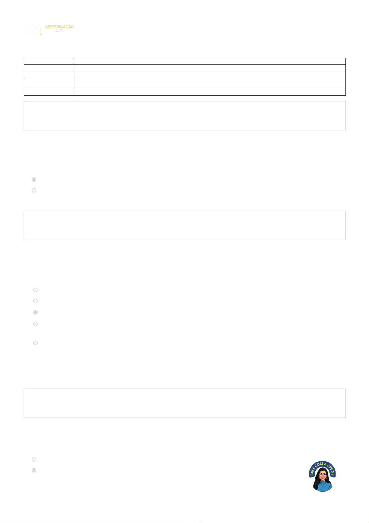 Iniciado em quinta-feira, 8 jan. 2026, 10:10 Estado Finalizada Concluída em quinta-feira, 8 jan. 2026, 10:13 Tempo empregado 3 minutos 3 segundos Avaliar 9,00 de um máximo de 10,00(90%) Questão 1 Correto Atingiu 1,00 de 1,00 Questão 2 Correto Atingiu 1,00 de 1,00 Questão 3 Incorreto Atingiu 0,00 de 1,00 O termo fluido é usado para descrever um objeto ou substância que deve estar em movimento para resistir forças aplicadas externamente. Um fluido sempre escorre quando forças deformantes lhe são aplicadas. Escolha uma opção: Verdadeiro Falso Ao chocar-se com uma pedra, uma grande quantidade de água entrou no barco pelo buraco feito no casco, tornando o seu peso muito grande. A partir do descrito, pode-se afirmar que: Escolha uma opção: a. A força de empuxo sobre o barco não variou com a entrada de água b. O navio afundaria em qualquer situação de navegação, visto ser feito de ferro que é mais denso do que a água c. O navio, antes do naufrágio tinha sua densidade média menor do que a da água do rio d. Antes da entrada de água pelo casco, o barco flutuava porque seu peso era menor do que a força de empuxo exercido sobre ele pela água do rio e. A densidade média do barco diminuiu, tornando inevitável seu naufrágio Sua resposta está correta. O conceito de pressão se define, num ponto qualquer, como a relação entre a força normal F, exercida sobre uma área elementar A. Escolha uma opção: Verdadeiro Falso Instalações Hidráulicas - Água Fria e Quente - sg JC 08/01/26, 10:13 Exercícios de Fixação - Aula 02: Hidrostática II (Complementar): Revisão da tentativa https://www.certificacaotecnica.com.br/mod/quiz/review.php?attempt=11557659&cmid=46592 1/4 https://www.certificacaotecnica.com.br/dashboard/index.php?page=0&tour_guide=0 https://www.certificacaotecnica.com.br/dashboard/index.php?page=264&icon=excelencia https://cpetintegracao.com.br/rediratendimento.php Questão 4 Correto Atingiu 1,00 de 1,00 Questão 5 Correto Atingiu 1,00 de 1,00 Questão 6 Correto Atingiu 1,00 de 1,00 O Princípio de Arquimedes teoriza que “A variação da pressão entre dois pontos quaisquer de um fluido é igual ao produto de sua massa específica pela diferença de nível entre os dois pontos e pela aceleração da gravidade”. Escolha uma opção: Verdadeiro Falso O empuxo é um fenômeno bastante familiar. Um exemplo é a facilidade relativa com que você pode se levantar de dentro de uma piscina em comparação com tentar se levantar de fora da água, ou seja, no ar. De acordo com o princípio de Arquimedes, que define empuxo, marque a proposição correta: Escolha uma opção: a. Quando um corpo flutua na água, o empuxo recebido pelo corpo é menor que o peso do corpo b. Dois objetos de mesmo volume, quando imersos em líquidos de densidades diferentes, sofrem empuxos iguais c. O princípio de Arquimedes somente é válido para corpos mergulhados em líquidos e não pode ser aplicado para gases d. Se um corpo afunda na água com velocidade constante, o empuxo sobre ele é nulo e. Um corpo total ou parcialmente imerso em um fluido sofre uma força vertical para cima e igual em módulo ao peso do fluido deslocado Sua resposta está correta. O tipo mais simples de medidor de pressão é o manômetro de tubo aberto. Consiste num tubo em forma de U, contendo um líquido, uma extremidade estando à pressão P que se deseja medir, enquanto a outra é aberta na atmosfera, à pressão P . Escolha uma opção: Verdadeiro Falso a Instalações Hidráulicas - Água Fria e Quente - sg JC 08/01/26, 10:13 Exercícios de Fixação - Aula 02: Hidrostática II (Complementar): Revisão da tentativa https://www.certificacaotecnica.com.br/mod/quiz/review.php?attempt=11557659&cmid=46592 2/4 https://www.certificacaotecnica.com.br/dashboard/index.php?page=0&tour_guide=0 https://www.certificacaotecnica.com.br/dashboard/index.php?page=264&icon=excelencia https://cpetintegracao.com.br/rediratendimento.php Questão 7 Correto Atingiu 1,00 de 1,00 Questão 8 Correto Atingiu 1,00 de 1,00 Questão 9 Correto Atingiu 1,00 de 1,00 Um mergulhador que trabalhe à profundidade de 20 m no lago sofre, em relação à superfície, uma variação de pressão em N/m devido ao líquido, estimada em: (Dados: d(água) = 1,0 g/cm³, g = 10 m/s²). Escolha uma opção: a. 20 b. 2,0 . 10² c. 2,0 . 10³ d. 2,0 . 10 e. 2,0 . 10 2 4 5 Sua resposta está correta. Um tanque, contendo 5,0 . 10 litros de água, tem 2,0 metros de comprimento e 1,0 metro de largura. Sendo g = 10 m·s , a pressão hidrostática exercida pela água, no fundo do tanque, vale: Escolha uma opção: a. 2,5 . 10 N/m² b. 10 N/m² c. Não existe alternativa correta d. 1,5 . 10 N/m² e. 5,00 . 10 N/m² 3 -2 4 5 4 4 Sua resposta está correta. Pode-se concluir que, num sistema de vasos comunicantes, as superfícies livres do líquido estão todas no mesmo nível nos diversos vasos do sistema. Escolha uma opção: Verdadeiro Falso Instalações Hidráulicas - Água Fria e Quente - sg JC 08/01/26, 10:13 Exercícios de Fixação - Aula 02: Hidrostática II (Complementar): Revisão da tentativa https://www.certificacaotecnica.com.br/mod/quiz/review.php?attempt=11557659&cmid=46592 3/4 https://www.certificacaotecnica.com.br/dashboard/index.php?page=0&tour_guide=0 https://www.certificacaotecnica.com.br/dashboard/index.php?page=264&icon=excelencia https://cpetintegracao.com.br/rediratendimento.php Questão 10 Correto Atingiu 1,00 de 1,00 “Um acréscimo de pressão, num ponto qualquer de um líquido em equilíbrio, transmite-se integralmente a todos os pontos do líquido”. Este é o Princípio de Pascal. Escolha uma opção: Verdadeiro Falso ◀ Anterior Próximo ▶ Instalações Hidráulicas - Água Fria e Quente - sg JC 08/01/26, 10:13 Exercícios de Fixação - Aula 02: Hidrostática II (Complementar): Revisão da tentativa https://www.certificacaotecnica.com.br/mod/quiz/review.php?attempt=11557659&cmid=46592 4/4 https://www.certificacaotecnica.c
