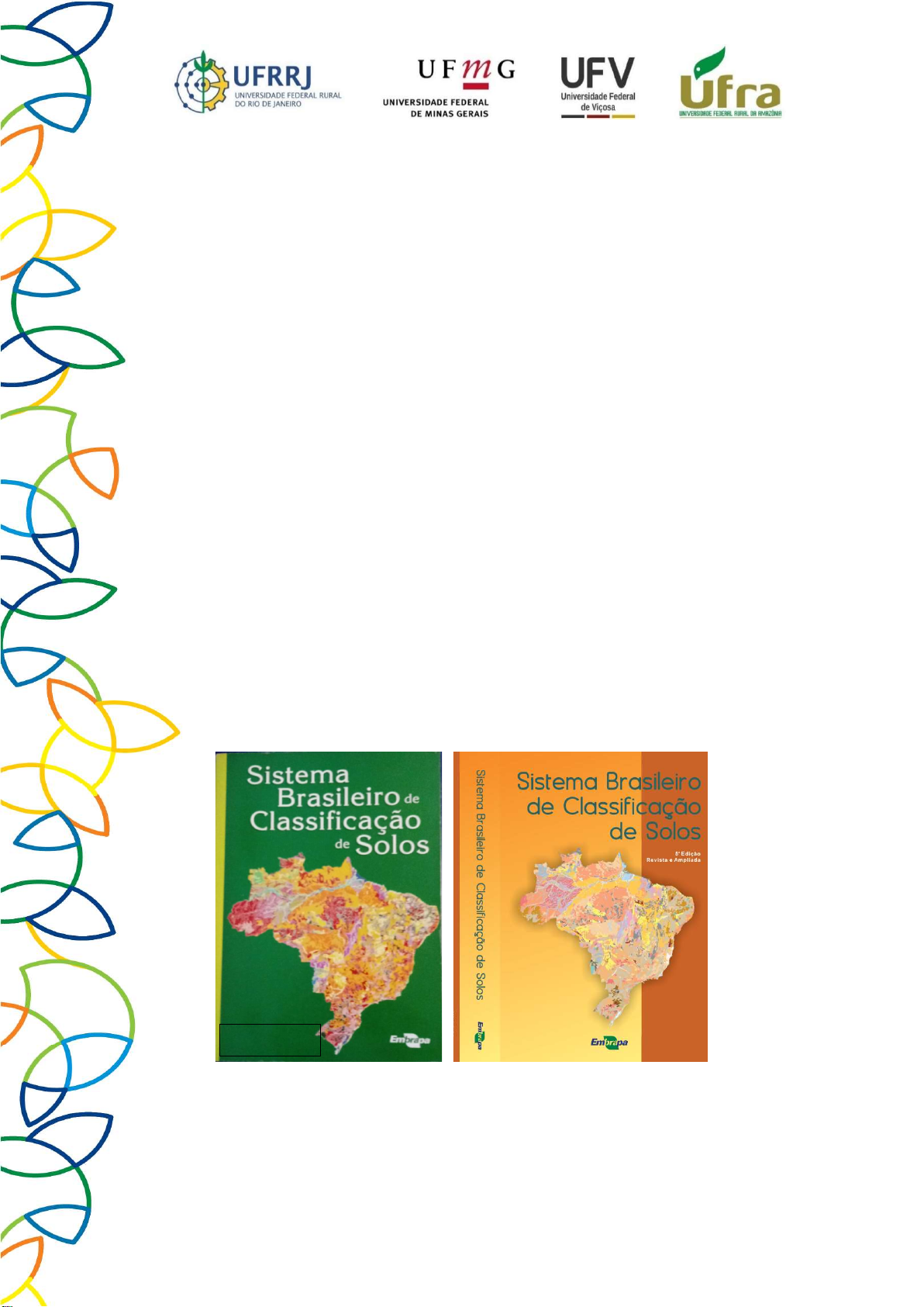 1 Curso de Especialização em Geoprocessamento, Levantamento e Interpretação de Solos APOSTILA Sistema Brasileiro de Classificação de Solos @LAnjos i Sistema Brasileiro de Classificação de Solos Lucia Helena Cunha dos Anjos Cristiane Valéria de Oliveira José João Lelis Leal de Souza Daniel Pereira Pinheiro i Apresentação Prezado(a) estudante, Seja bem-vindo(a) à disciplina Sistema Brasileiro de Classificação de Solos (SiBCS). A disciplina aborda os princípios básicos de classificação do solo, taxonômica e técnica, com ênfase para o SiBCS. O SiBCS tem abrangência nacional e é adotado como referência básica em cursos de Ciências Agrárias e de outras áreas, em todas as universidades brasileiras. Também é abordada, de forma breve, a distribuição dos solos no Brasil e nos vários biomas e sua relação com a paisagem. A Também são apresentados exemplos sobre a aplicação das informações contidas nas classes de solo no SiBCS para diversos fins, com destaque para o Sistema Brasileiro de Classificação das Terras para Irrigação (SiBCTI). Para compreensão de todos o conteúdo da disciplina, o texto apresentado deve ser complementado pelas respectivas publicações do SiBCS e do SiBCTI, as quais serão apenas resumidas neste material para fins de organização didática. Para o melhor aproveitamento dos estudos, esse material foi organizado em quatro unidades, que são: Unidade 1: Princípios Básicos de Classificação de Solo Unidade 2: O SiBCS Unidade 3: Solos Brasileiros: distribuição e paisagens Unidade 4: Interpretação das classes no SiBCS e o SiBCTI Cada unidade apresenta um conteúdo específico, mas que se associa à unidade seguinte. No conjunto, elas trazem os conhecimentos necessários para que você compreenda o propósito da classificação do solo, como é feita, qual a sua relevância para compreensão da interação entre os solos e biomas e paisagens no território brasileiro e aplicações para fins agrícolas, com ênfase na utilização adequada dos recursos naturais solo e água em função das características dos solos. ii Assista ao vídeo de apresentação da disciplina “Sistema Brasileiro de Classificação de Solos”, disponível no Ambiente Virtual de Aprendizagem. Nele você conhecerá os docentes e encontrará as informações gerais sobre a disciplina. A leitura do material deve contemplar as informações que foram dispostas nos textos, nos quadros, gráficos e imagens. É muito importante que você observe todos os materiais, pois eles foram organizados para sintetizar e/ou ampliar os conteúdos aqui abordados. Além disso, foram indicados ao longo do material ícones que lhe ajudarão a ampliar seus conhecimentos sobre os temas discutidos. Eles incluem informações complementares, recomendações de leituras extras, sugestões de vídeos e materiais audiovisuais. O significado de cada link é apresentado a seguir. No mais, desejamos bons estudos a todos e todas!! iii Sumário Unidade 1 ..................................................................................................... 1 Princípios Básicos de Classificação de Solo ............................................ 1 1.1 Introdução ............................................................................................................. 2 1.2 Princípios básicos de classificação de solo, taxonômica e técnica ................ 4 Unidade 2 ..................................................................................................... 8 O SiBCS ........................................................................................................ 8 2.1 SiBCS: Evolução histórica ................................................................................... 9 2.2 Critérios, atributos e horizontes diagnósticos ............................................... 12 2.2.1 Atributos diagnósticos ................................................................................ 13 2.2.2 Horizontes diagnósticos ............................................................................. 19 2.3 Níveis hierárquicos e classes de solos no SiBCS ............................................ 30 2.3.1 Níveis hierárquicos no SiBCS .................................................................... 30 2.3.2 Classes de solo no SiBCS ............................................................................ 33 2.4 Uso de chave taxonômica ................................................................................. 37 Unidade 3 ................................................................................................... 54 Os solos brasileiros: distribuição e paisagens ...................................... 54 3.1 Distribuição geográfica em distintos biomas brasileiros ............................. 56 3.2 Relação com ambientes e paisagens no território brasileiro ........................ 56 3.2.1 Amazônia ......................................................................................................... 56 3.2.2 Cerrado ............................................................................................................. 58 3.2.3 Caatinga ............................................................................................................ 60 3.2.4 Mata Atlântica ................................................................................................. 63 3.2.5 Pampas ............................................................................................................. 66 3.2.6 Pantanal ............................................................................................................ 66 Unidade 4 ................................................................................................... 72 Interpretação das classes no SiBCS e no SiBCTI .................................. 72 4.1 Classes no SiBCS e sua interpretação .........................................................