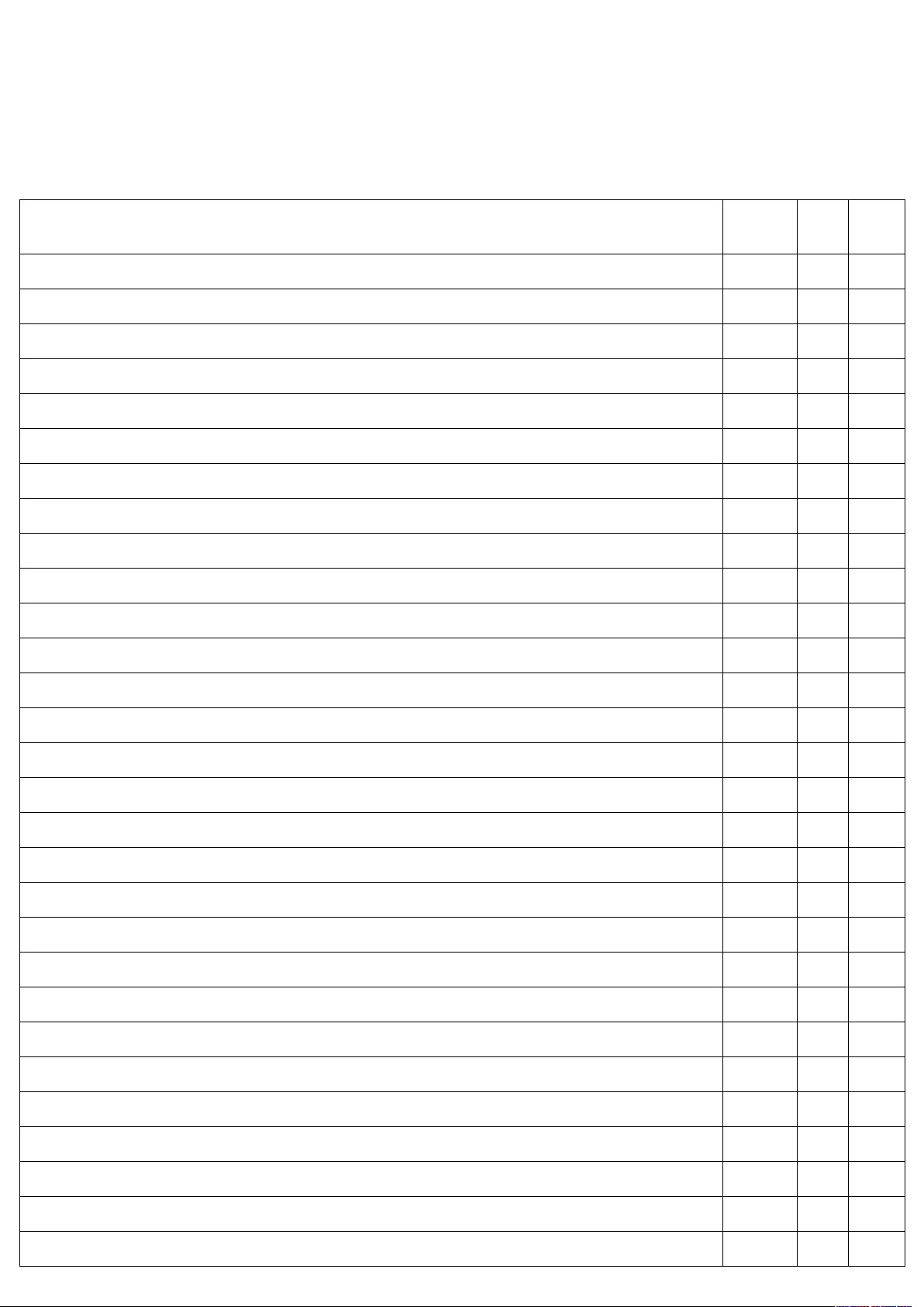 PROTOCOLO DE AVALIAÇÃO DE HABILIDADES PRAGMÁTICAS DE CRIANÇAS COM TRANSTORNOS DO ESPECTRO DO AUTISMO - PAHPEA Nome da criança:____________________________________________________________ Data de nascimento:___________________ idade da criança: (entre 2 e 12 anos) Nome do colaborador:________________________________________________________ QUESTIONÁRIO A SER RESPONDIDO POR UM COLABORADOR (NÃO O TERAPEUTA) Sempre Às vezes Nunca 1 - Olha para o adulto 2 - Interage com o adulto 3 - Usa principalmente a fala para se comunicar 4 - Usa principalmente sons não verbais para se comunicar 5 - Usa principalmente gestos para se comunicar 6 - Se faz entender facilmente 7 - Responde a perguntas simples (cadê o carrinho, o que você quer...) 8 - Responde a perguntas complexas (por que ele fez isso? o que você fez na escola?...) 9 - Responde com palavras isoladas ou frases de duas palavras 10 - Responde com frases completas com estruturas complexas 11 - Interage para pedir ações ou objetos 11 - Pede informações 12 - Faz comentários adequados 13 - Usa palavras isoladas e frases de duas palavras para se comunicar 14 - Usa frases completas e estruturas complexas para se comunicar 15 - Dá ordens 16 - Expressa prazer, medo ou descontentamento de forma clara 17 - Troca turnos comunicativos de forma adequada 18 - Brinca de faz de conta 19 - Deixa claro quando não quer fazer alguma coisa de forma adequada 20 - Usa choro, birra ou agressão quando frustrada ou para interromper alguma atividade 21 - Produz fala, sons ou gestos descontextualizados ou não funcionais 22 - Inicia comunicação 23 - Conta historias ou relata fatos 24 - Comenta sobre o que está acontecendo ou pode acontecer (vai cair..., um, dois, mais um...) 25 - Inclui o adulto na brincadeira 26 - Brinca isolada, em atividades repetitivas 27 - É atenta e compreende expressões faciais e prosódia 28 - Usa expressões faciais e variações prosódicas para se expressar