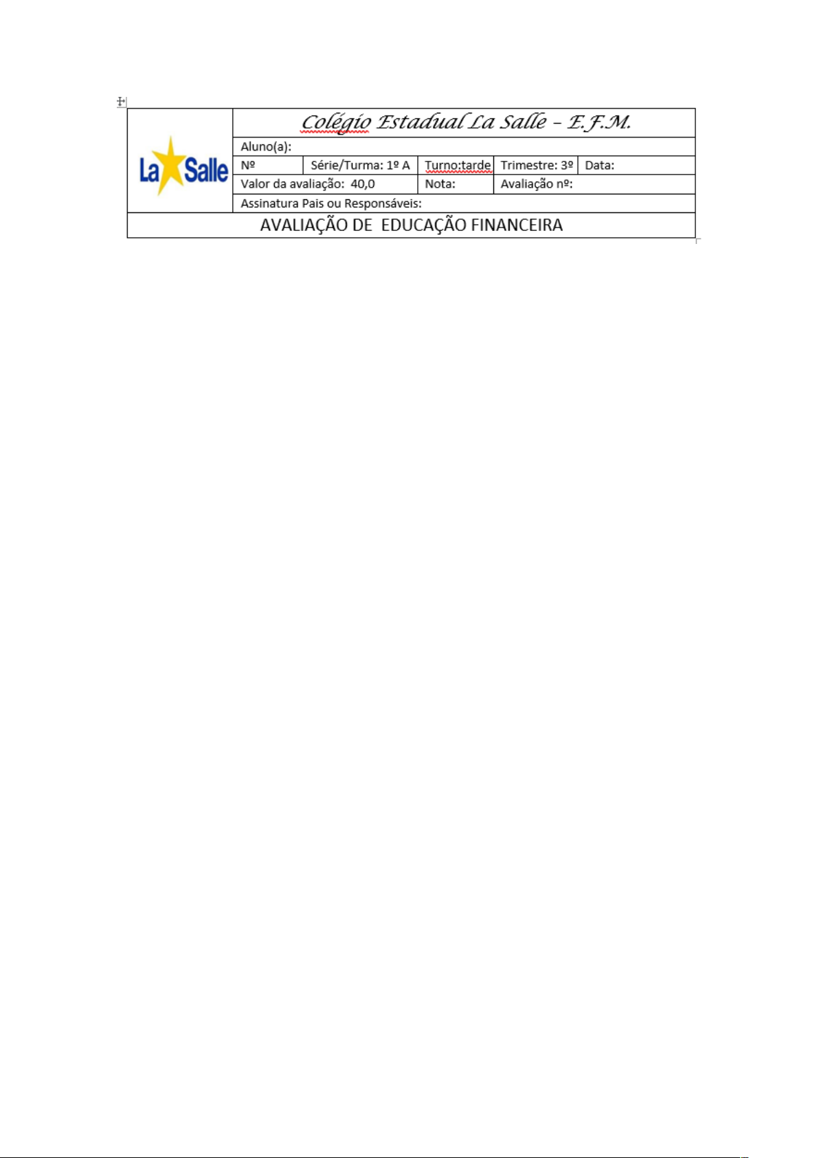 Questão 1 (Causas do endividamento) Evandro tem uma barraquinha que vende sucos para corredores e ciclistas aos finais de semana. A seguir, confira os valores: · R$ 7,00 o suco de limão de 300ml e R$ 9,00 de 500ml. · R$ 8,00 suco de laranja de 300ml e R$ 10,00 de 500ml. Considere que Evandro vende por final de semana: · 5 sucos de limão de 300ml e 6 sucos de limão de 500ml. · 3 sucos de laranja de 500ml e 4 sucos de laranja de 300ml. Quanto o Evandro ganhará em um mês? a) R$ 151,00. b) R$ 355,00. c) R$ 604,00. d) R$ 701,00. Questão 2 (Causas do endividamento) Leia atentamente a situação a seguir para responder à questão: Marcelo comprou um videogame no valor de R$ 400,00, mas parcelado em 10x de R$ 40,00. Ele trabalha no programa Jovem Aprendiz e pretende pagar as parcelas com parte do salário de R$ 600,00, ou seja, ele vai separar mensalmente R$ 40,00 do seu salário para arcar com essa despesa. Considerando o que foi informado sobre Marcelo, qual é sua situação financeira? a) Marcelo está endividado, pois comprou um videogame e agora terá que pagar R$ 40,00 por mês, o que pode levá-lo a ter sérios problemas financeiros. b) Marcelo, infelizmente, comprou um produto sem verificar as suas condições financeiras, por isso ele está endividado. c) Como Marcelo tem que pagar por 10 meses uma dívida de R$ 40,00 para quitar seu videogame, ele automaticamente está endividado, e a saúde das suas finanças está comprometida. d) Marcelo está em dia com as suas finanças, pois, de acordo com o seu salário, ele terá condições para arcar com as parcelas de R$ 40,00 mensais do videogame. Questão 1 (Evitando o endividamento) Analise a seguir o orçamento do Ronaldo: RECEITA DESPESAS Salário mensal R$ 1.000,00 Aluguel R$ 350,00 Água R$ 50,00 Luz R$ 100,00 Internet R$ 60,00 Alimentação R$ 400,00 Lazer R$ 130,00 Compra de um vídeo game R$ 910,00 Considerando o orçamento do Ronaldo, escolha a alternativa correta que informa qual o resultado do orçamento mensal de Ronaldo após o pagamento das despesas: a) R$ 0,00. b) R$ 900,00. c) - R$ 1.000,00. d) - R$ 900,00. Questão 2 (Evitando o endividamento) Considerando a situação do Ronaldo apresentada na questão 1, e do total de despesas encontrado, diante da receita que ele ganha, escolha a alternativa correta que informa em que situação Ronaldo se encontra: a) Ronaldo consegue pagar todas as despesas, porém não lhe sobra nenhum dinheiro. b) Ronaldo consegue pagar todas as despesas, e ainda lhe sobra um pouco de dinheiro. c) Ronaldo gasta apenas metade do seu salário para pagar as contas, o restante é referente às suas economias. d) Ronaldo não consegue pagar todas as despesas e está endividado. Questão 1 (Opção entre crédito e débito) Flávia tem dois cartões, um é o cartão de débito e o outro é cartão de crédito. Porém, ela não entende muito a diferença entre os dois, e precisa urgentemente aprender, pois se ela utilizar algum cartão de forma errada, pode acabar tendo problemas financeiros. Considerando isso, escolha a alternativa correta que explica o motivo que pode levar Flávia a ter problemas financeiros se não aprender sobre o uso de cada cartão: a) Tanto os cartões de débito quanto de crédito têm a mesma função, ou seja, eles fazem o pagamento de compras à vista. O que muda é que os cartões de débito têm anuidade, e os cartões de crédito são adotados por lojas que não cobram taxa de anuidade. b) O cartão de débito serve para pagar compras à vista e, para isso, é preciso ter dinheiro na conta. Já o cartão de crédito serve para pagar compras parceladas, e depende do limite do cartão. E caso a fatura não seja paga em dia, são cobradas taxas de juros. c) O cartão de crédito funciona para pagar compras à vista, e o cartão de débito funciona para o pagamento de compras parceladas. d) O cartão de débito é usado para “conta salário” do cliente, e o cartão de crédito é utilizado para o empreendedor. Questão 2 (Opção entre crédito e débito) Junior comprou um carrinho de controle remoto para disputar corridas com os seus amigos. O valor do carrinho era de R$ 425,00. Porém, como Júnior comprou o carrinho parcelado em 12 vezes, ele teve que pagar um acréscimo de 12% no valor total do produto. Considerando essa informação, escolha a alternativa correta que informa qual é o valor das parcelas que Junior vai precisar pagar: a) R$ 39,66 b) R$ 42,00 c) R$ 24,37 d) R$ 36,41 Questão 1 (Influência e consumismo) Eduardo tem como objetivo juntar dinheiro para comprar à vista uma moto quando fizer 18 anos, por isso, ele está economizando o salário que ganha. Contudo, os seus amigos estão sempre chamando ele para sair lanchar, ir viajar, acampar. Considerando isso, escolha a alternativa que informa corretamente o que Eduardo deve fazer se quiser comprar sua moto: a) Eduardo não pode se privar dos momentos com os amigos deixando as vontades deles de lado só porque ele quer comprar uma moto, o que irá demorar anos para acontecer. b) Eduardo precisa deixar seu sonho de comprar a moto de lado e sair com os amigos e, caso sobre algum dinheiro no final do mês, ele vai juntando e investindo para tentar comprar a moto daqui alguns anos. c) Eduardo deve se manter fiel ao seu objetivo é entender que ele não precisa ser como os outros. d) A moto que Eduardo quer comprar não é uma necessidade imediata, assim como a vontade dos amigos de sair se divertir, por isso, ele precisa considerar a influência dos seus amigos na sua vida e quem sabe adiar o sonho da compra da moto. Questão 2 (Influência e consumismo) A moto que Eduardo quer comprar custa R$ 11 mil. Faltam dois anos para Eduardo fazer 18 anos. Ele ganha um salário de R$ 800,00. Considerando que ele consiga economizar R$ 450,00 mensalmente do seu salário, escolha a alternativa correta que informa qual o valor que ele terá dentro de dois anos e o que ele pode fazer para juntar todo dinheiro da m