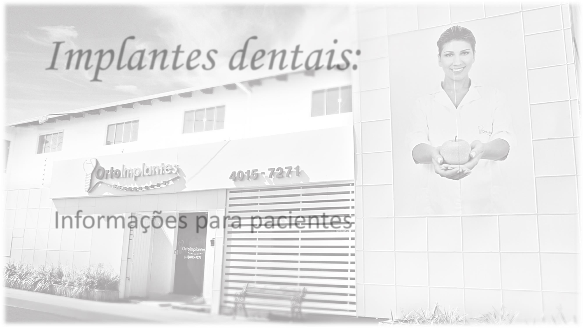 Implantes dentais: Informações para pacientes Este conteúdo foi produzido por: Weder Carneiro – CRO 9065 Ortoimplantes Odontologia Rua 4, 418 – Vila Santa Izabel, Anápolis GO (62) 40157271 O acesso ao conhecimento e formas de tratamento é fundamental para superar paradigmas na cultura em que vivemos, onde a beleza e a saúde se tornaram quase a medida do valor humano e posição social. Assim entendemos que as consequências de perdas dentais e desarmonias podem abalar a auto estima e a felicidade dos pacientes. Boa informação e atitude correta é o caminho que a Ortoimplantes Odontologia elegeu para superar essas barreiras. Ao redigir os textos desta revista, reconhecemos que as necessidades das pessoa podem variar muito, assim como as possibilidades de tratamento. Uma coisa que aprendemos e que é fonte de nossa visão de futuro é que não existem casos incuráveis. Boa leitura, Weder Carneiro Cirurgião - Dentista O que são implantes dentais? intermediário Coroa protética (dente) Implante dental Implantes são estruturas biocompatíves que usamos para substituir dentes perdidos. Quanto em contato com osso vivo, os implantes são reconhecidos como estruturas biocompatíveis (amigas) pelo organismo. Assim, o corpo do paciente começa a produzir osso saudável colado ao implante. Chamamos esse processo de osseintegração. Para que um implante dental possa receber uma coroa protética, um dente artificial, é necessário que a osseointegração ocorra, ou o dente não ficará estável. Para dentes individuais, normalmente são utilizados os três componentes ao lado para substituir um dente perdido. Existem inúmeros modelos de Implantes dentais. No mercado existem muitos modelos de implantes dentais. Obviamente uns melhores e outros com menos tecnologia. A grande questão é: qual o melhor modelo de implantes para o meu caso? Essa é uma questão que somente pode ser respondida pelo profissional de sua escolha, após examinar você e também os exames complementares. Normalmente são necessários exames de imagem e outros exames laboratoriais para ter certeza de que a saúde geral está em boas condições. Esse é um quesito fundamental para um procedimento de instalação de implantes com melhores previsibilidades de sucesso. Carga imediata: o dente é instalado juntamente com o Implante dental Essa é uma condição possível quando uma séria de quesitos são analisados, dentre eles: estrutura óssea do paciente, saúde geral, perfil muscular e se é oportuno e vantajoso para o paciente. Não há certeza nem garantias de que a carga imediata é possível. O que existe é indícios de que o paciente possa receber implantes em carga imediata, e esses indícios somente podem ser medidos pelo profissional responsável, de posse dos exames do paciente. Carga mediata: o dente é instalado em momento posterior ao Implante dental Esse é o procedimento mais comum e seguro. Aqui as próteses são instaladas após 3 a 6 meses, a critério do cirurgião responsável pelo caso. Durante o período de espera, o paciente geralmente usa próteses dentais provisórias. Exames necessários: Tomografia de diagnóstico; Exames de sangue; Fotos, modelos da boca, etc. Posso ter rejeição a implante? Soube de uma pessoa que teve rejeição ao implante, é verdade? O implante é biocompatível e osseiontegrável, sendo que o índice de sucesso gira em torno de 97%. A rejeição a implantes nunca foi cientificamente comprovada, mas existe um índice de “não osseointegração” de implantes, o que significa que o resultado da osseointegração (o osso colar no implante), permitindo, assim, rigidez suficiente para instalação da coroa protética (dente), pode não ocorrer na primeira tentativa. Nesses casos é rotineiro a substituição do implante não fixado por outro de maior diâmetro. Esse processo resulta em atraso da instalação do dente protético. Algumas vezes outros procedimentos são necessários, mas dependem de avaliação do cirurgião responsável. Índice de sucesso dos implantes dentais é de 97% Weder Carneiro Graduado pela unesp Especialista em Ortodontia Especialista em Implantes Mestre em Implantes Professor convidado em vários cursos de pós graduação no Brasil